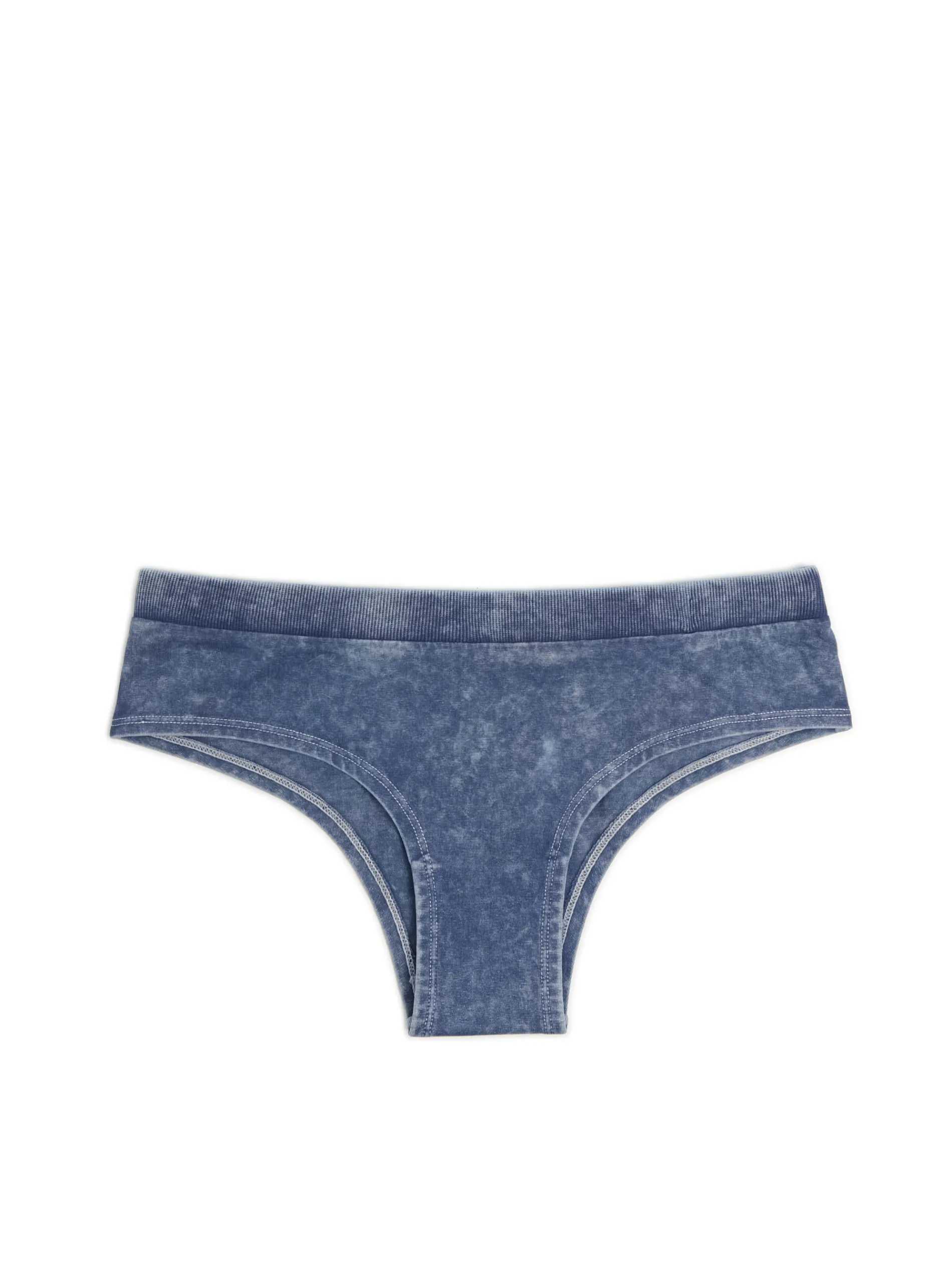 Damskie majtki typu hipster uszyte z elastycznej, bawełnianej dzianiny. Deseń powstał przy użyciu efektu oil wash, dając wrażenie spranego denimu. Nowość, której nie możesz przegapić! bawełna z domieszką elastycznych włókien majtki typu hipster elastyczna, prążkowana guma w pasie prosty krój efekt sprania na całości gładkie wykończenie brzegów Tworzą zestaw z modelem 805AU-59X .