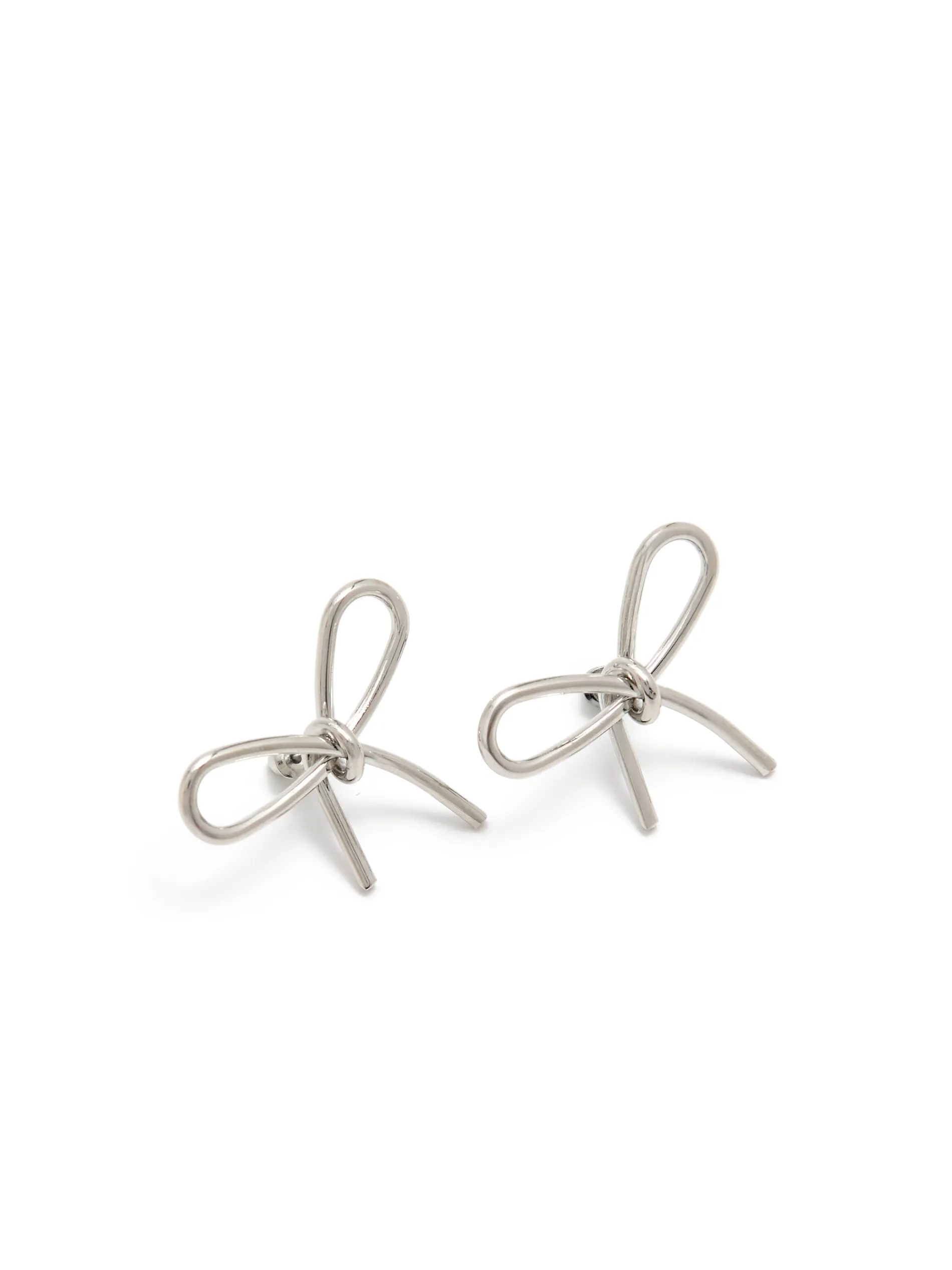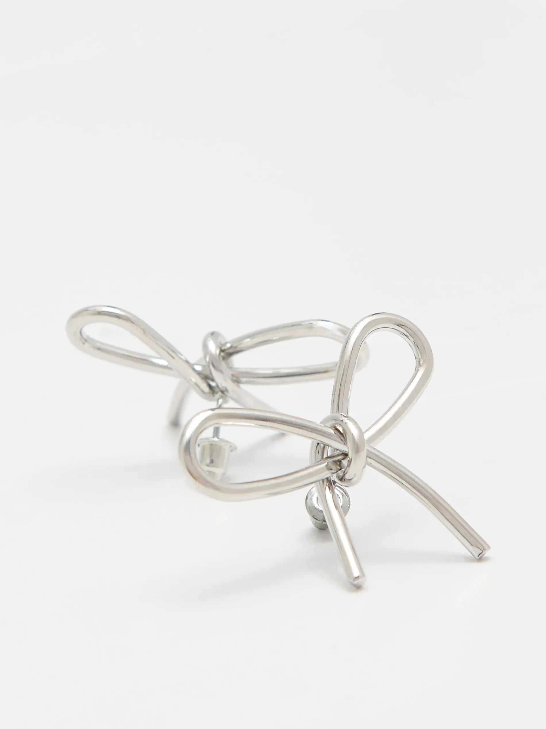 Para damskich kolczyków w kształcie wstążek wykonana z tworzywa w kolorze srebrnym. Zapięcie na sztyft i oryginalne zdobienie będzie ciekawym dodatkiem do Twojej stylizacji.
