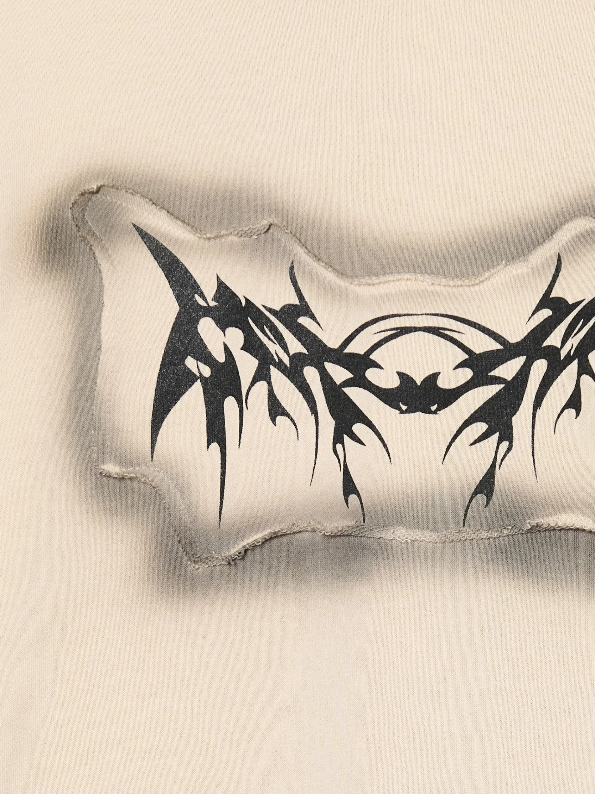 Jasna męska bluza z kapturem, uszyta z dzianiny zawierającej bawełnę. obszerny krój loose miękki kaptur dół i rękawy zakończone ściągaczem z przodu kieszeń kangurka ozdobne, kontrastowe przeszycia z przodu aplikacja z motywem tribal i nadruk Model prezentuje produkt w rozmiarze M/L. Wzrost modela: 185 cm