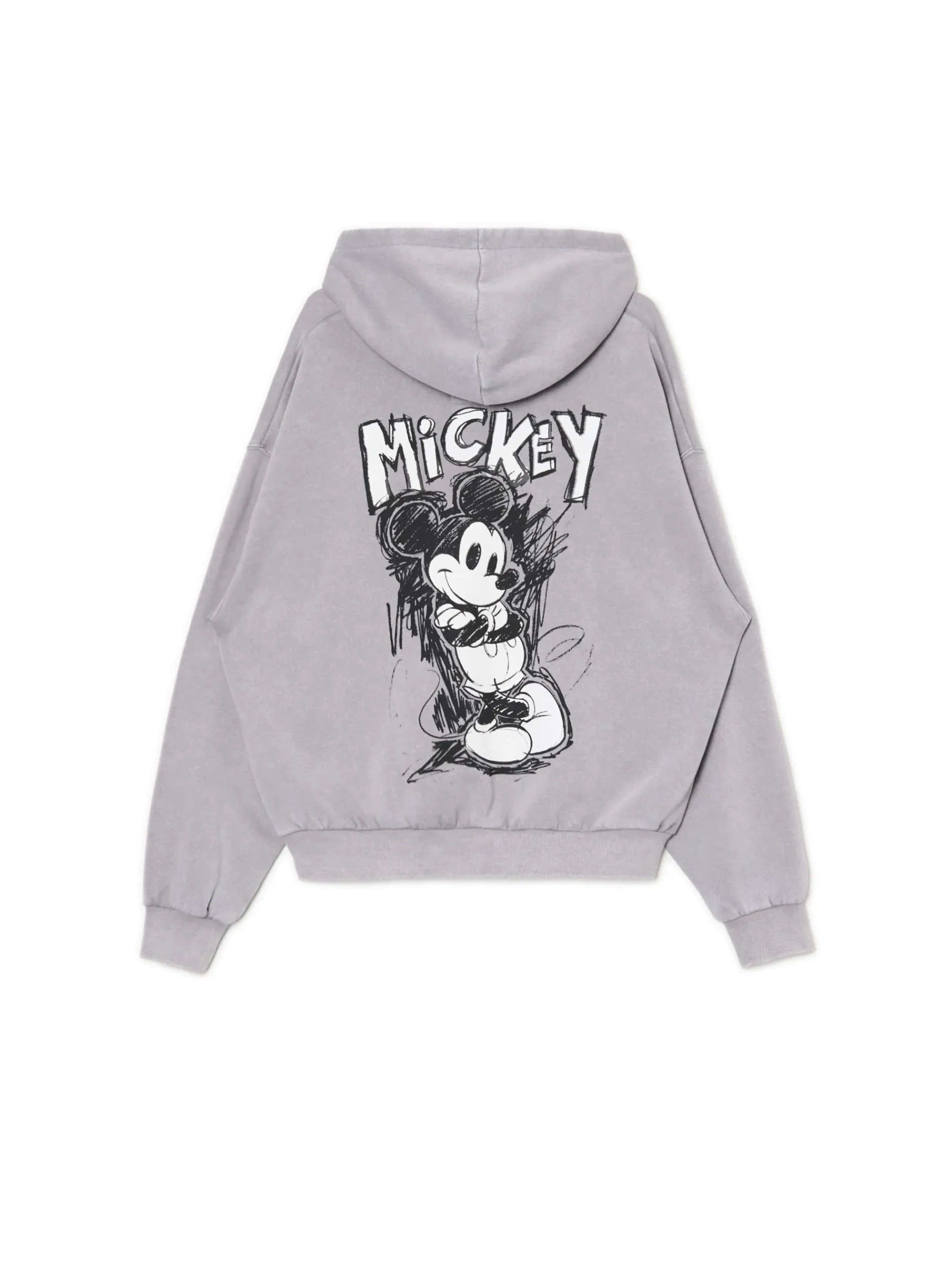 Damska bluza z kapturem, uszyta z mieszanki dzianin w szarym kolorze. Po obu stronach licencjonowany nadruk z jedną z najstarszych postaci Disneya, Myszką Miki. dzianinowy materiał z bawełną swobodny, luźny krój długie rękawy z obniżoną linią ramion kaptur z troczkami dół i rękawy wykończone prążkowanym ściągaczem efekt sprania na całości nadruk Mickey Mouse z przodu i z tyłu © Disney, ©Disney / Pixar, © Disney Based on the „Winnie the Pooh” works by A. A. Milne and E. H. Shepard