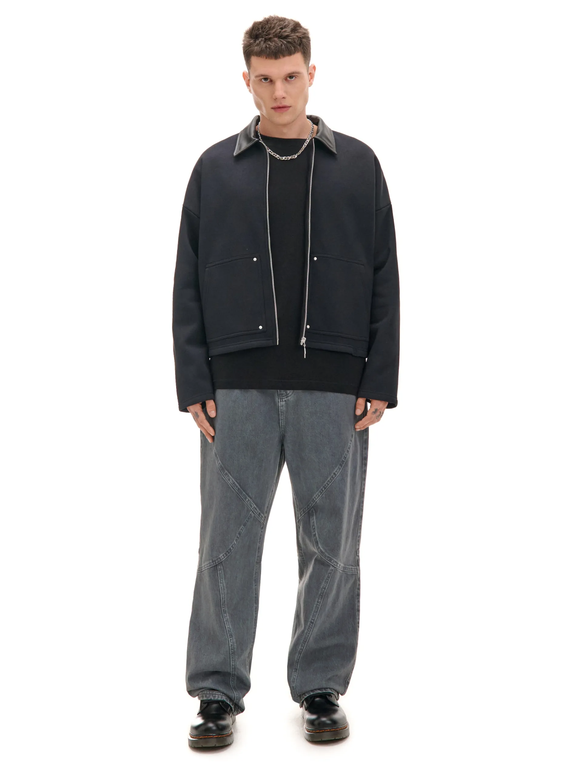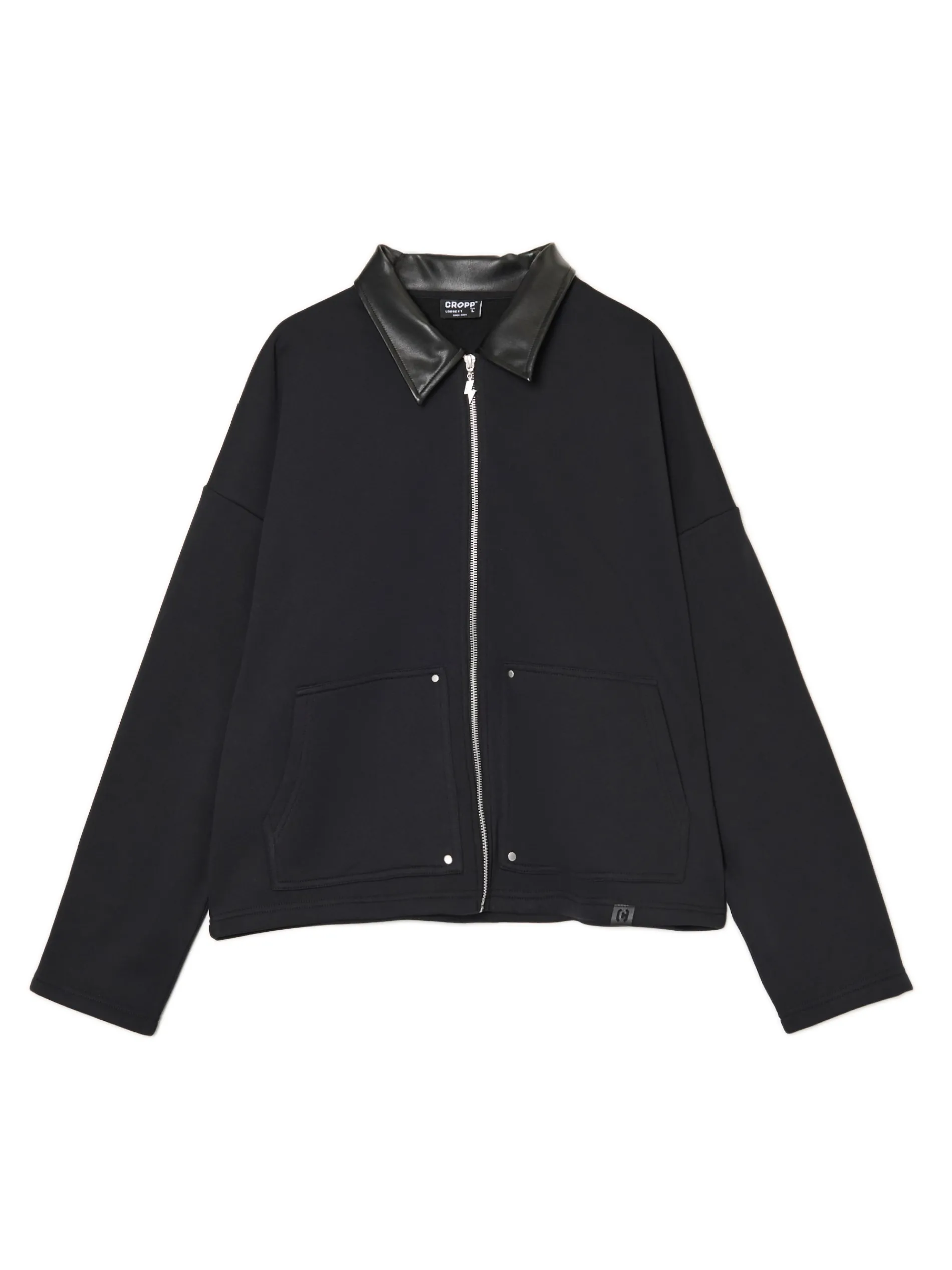 Lubimy nieszablonowe rozwiązania jak w przypadku tej męskiej bluzy o fasonie kurtki. Uszyta z mieszanki dzianin z dodatkiem miękkiej bawełny fleecy. Wykończona kołnierzykiem ze sztucznej skóry, który nadaje jej oryginalnego vibe’u. dzianinowy materiał z bawełną swobodny, luźny krój zapięcie na metalowy zamek ozdobny puller klasyczny kołnierzyk długie rękawy z obniżoną linią ramion dwie kieszenie po bokach naszywka Cropp naszywka na plecach z efektem skóry Model prezentuje produkt w rozmiarze M/L. Wzrost modela: 185 cm