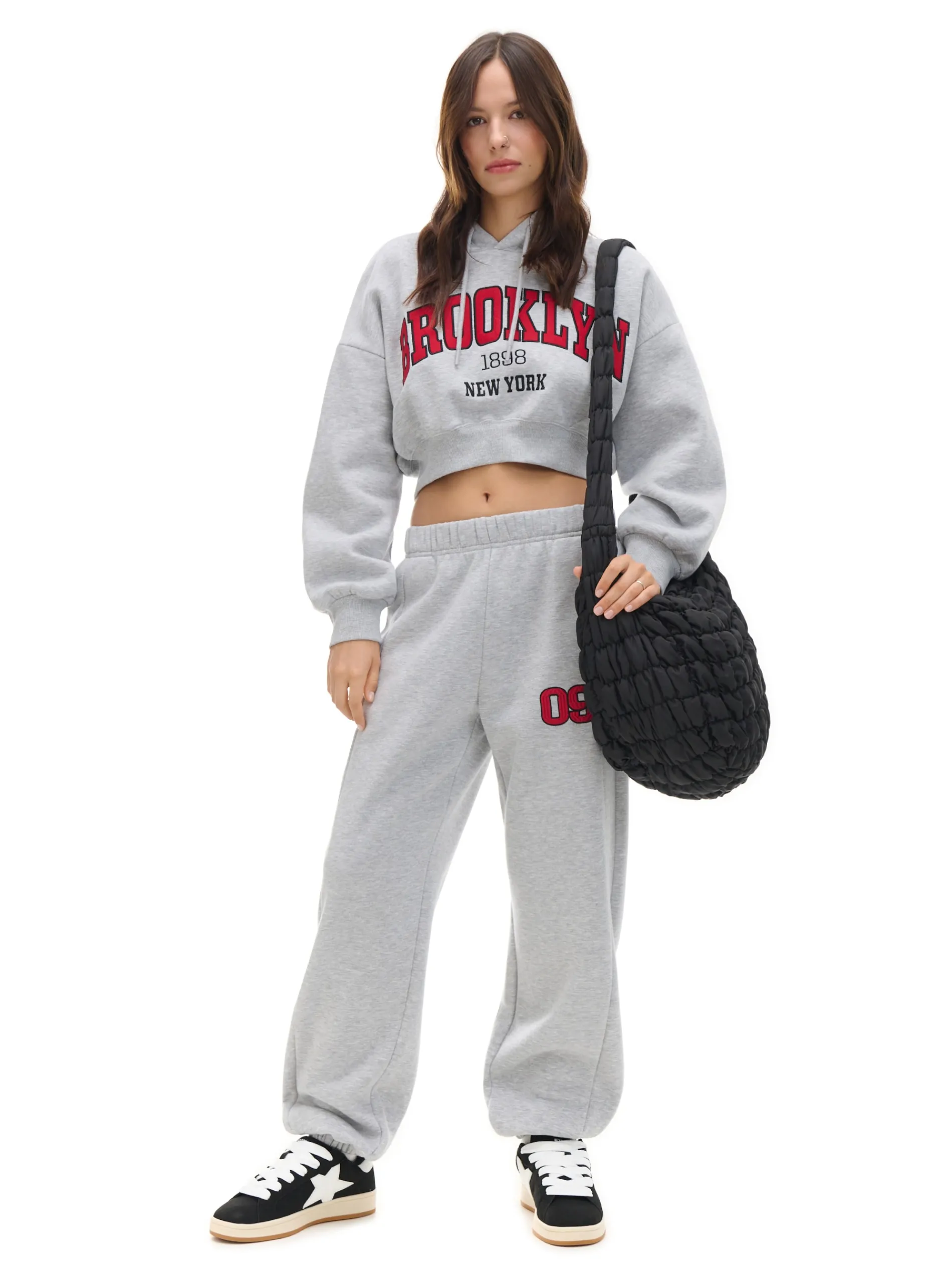 Szara damska bluza z kapturem, uszyta z miękkiego i trwałego materiału z dodatkiem bawełny fleecy. Wygodny, krótszy krój i wyraziste napisy na przodzie to wyróżniki tego modelu. dzianinowy materiał z bawełną krótki krój miękki kaptur z troczkami dół i rękawy wykończone ściągaczem z przodu nadruki tekstowe Tworzy zestaw z modelem 609AR-09M .