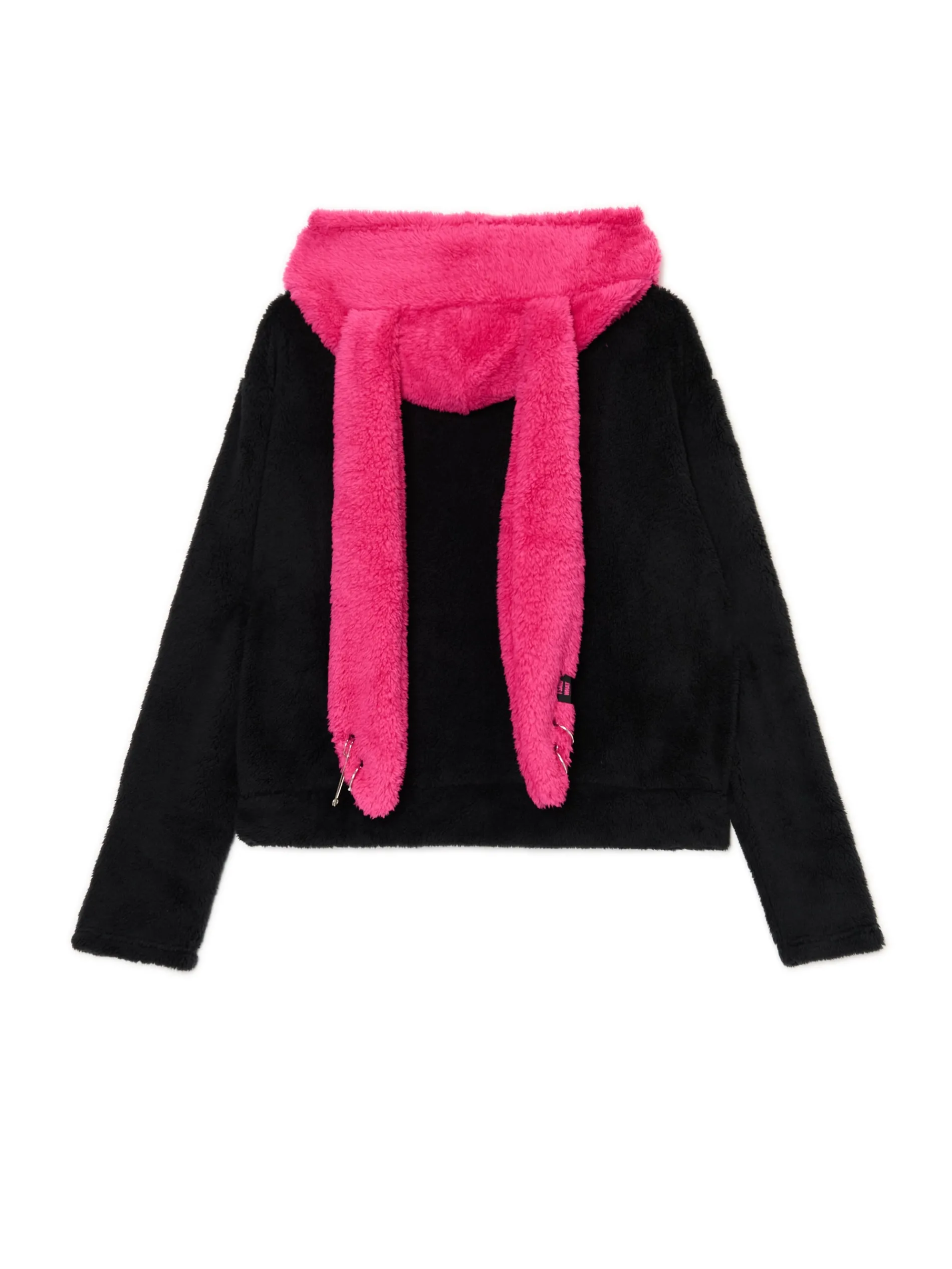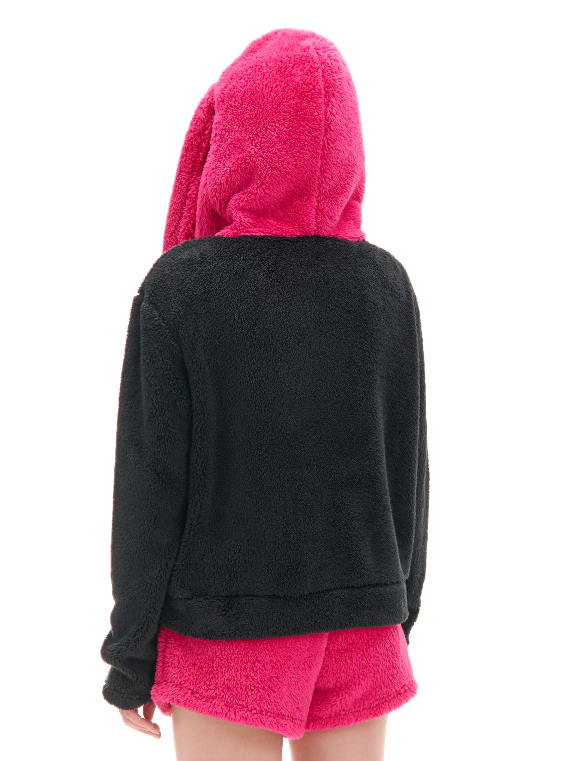 Punkowy kot z piercingiem w uszach? Czemu nie! Łap damską dwuczęściową piżamę uszytą z przyjemnego w dotyku, pluszowego materiału. Wyposażona w kieszeń na ulubione snacki lub telefon i te sztosowe uszy. Mrau! uszyta z miękkiego, pluszowego materiału pluszowa bluza z aplikacją kaptur z uszami długie, swobodne rękawy kieszeń kangurka na przodzie ozdobna naszywka metalowe detale szorty z elastyczną gumką w pasie