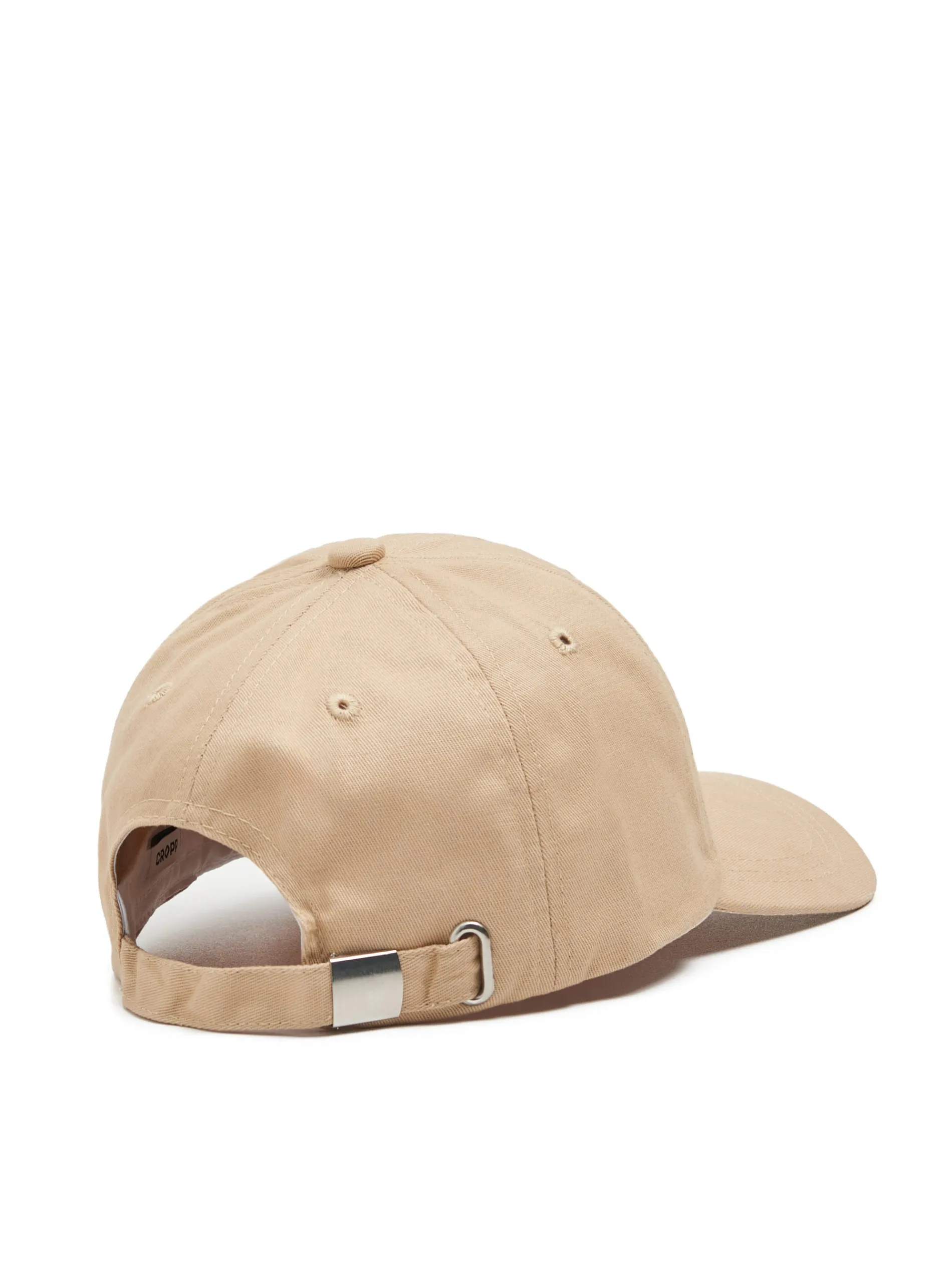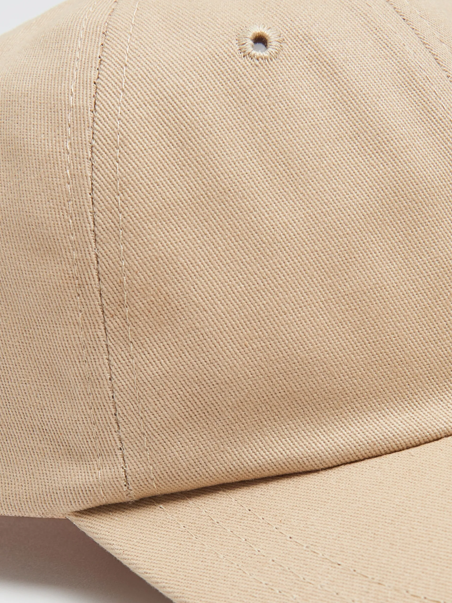 Damska czapka z daszkiem, wykonana z beżowej dzianiny. Gładki materiał z zapięciem z tyłu umożliwiającym regulację obwodu fituje z wieloma stylizacjami. uszyta z gładkiej, bawełnianej dzianiny możliwość regulacji szerokości obwodu, dzięki zapięciu regulowany pasek z klamrą zatrzaskową daszek typu basic