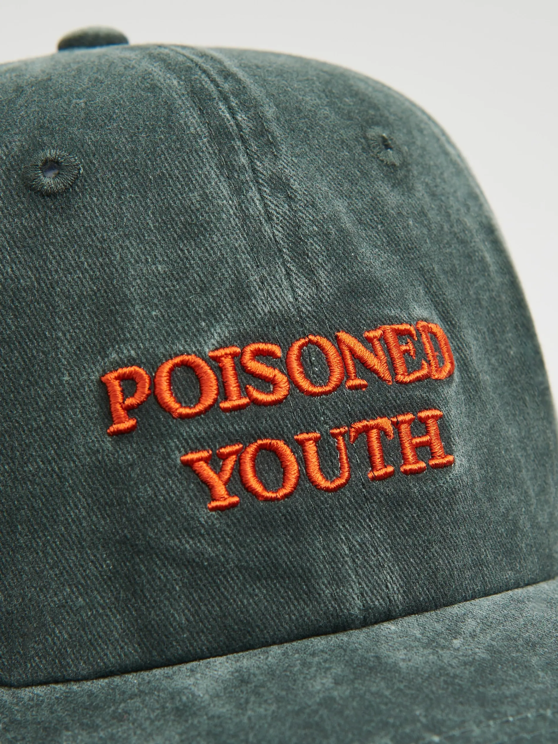 Męska czapka z daszkiem typu peak z wygodnym zapięciem z tyłu i oryginalnym tekstowym haftem na przodzie. wykonana z łączonych materiałów regularny krój możliwość regulacji szerokości obwodu, dzięki zapięciu efekt sprania na całości niewielki haft z przodu