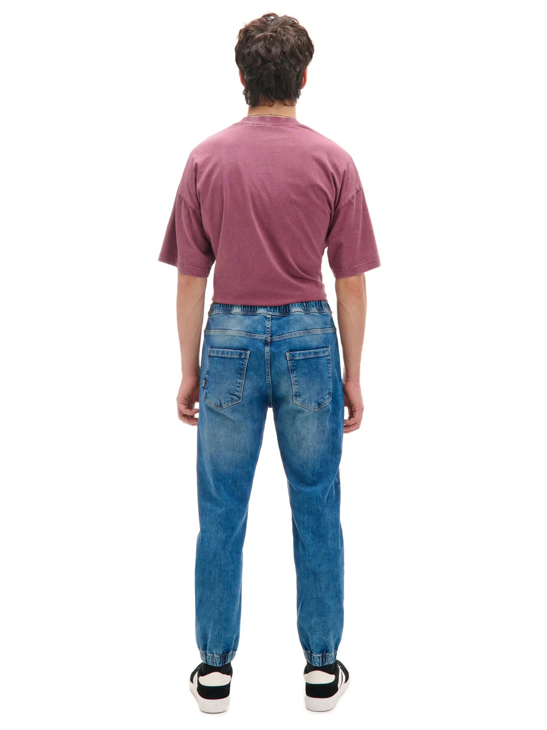 Męskie jeansy typu jogger o sportowym kroju, idealne dla osób ceniących sobie wygodę. Uszyte z mieszanki tkanin o bardzo wysokiej zawartości bawełny. regularna nogawka, zakończona ściągaczem z wszytą elastyczną gumką w pasie elastyczna gumka i sznurek do regulacji pięć kieszeni imitacja rozporka efekt sprania materiału