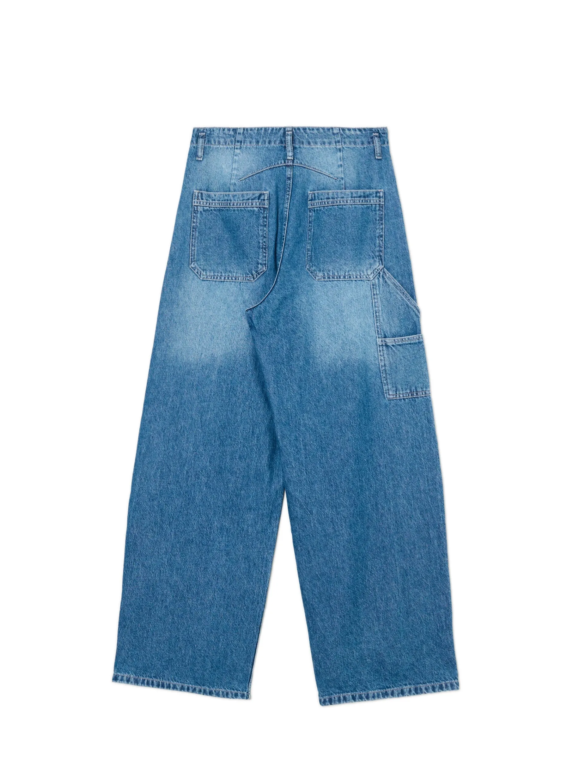Spodnie damskie jeansowe z szerokimi nogawkami o kroju skater, uszyte z bawełnianej tkaniny. Wygodny i stylowy casual na każdą okazję! 100% bawełny obszerny krój baggy regularny stan zapięcie na zamek i guzik długie, szerokie nogawki otwarte kieszenie z przodu naszywane kieszenie z tyłu dodatkowa kieszeń z boku delikatny efekt sprania
