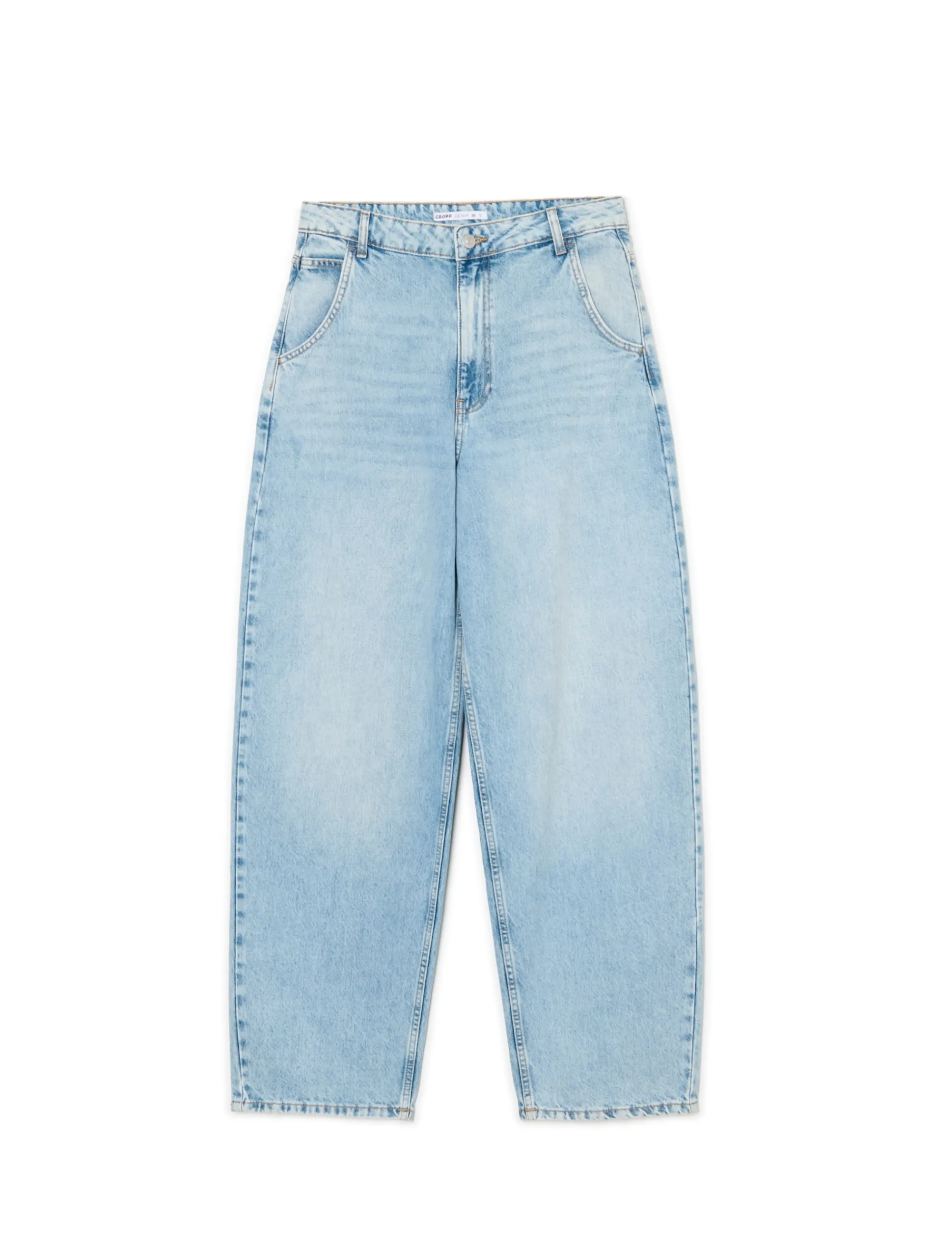 Damskie spodnie jeansowe typu skater, uszyte z bawełny. Luźne nogawki i dopasowana talia zapewnią komfort podczas aktywnego spędzania czasu. Dostępne inne wersje kolorystyczne. 100% bawełny krój skater zapięcie na suwak i guzik szlufki na pasek długie, szerokie nogawki dwie kieszenie z przodu, dwie z tyłu mała kieszeń na monety delikatny efekt sprania
