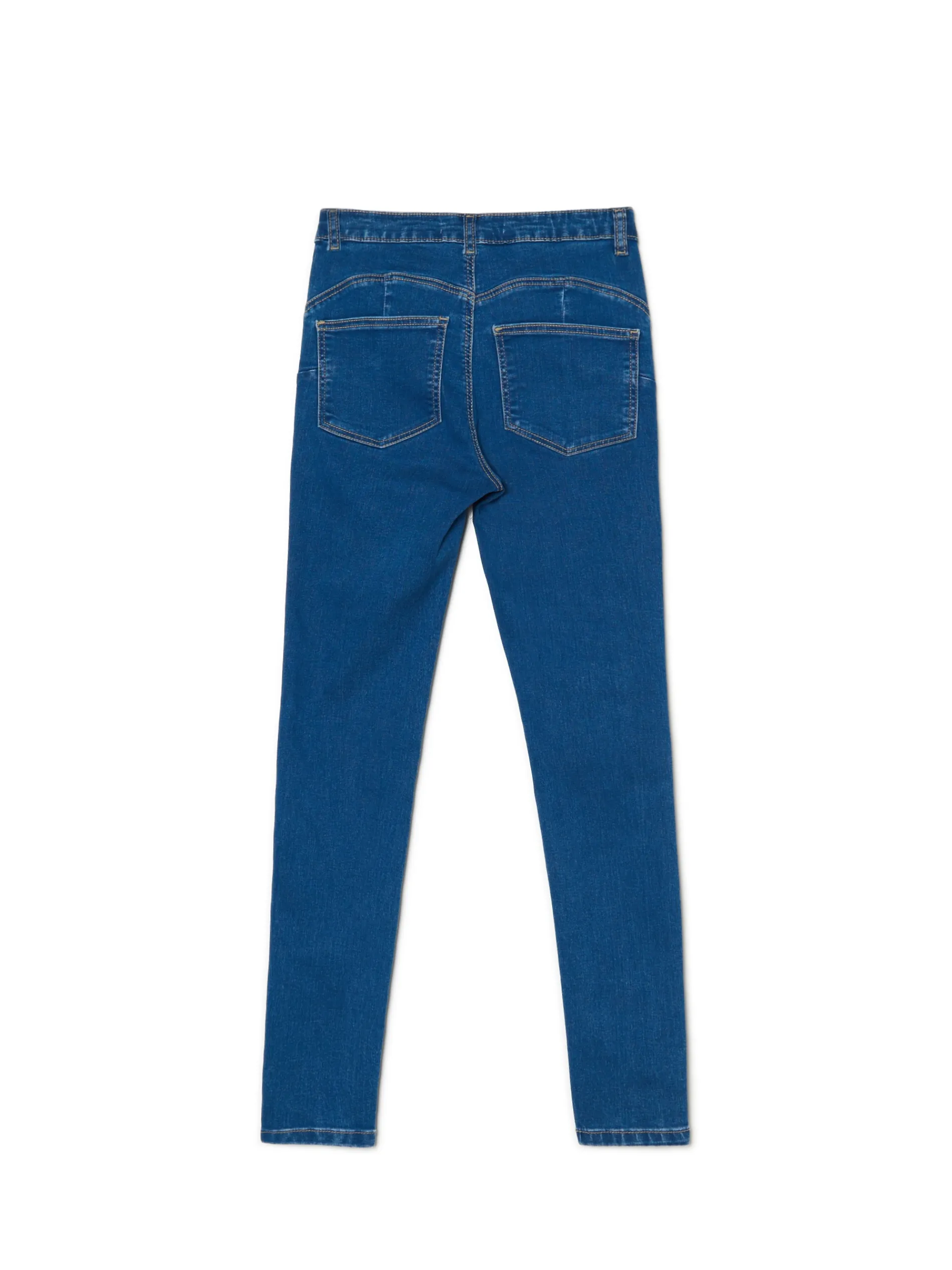 Damskie spodnie jeansowe, uszyte z bawełnianej dzianiny z dodatkiem elastycznych włókien. mocno dopasowany krój zapięcie na zamek i guzik efekt push up długie, wąskie nogawki cztery kieszenie szlufki na pasek Potrzebna Ci wersja petite? Jest tu: 9878Y-50J .