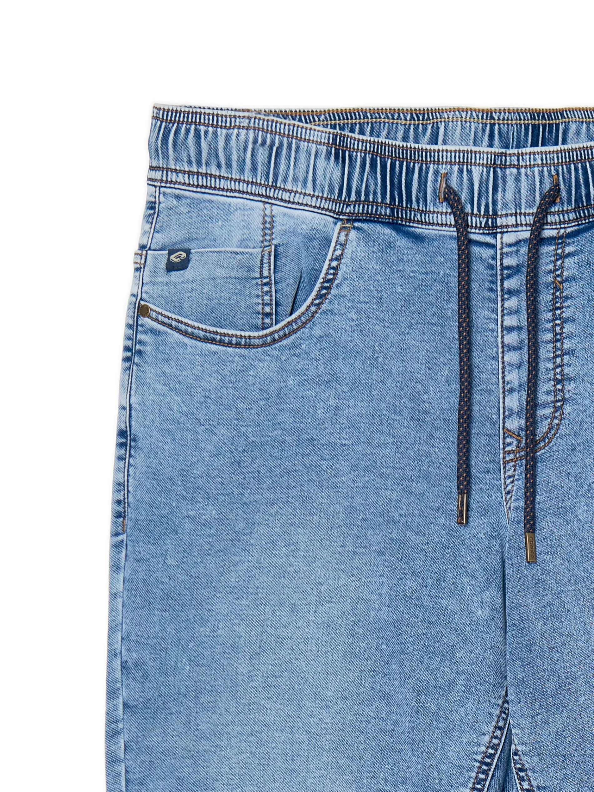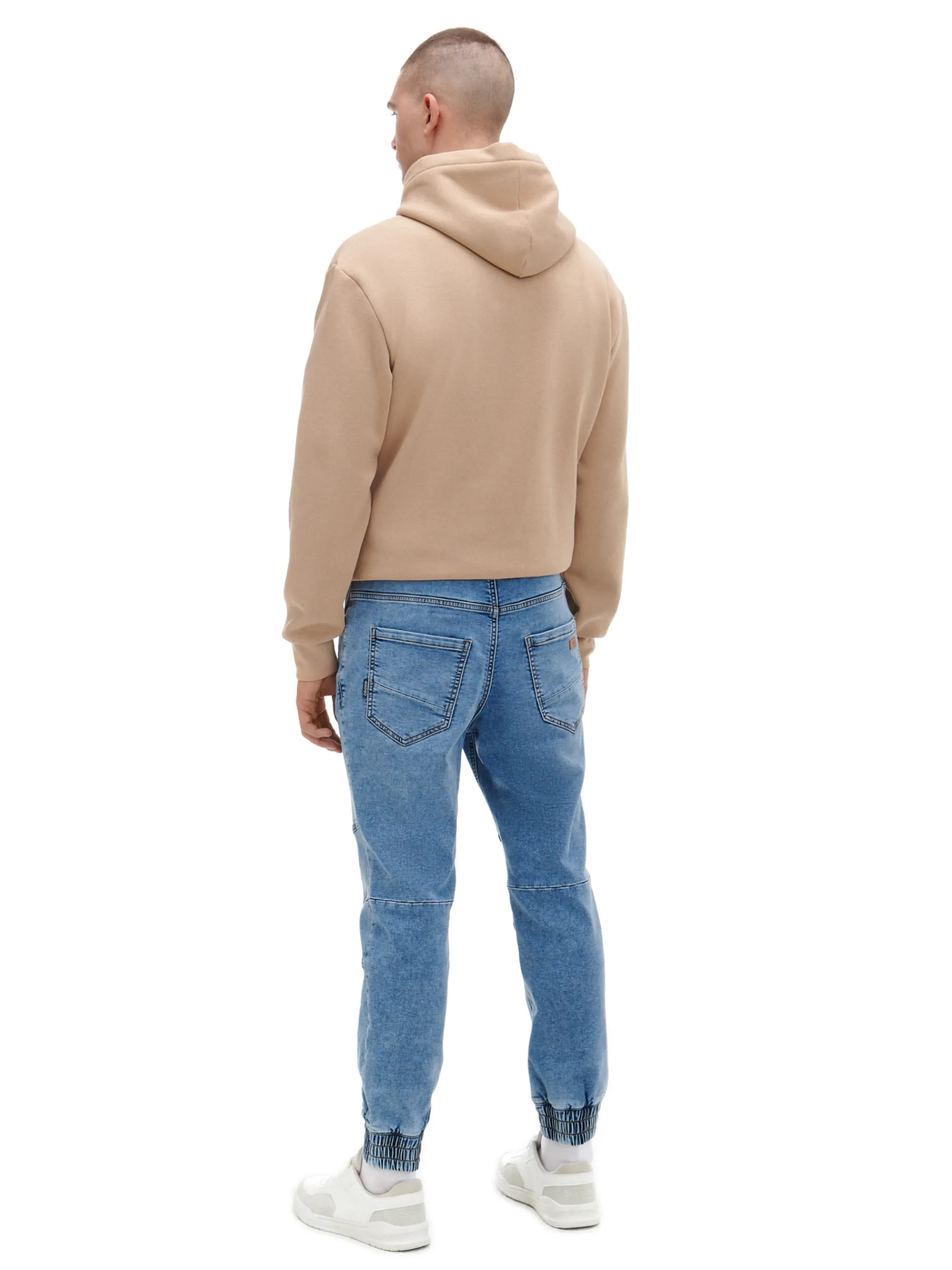 Męskie spodnie jeansowe typu jogger, uszyte z miękkiej, elastycznej tkaniny o wysokiej zawartości bawełny. w pasie gumka i sznurek do regulacji 5 kieszeni nogawka ze ściągaczem i technicznymi cięciami dostęone inne warianty kolorystyczne