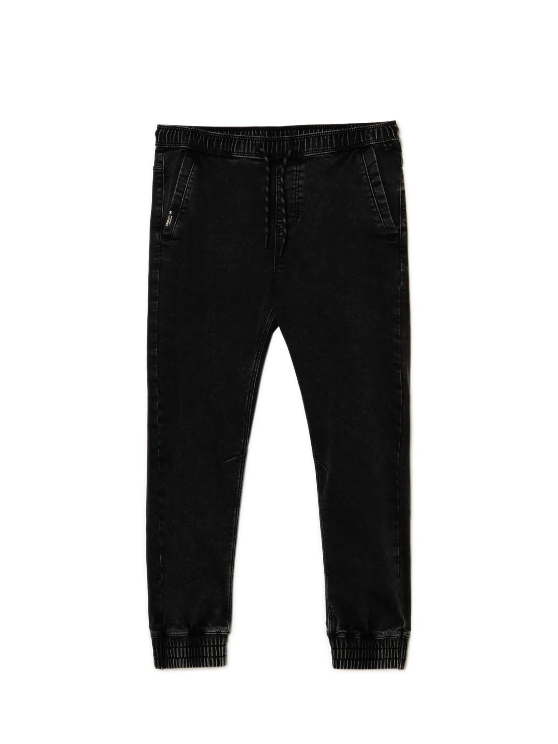 Jeansy i dresy w jednym modelu? Czemu nie! Te męskie denimowe joggery zostały uszyte z mieszanki tkanin z elastycznym wykończeniem. Ściągacze przy nogawkach, guma z regulacją w pasie i praktyczne kieszenie przypominają wyglądem dresy. dresowe joggery o kroju regular tkanina z dodatkiem elastycznych włókien, dzięki czemu model dopasowuje się do zmieniającej się sylwetki guma w pasie ze sznurkiem do regulacji nogawki zakończone ściągaczem skośne kieszenie po bokach dwie naszyte kieszenie tylnie efekt sprania na całości dodatkowa szlufka, np. na klucze lub otwieracz do piwa naszywka Cropp