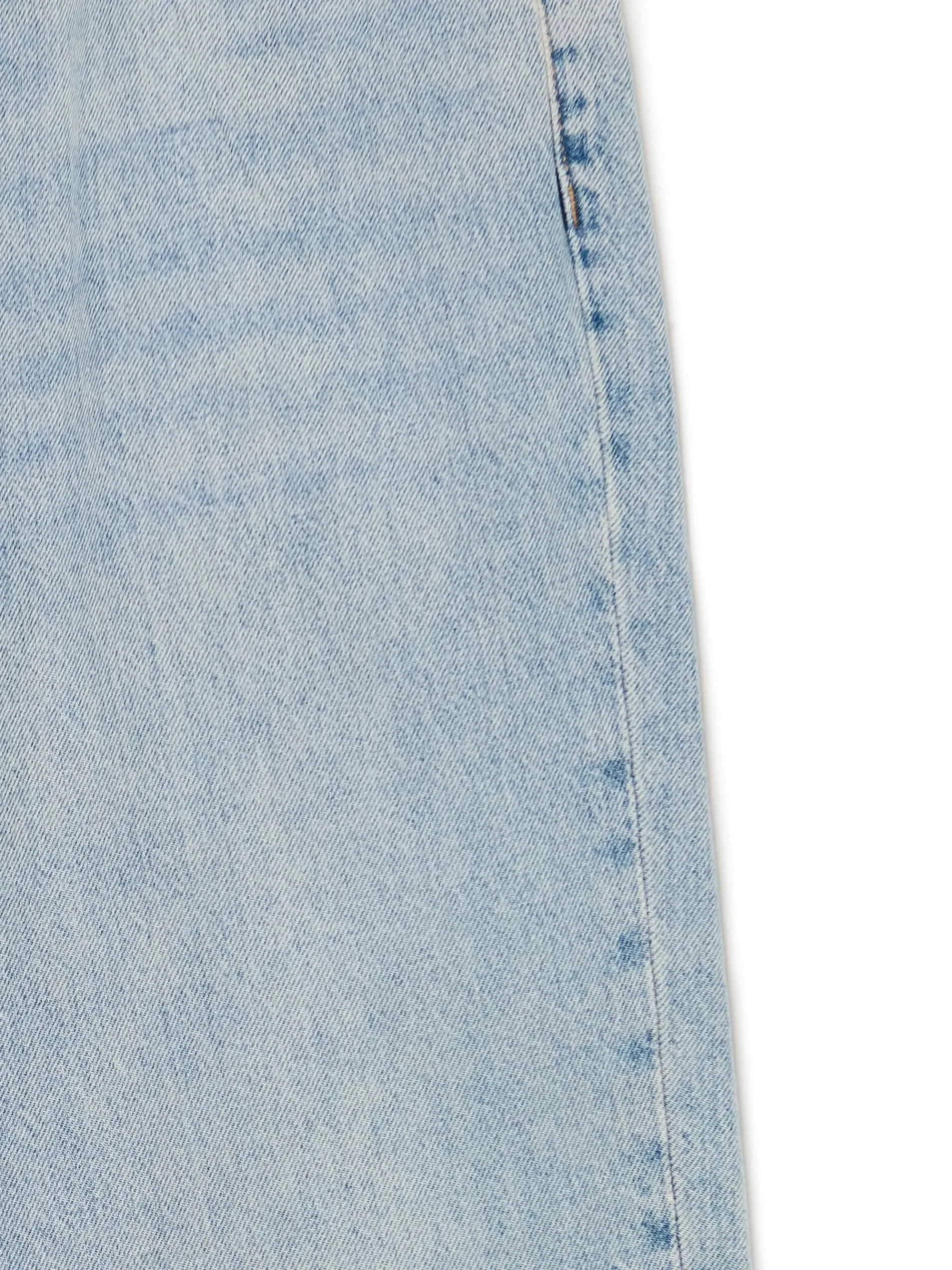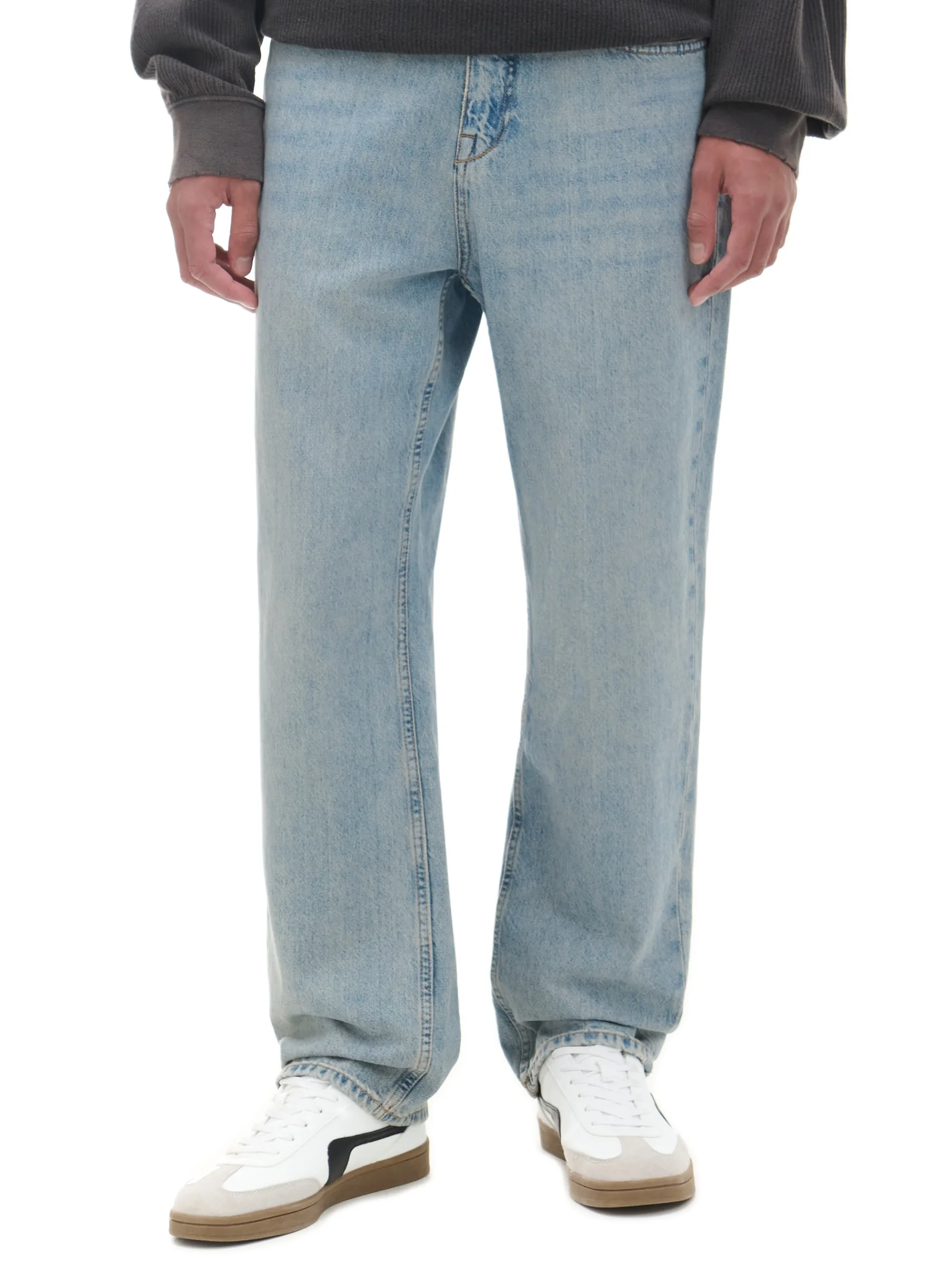 Męskie spodnie jeansowe typu relaxed, uszyte z bawełnianej tkaniny. Szlufki blisko siebie to praktyczne rozwiązanie na zmęczone ręce po całym dniu. Zrelaksuj się! 100% bawełny prosty krój zapięcie na zamek i guzik wąskie szlufki na pasek pięć kieszeni delikatny efekt sprania Wzrost modela: 185 cm