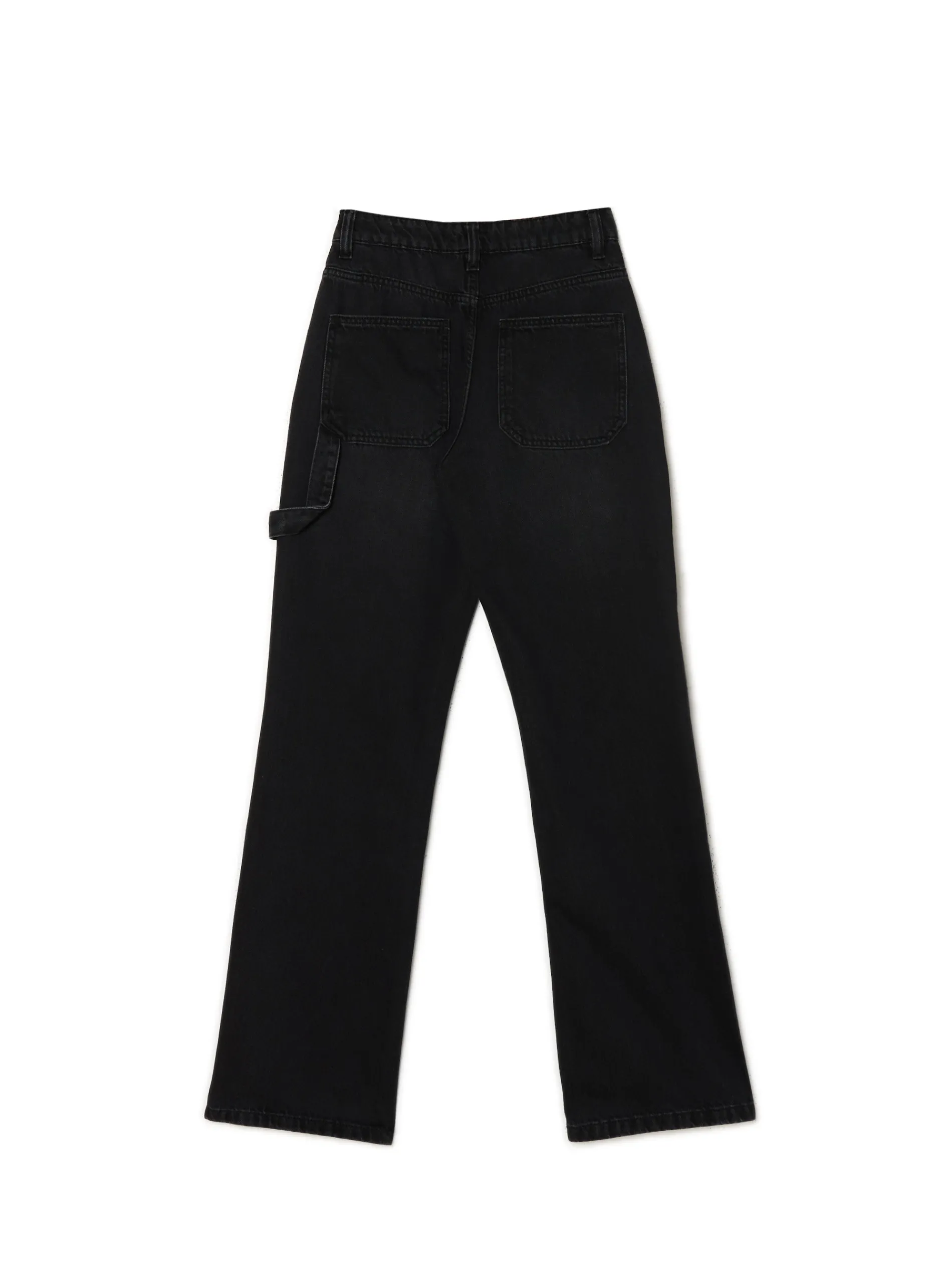 Mamy dla Ciebie wyjątkowe denimowe damskie spodnie z prostymi nogawkami. Randomowy efekt sprania nadaje im oryginalny, oldschoolowy styl. 100% bawełny długie, proste nogawki zapięcie na zamek i guzik skośne kieszenie z przodu naszywane kieszenie z tyłu jedna mała kieszeń na drobniaki szlufki na pasek hammer loop na lewej nogawce lekki efekt sprania na udach i pośladkach