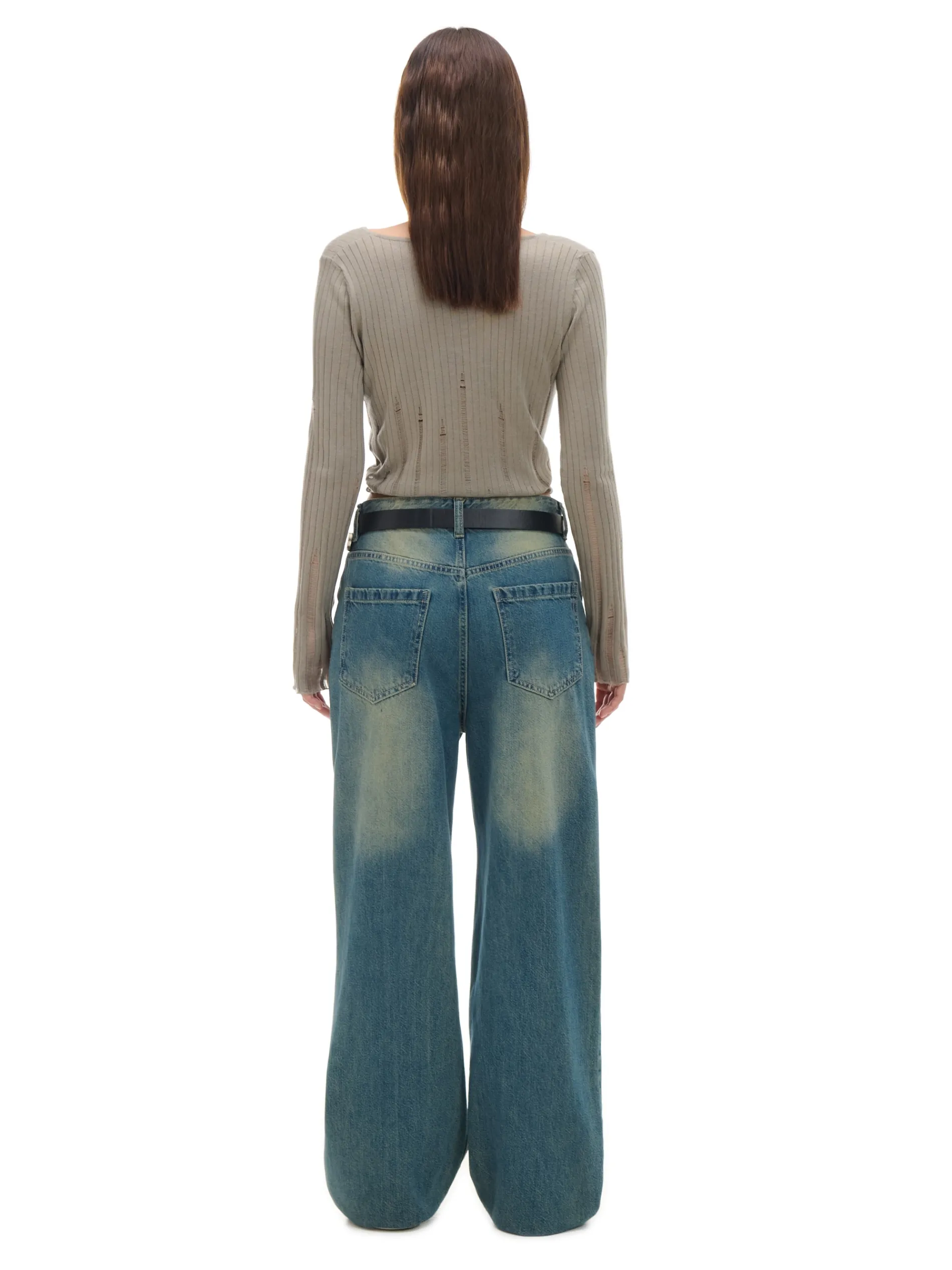 Damskie spodnie jeansowe uszyte z bawełnianej tkaniny. Wygodny i klasyczny item, który fituje z wieloma stylizacjami! 100% bawełny obszerny krój baggy model petite – odpowiedni dla niższych osób zapięcie na zamek i guzik długie, szerokie nogawki pięć kieszeni modny efekt sprania Czekasz na wersję regular? Już jest: 729AQ-55M .