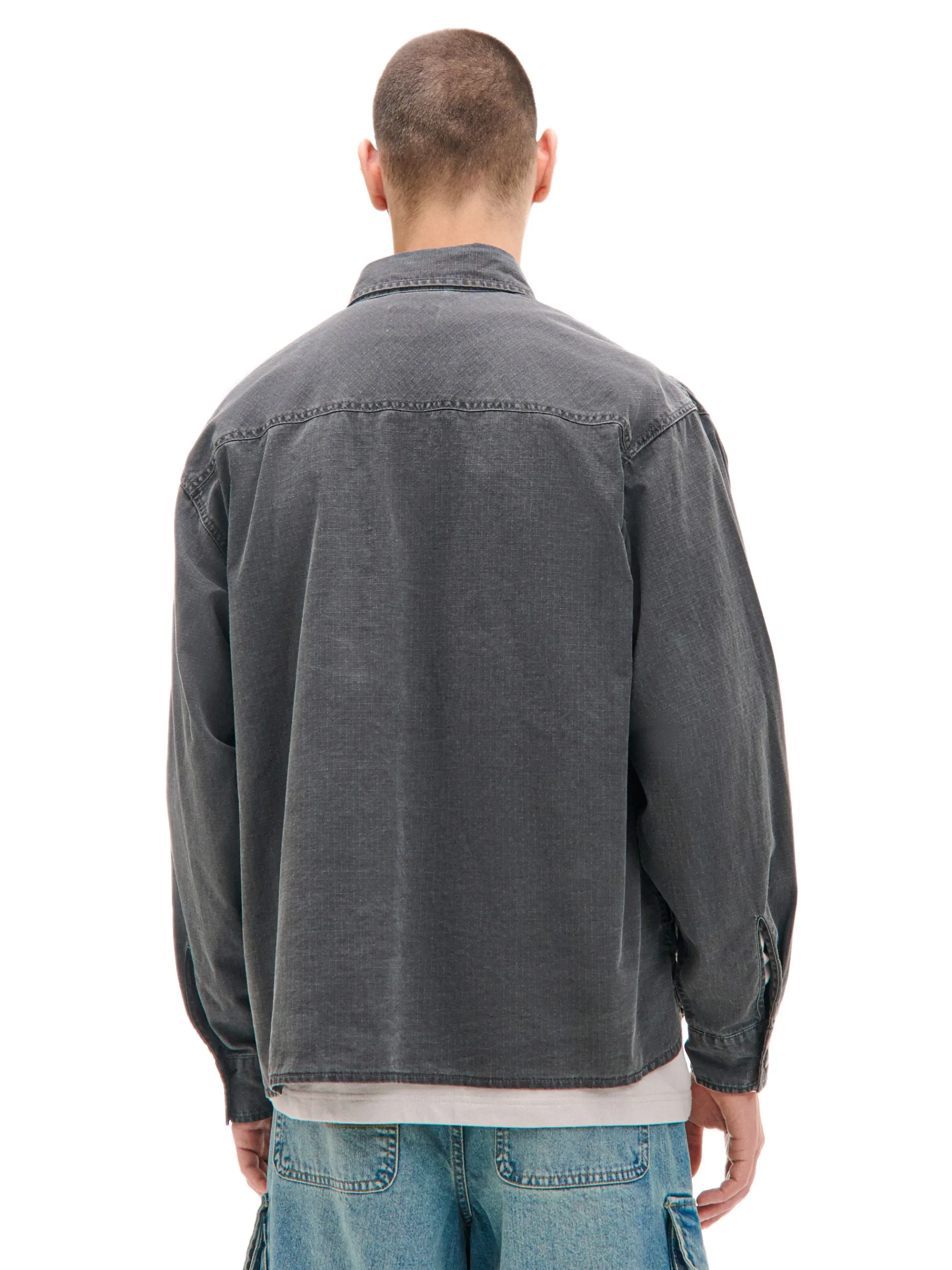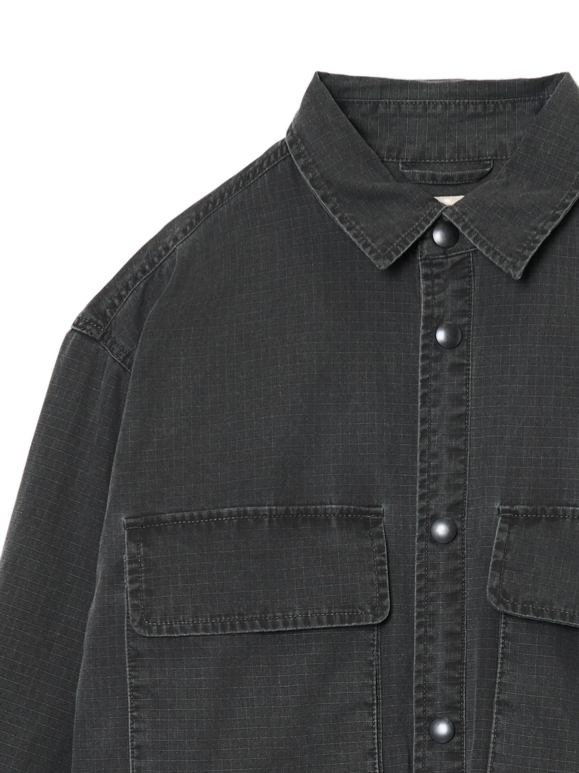 Ta casualowa męska koszula wykonana z mocno spranej tkaniny rip-stop nadaje się na spontaniczne meetingi. Wyposażona w zapięcie na zatrzaski i aż 6 kieszeni. W tym dwie podwójne na piersi i 2 w bocznych szwach. Wygodnie i stylowo! 100% bawełny wygodny krój comfort zapięcie na zatrzaski na całej długości klasyczny kołnerzyk długie rękawy z zatrzaskami dwie duże naszywane kieszenie okryte patkami dwie kieszenie z przodu dwie kieszenie po bokach efekt sprania na całości