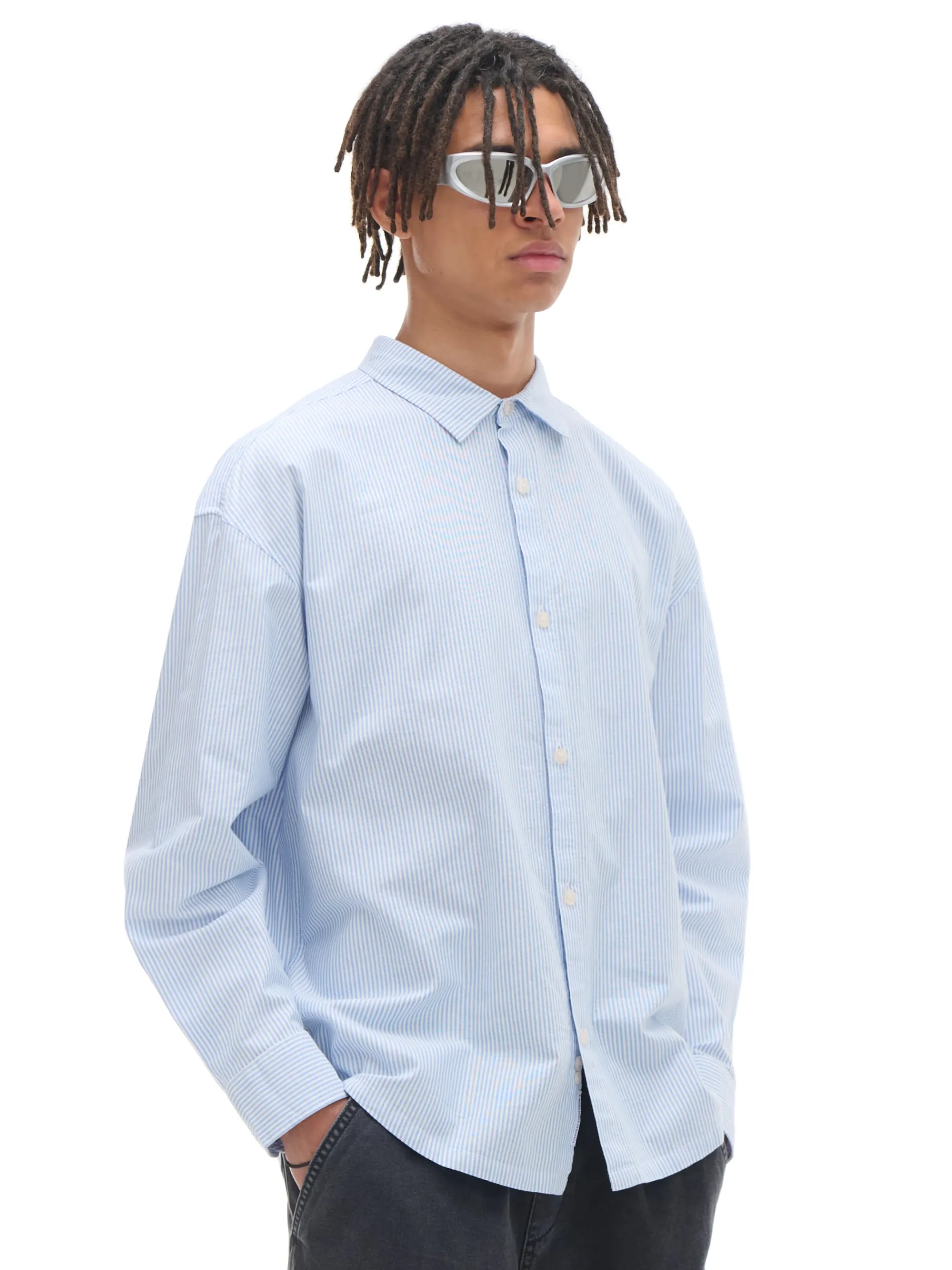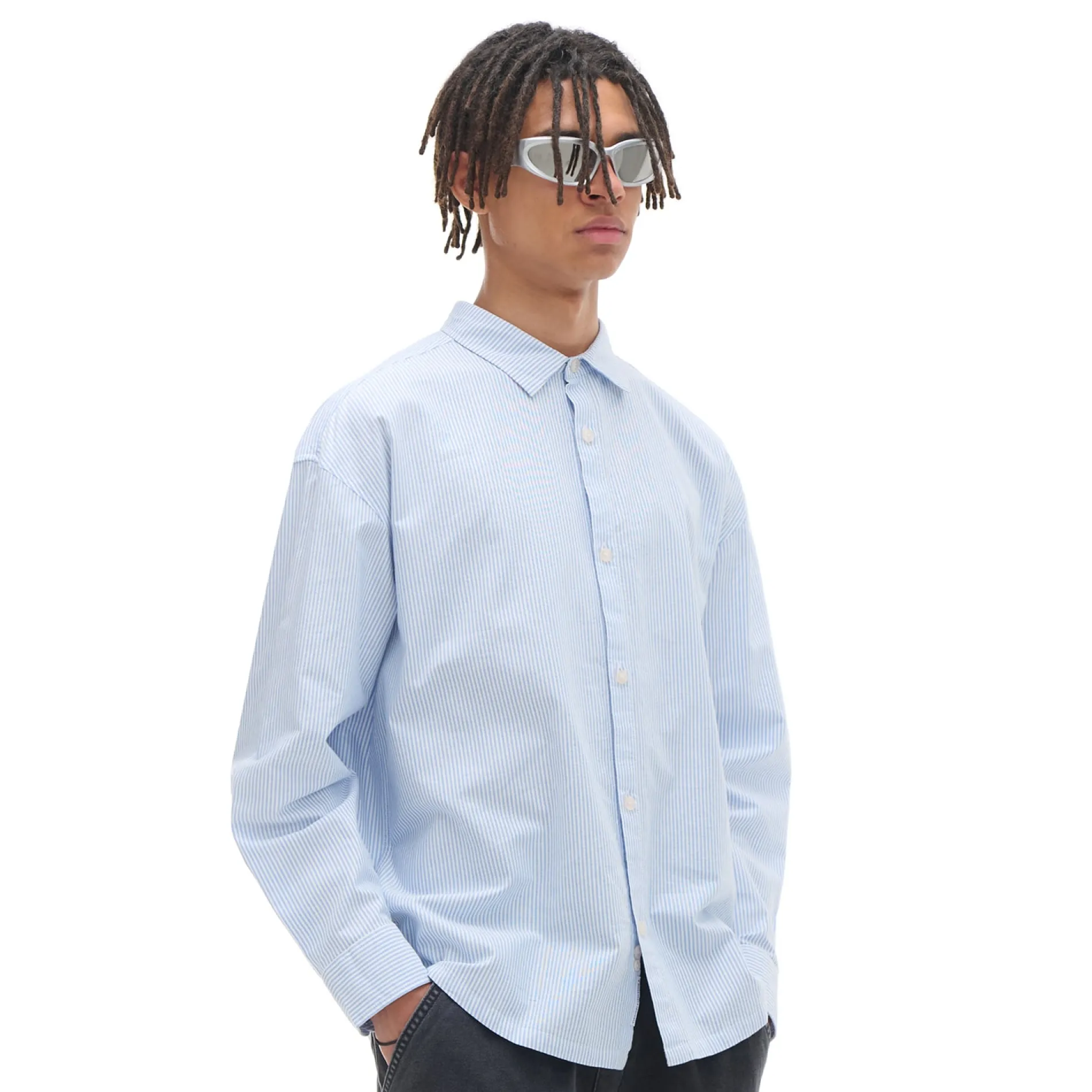 Męska koszula o kroju comfort, uszyta z bawełnianej tkaniny ze wzorem w drobne paski. Idealna do casualowych i eleganckich stylizacji. 100% bawełny wygodny krój comfort jednorzędowe zapięcie na guziki klasyczny kołnierzyk długie rękawy zakończone mankietem z guzikami wzór w paski all over