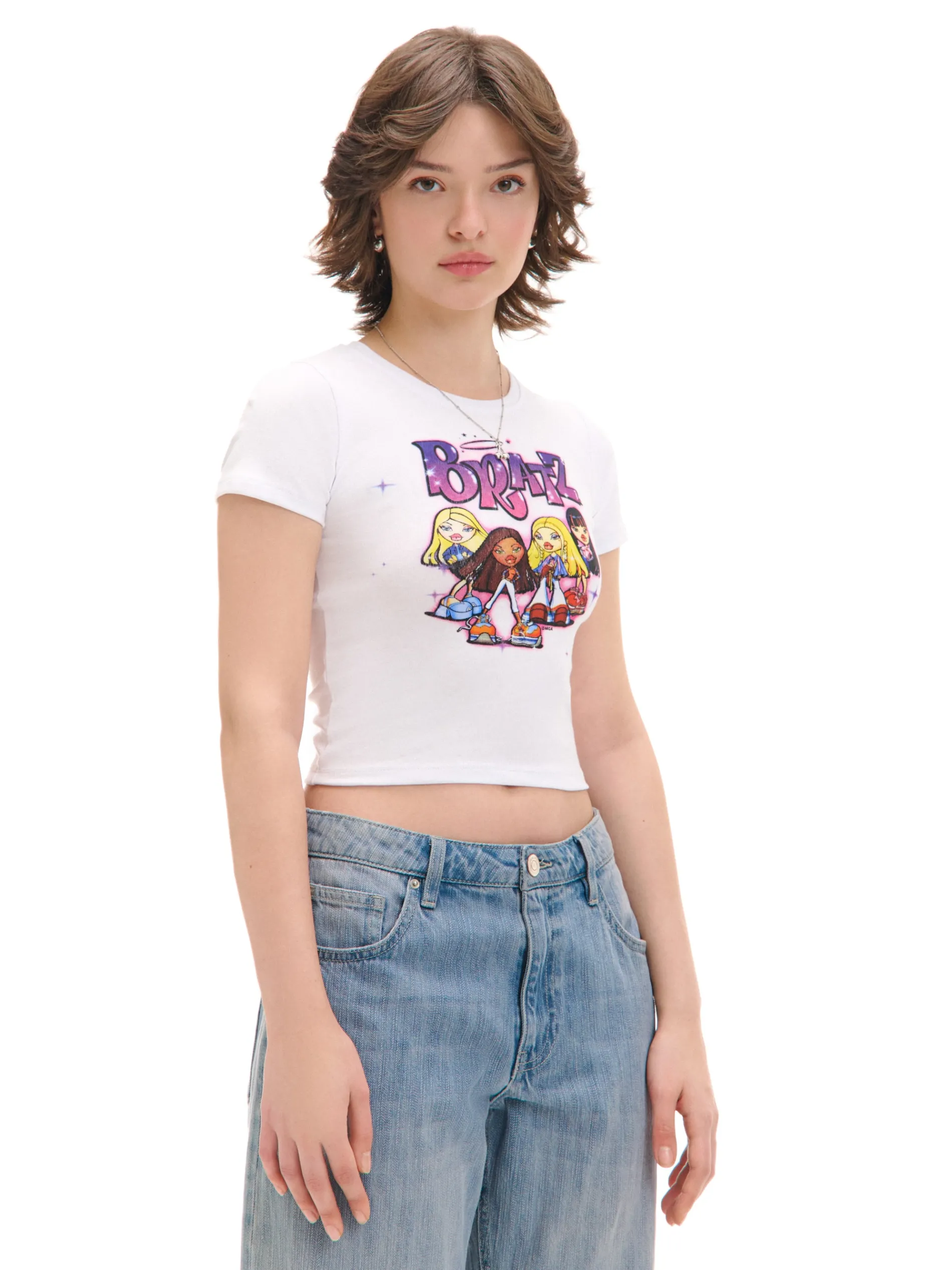 Mamy dla Ciebie damski T-shirt z krótkim rękawem o dopasowanym kroju z nadrukiem inspirowanym serią lalek Bratz. Dziewczyny znają się na modzie! bawełna z dodatkiem elastycznych włókien dopasowany krój podkreślający sylwetkę okrągły dekolt krótkie, ścięte rękawy nadruk z przodu ©2024 MGA ENTERTAINMENT, INC. BRATZ ® IS A TRADEMARK OF MGA IN THE U. S. AND OTHER CONUTRIES. ALL LOGOS, NAMES, CHARACTERS, LIKENESSES, IMAGES, SLOGANS, AND PACKAGING APPEARANCE ARE ALL PROPERTY OF MGA.