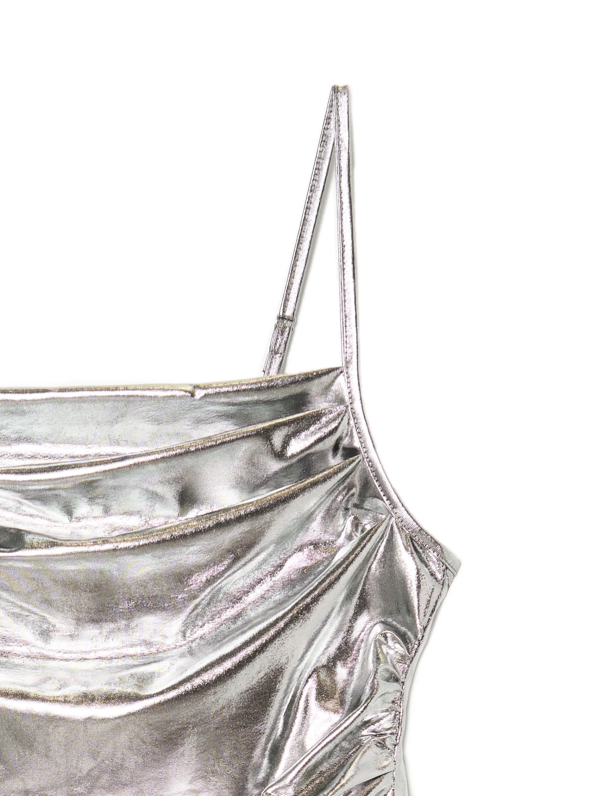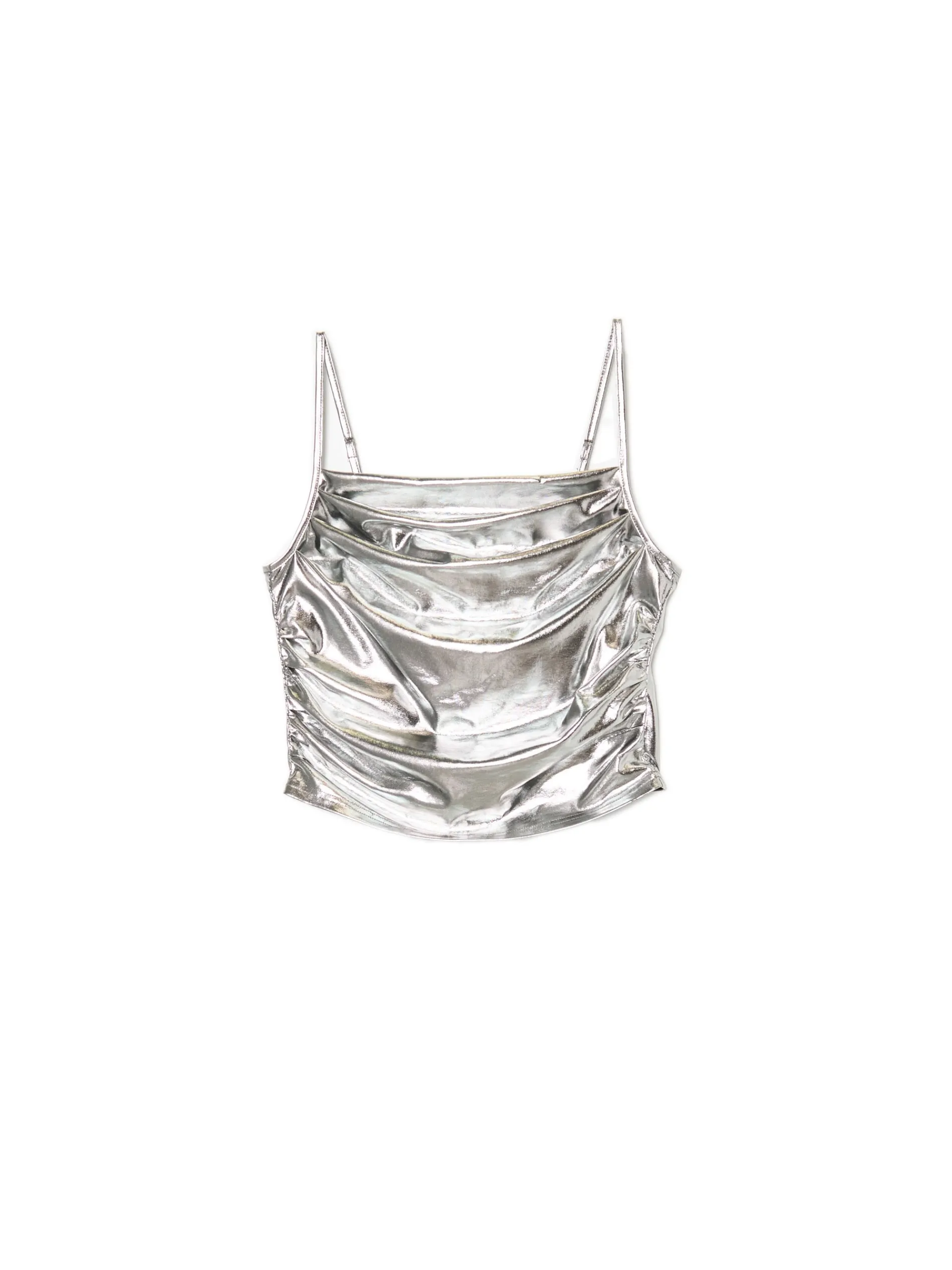 Szukasz ciekawych stylizacji na Sylwestra? Łap top z regulowanymi, cienkimi ramiączkami. Uszyty z mieszanki dzianin z dodatkiem elastycznym włókien. Dzięki temu model pięknie układa się na sylwetce. W tym itemie zabłyśniesz na imprezie! dzianina z domieszką elastycznych włókien dopasowany krój podkreślający sylwetkę wąskie ramiączka z regulacją długości ozdobne marszczenie z przodu
