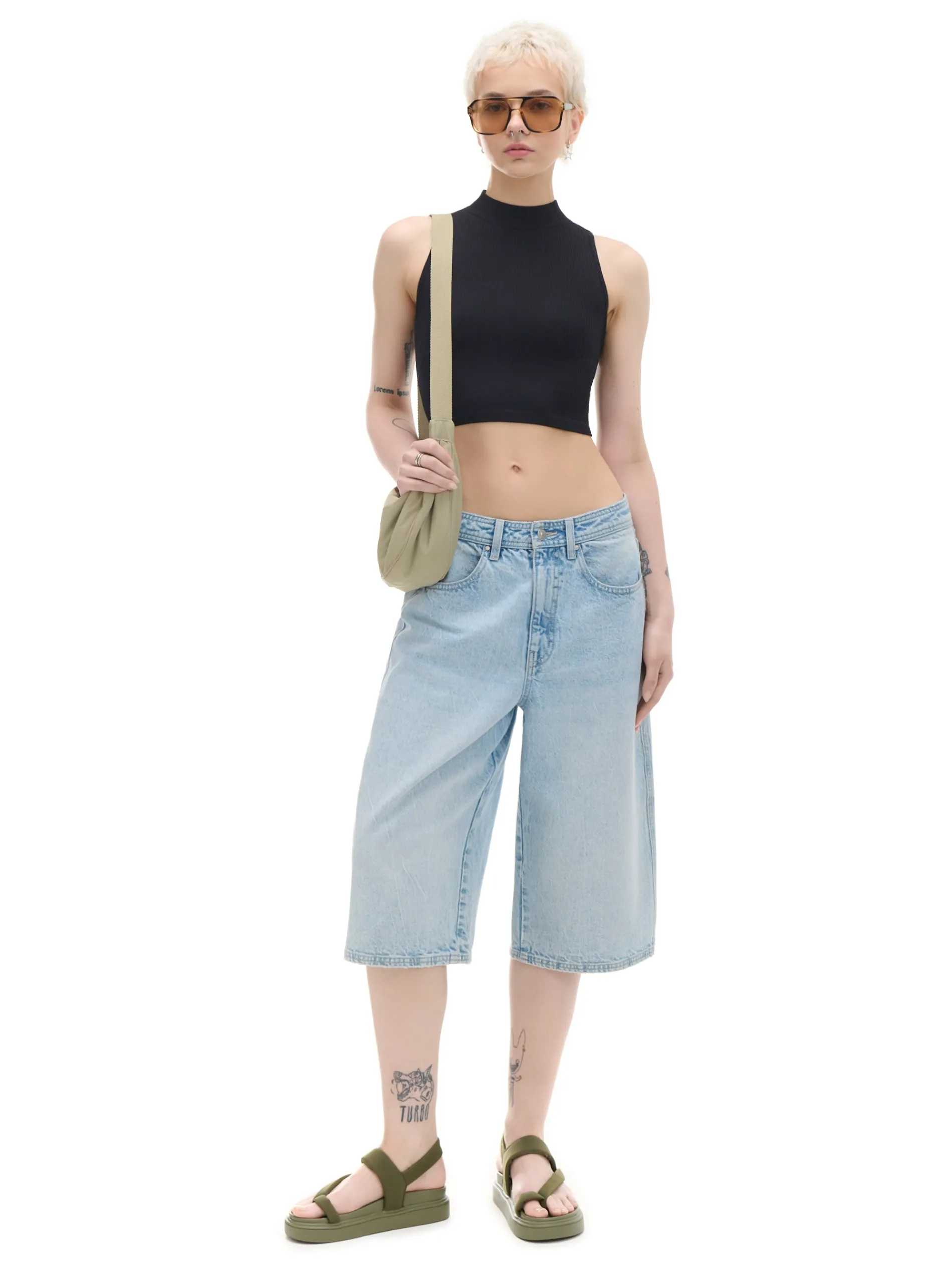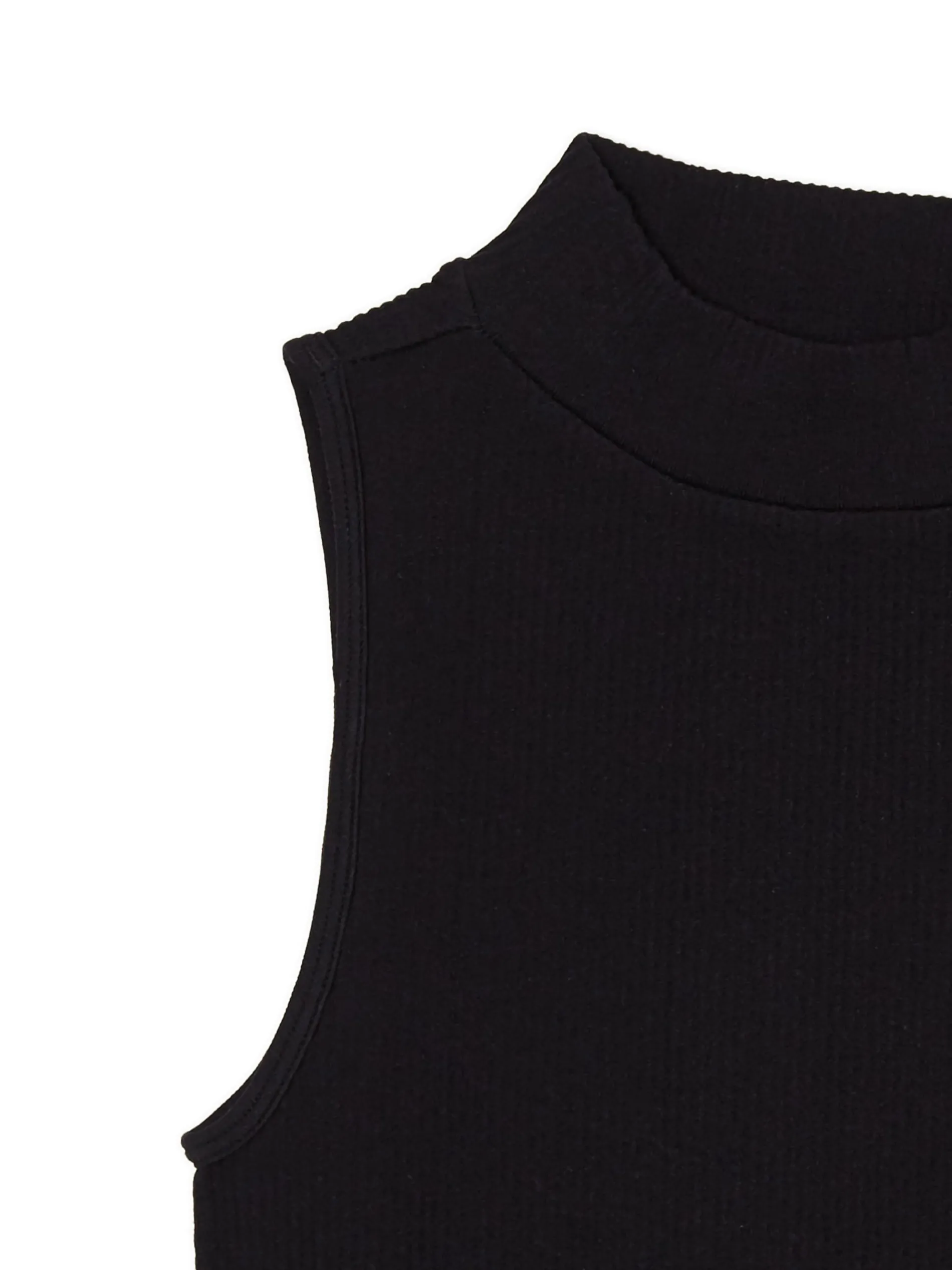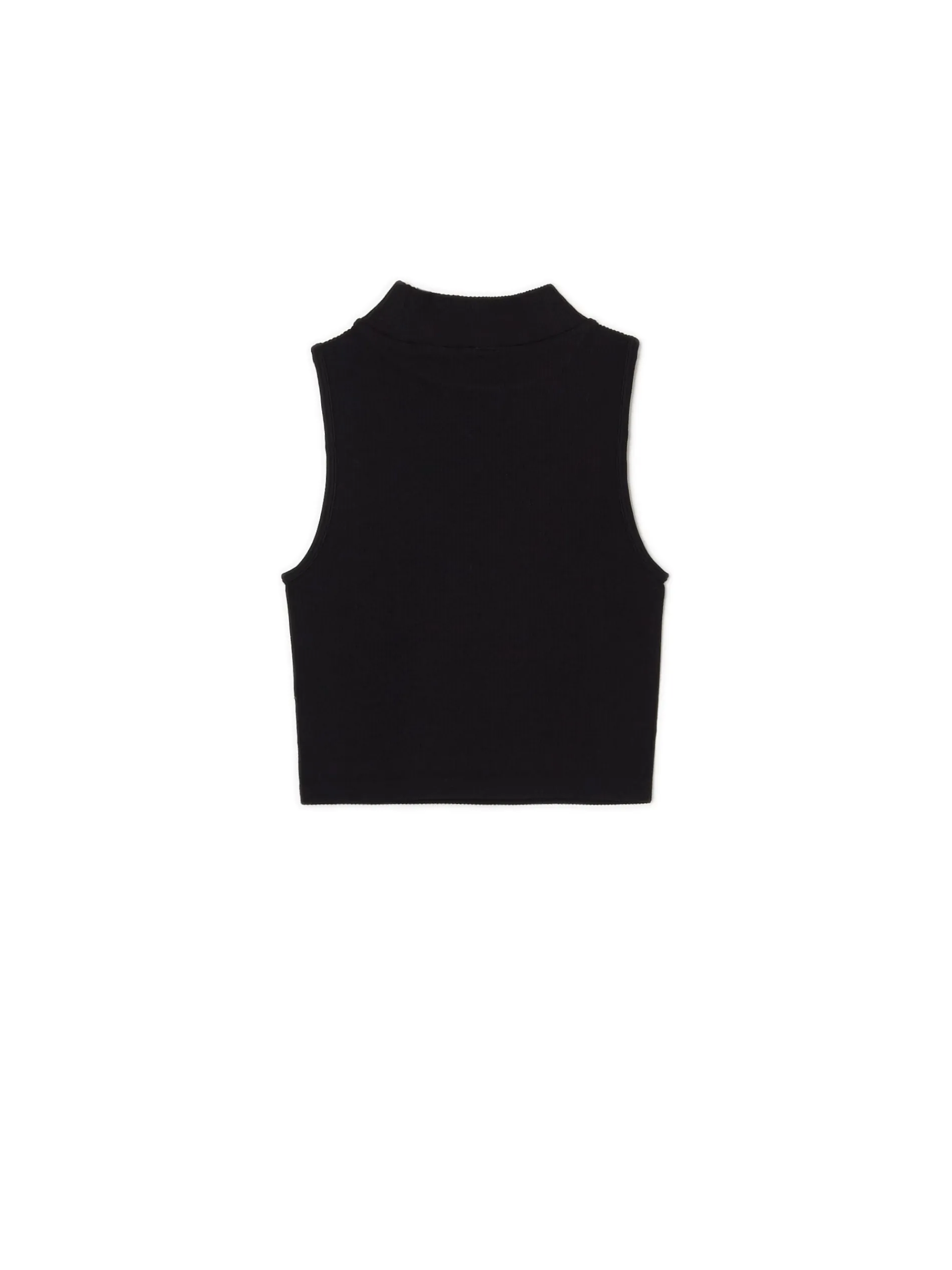 Damska czarna koszulka prążkowana na całej długości, bez rękawów i ze stójką. Idealny dodatek do wielu stylizacji.
