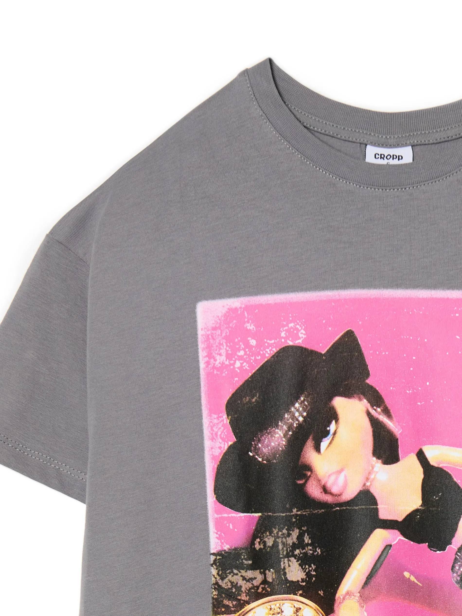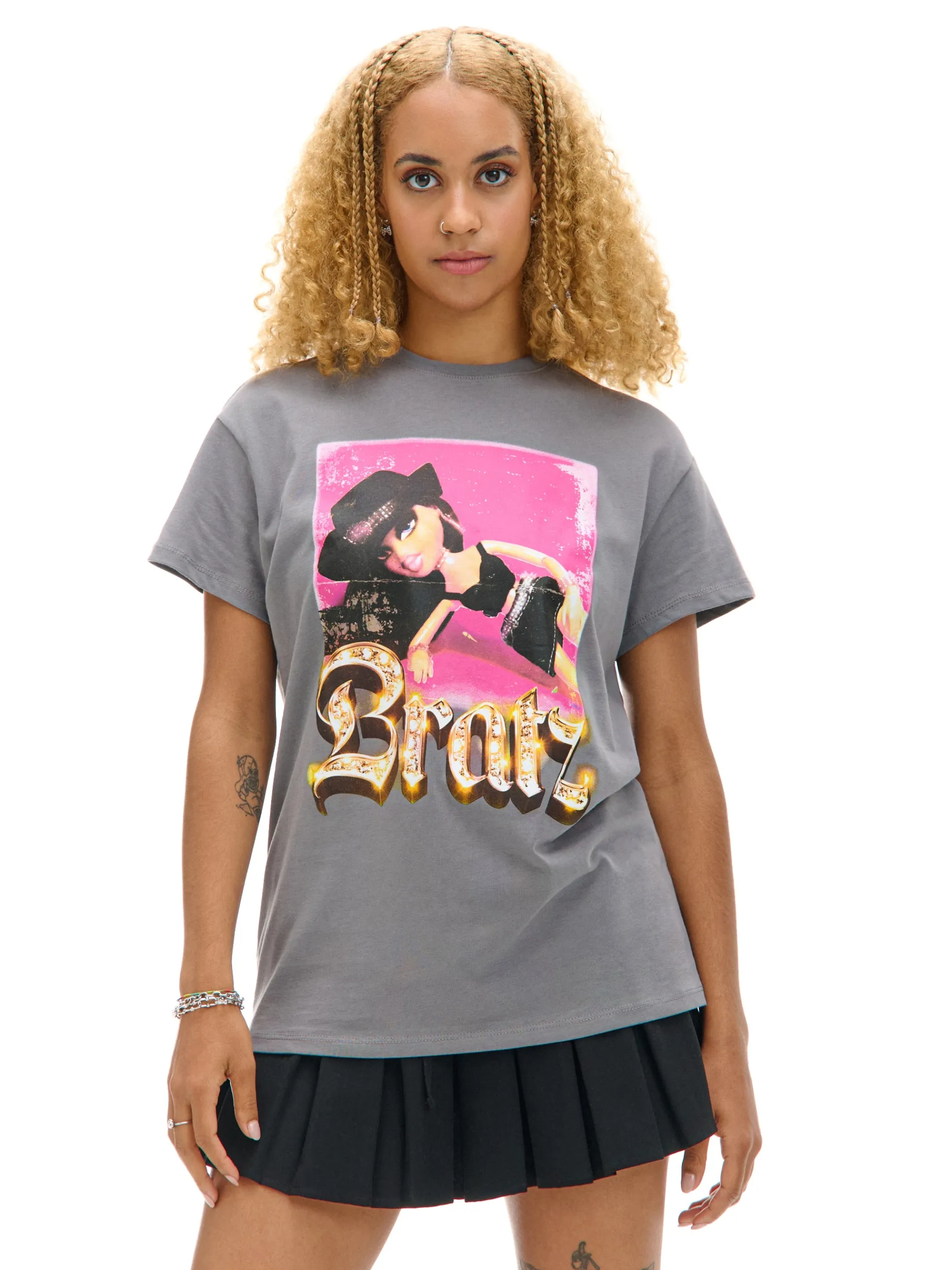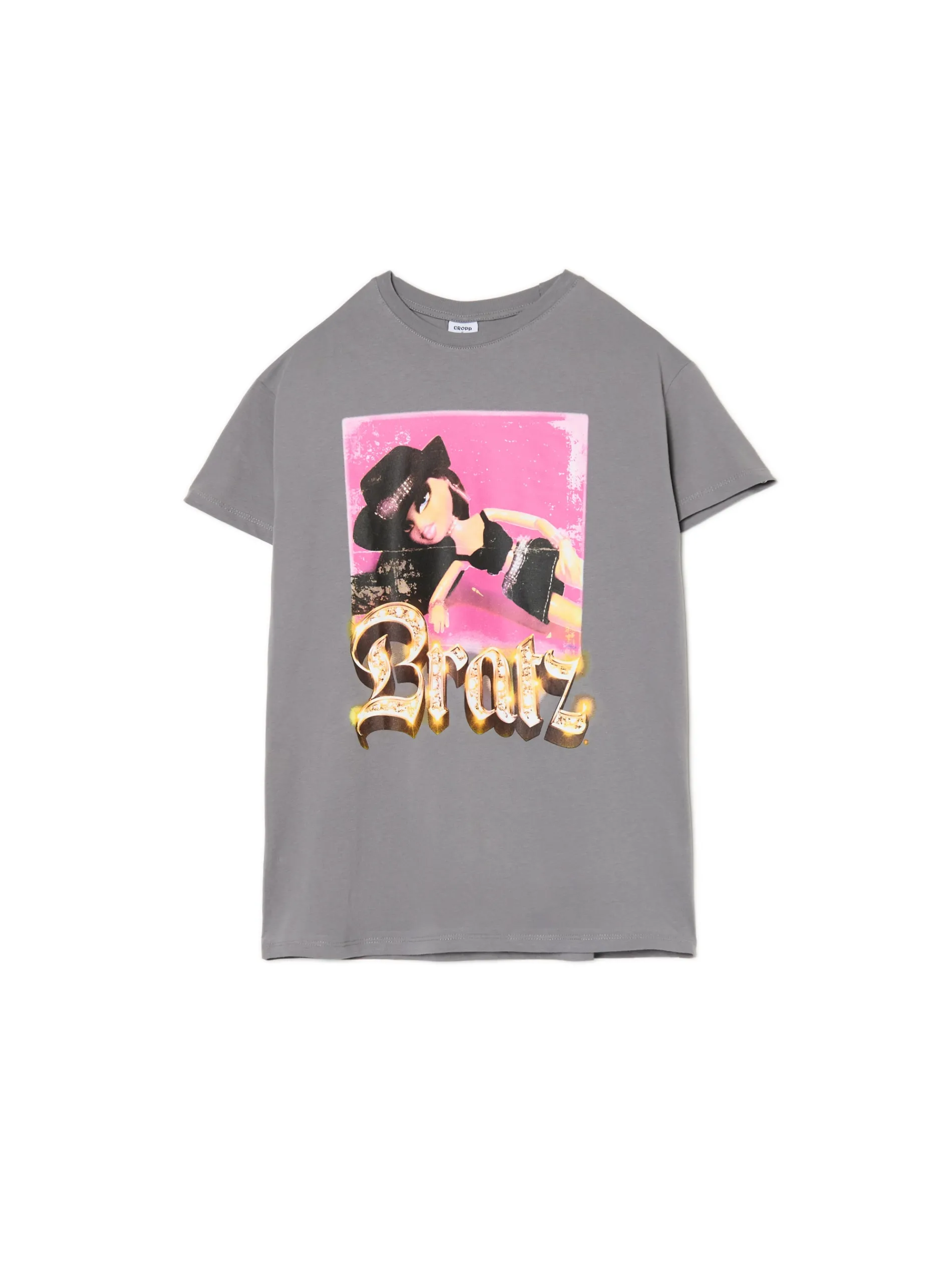 Bawełniana damska koszulka o swobodnym kroju z krótkim rękawem w jasnoszarym kolorze. Na przodzie licencjonowana grafika z lalką z serii Bratz. 100% bawełny krój oversize krótkie, swobodne rękawy delikatnie obniżona linia ramion nadruk z przodu ©2024 MGA ENTERTAINMENT, INC. BRATZ ® IS A TRADEMARK OF MGA IN THE U. S. AND OTHER CONUTRIES. ALL LOGOS, NAMES, CHARACTERS, LIKENESSES, IMAGES, SLOGANS, AND PACKAGING APPEARANCE ARE ALL PROPERTY OF MGA.