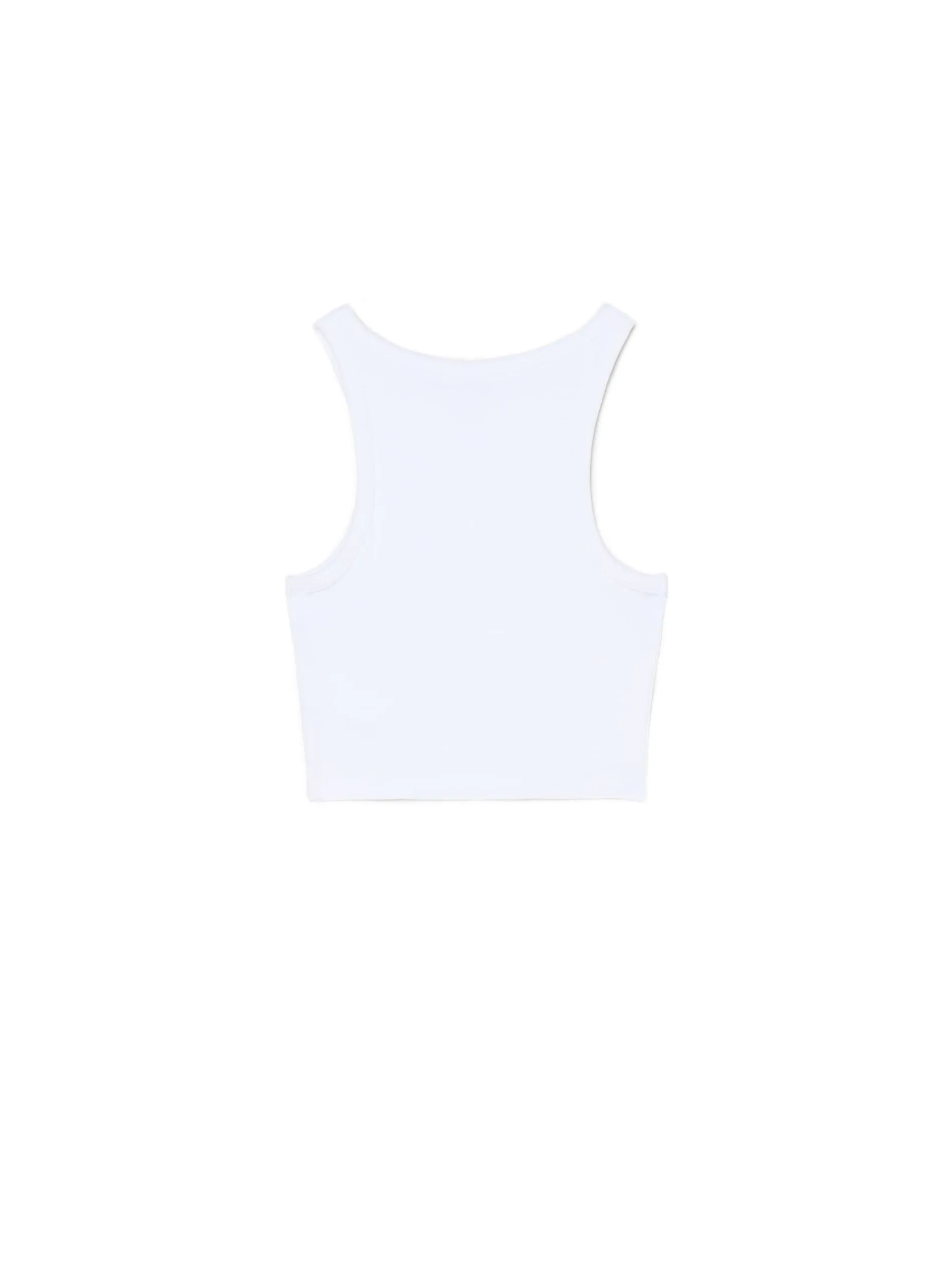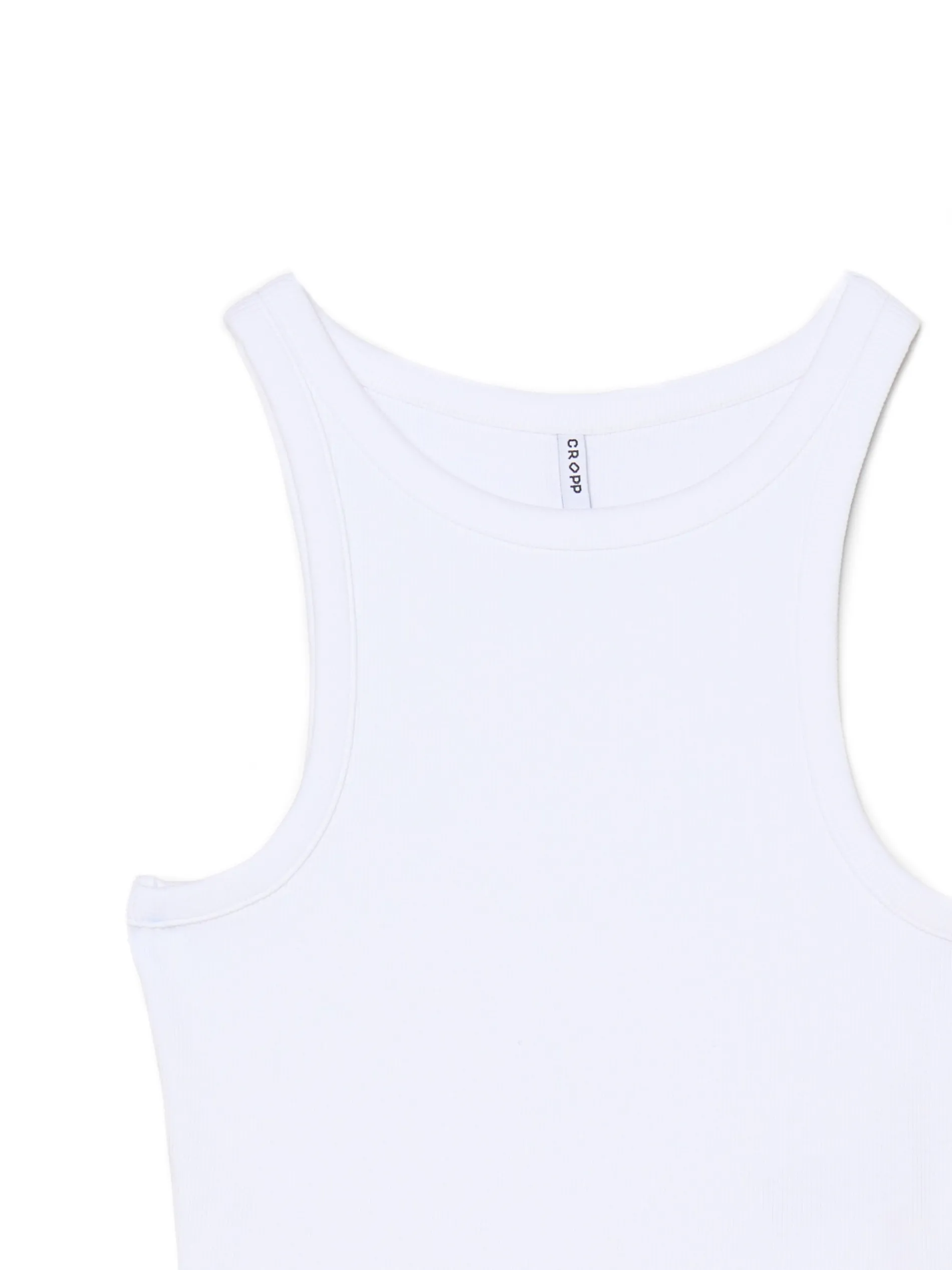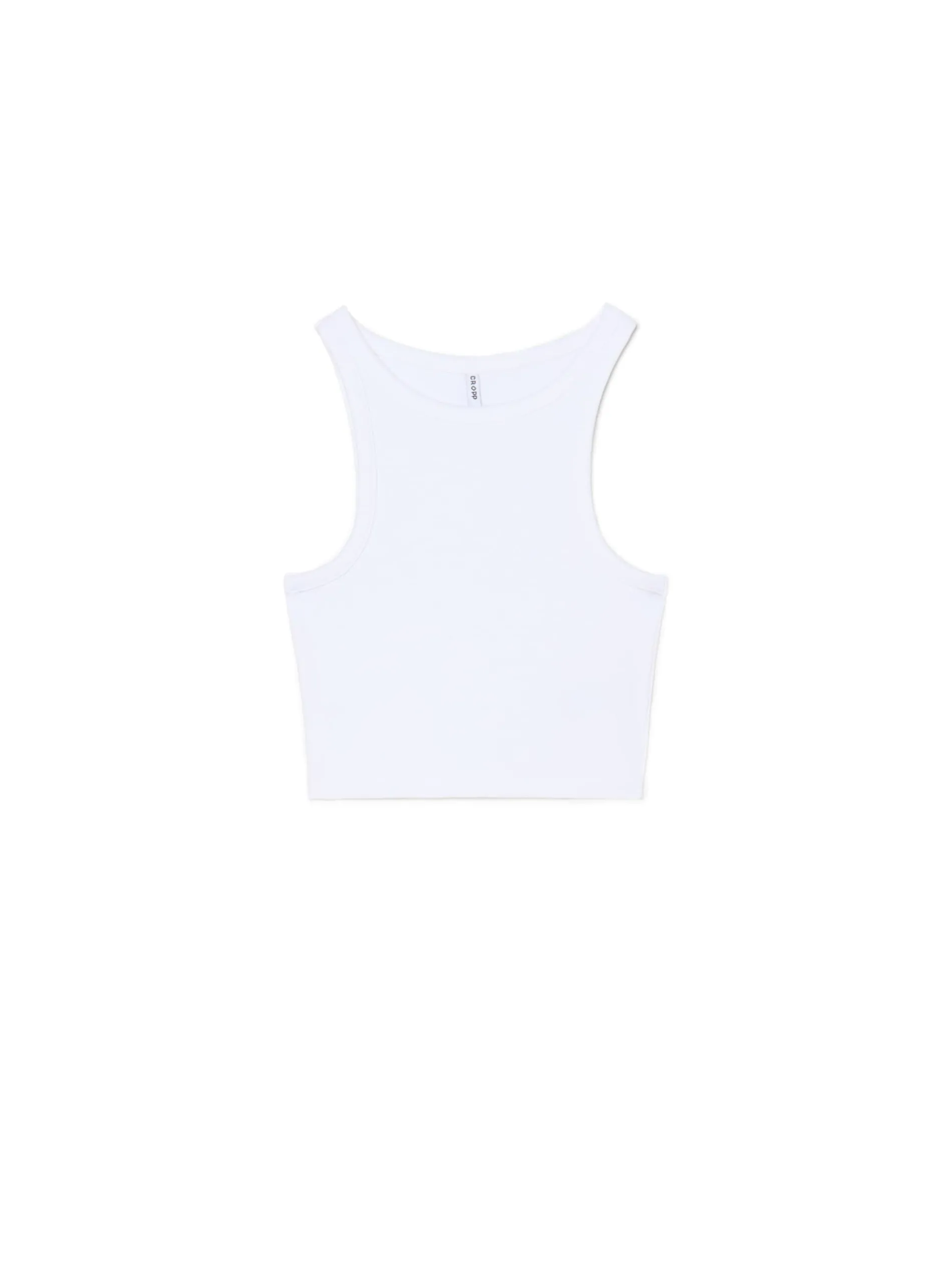 Damski top wykonany z dzianiny o wysokiej zawartości bawełny. Stonowana kolorystyka sprawiają, że ten top gra z każdą stylizacją. elastyczna, prążkowana dzianina koszulka typu crop o dopasowanym kroju zabudowany, okrągły dekolt z lamówką cienkie ramiączka produkt występuje w kilku kolorach