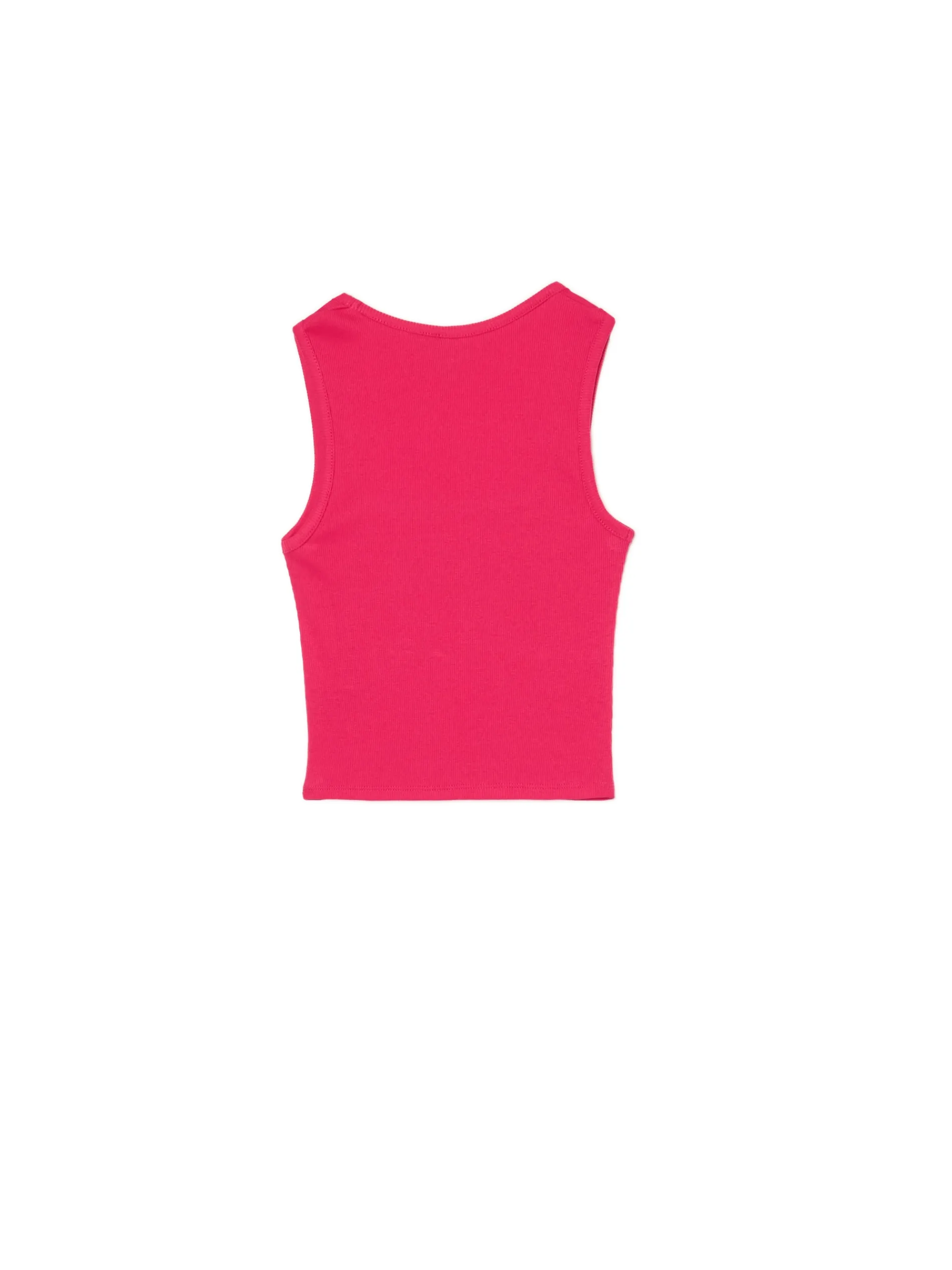 Damski top w supermodnym kolorze hot pink, uszyty z prążkowanej dzianiny o bardzo wysokiej zawartości bawełny. It’s giving doll couture >>> dopasowany krój grube ramiączka dekolt karo przodu napis BRATZ z błyszczących cyrkonii ©2024 MGA ENTERTAINMENT, INC. BRATZ ® IS A TRADEMARK OF MGA IN THE U. S. AND OTHER CONUTRIES. ALL LOGOS, NAMES, CHARACTERS, LIKENESSES, IMAGES, SLOGANS, AND PACKAGING APPEARANCE ARE ALL PROPERTY OF MGA.