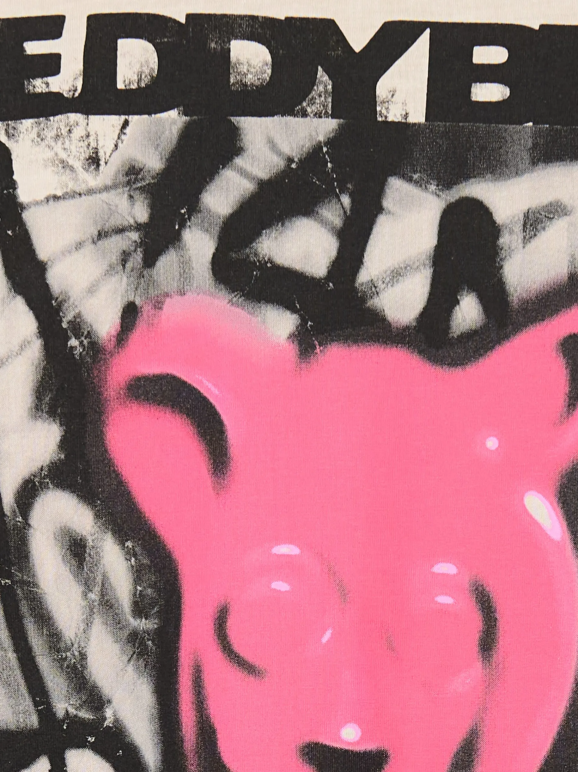 Damska koszulka o kroju oversize, uszyta z bawełnianej dzianiny. Z przodu duży nadruk misia w stylu graffiti. 100% bawełny krój oversize krótkie, swobodne rękawy delikatny efekt sprania oryginalny print Ten produkt należy do kolekcji UNISEX – zalecamy wybranie mniejszego rozmiaru niż zazwyczaj, jeśli chcesz uniknąć efektu oversize.