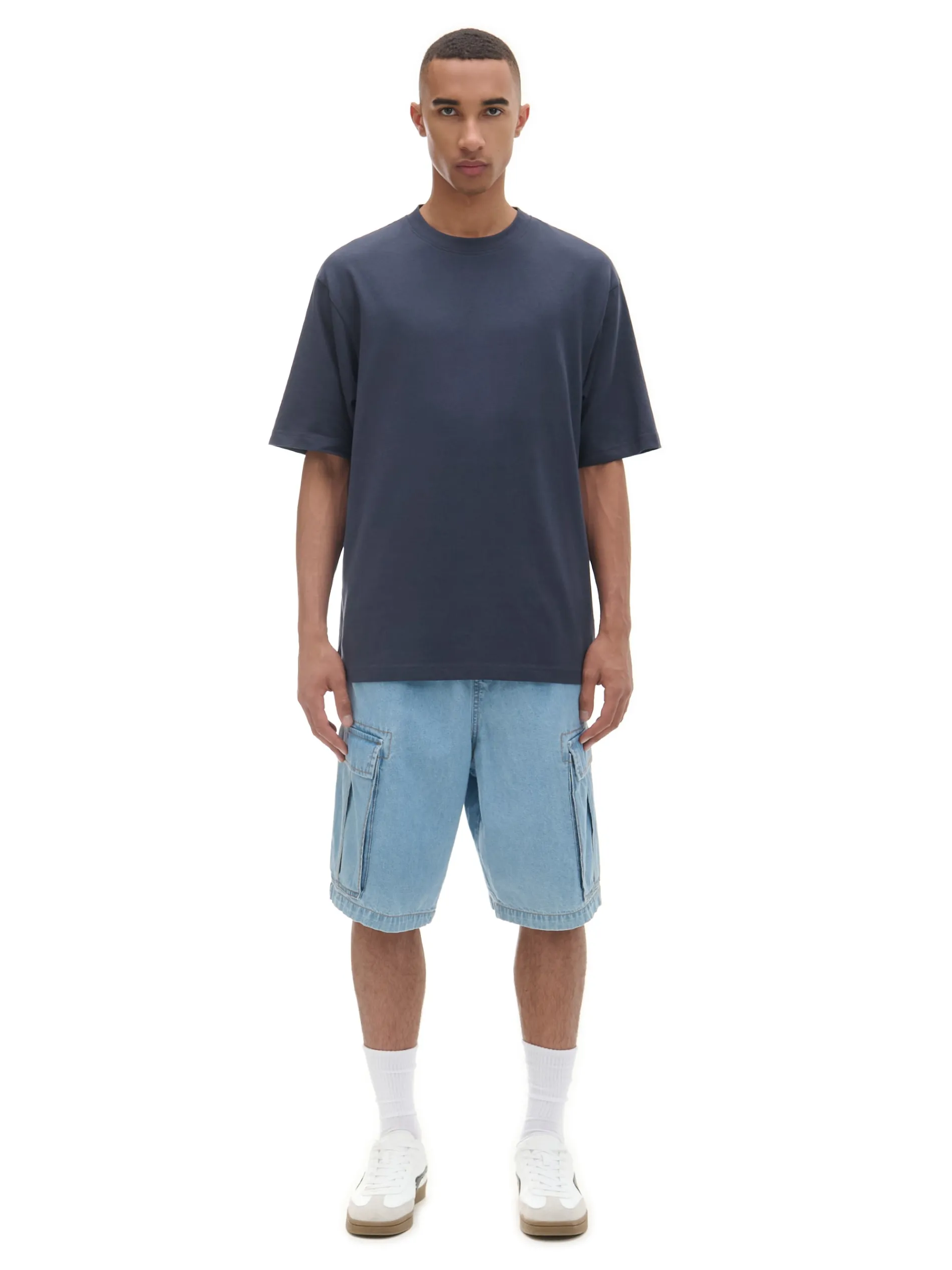 Ciemnoszara koszulka męska typu basic, uszyta z bawełnianej dzianiny. Krój comfort z obniżoną linią ramion, dostępne inne warianty kolorystyczne. 100% bawełny wygodny krój comfort krótkie, swobodne rękawy zabudowany dekolt uniwersalny basicowy styl Wzrost modela: 185 cm