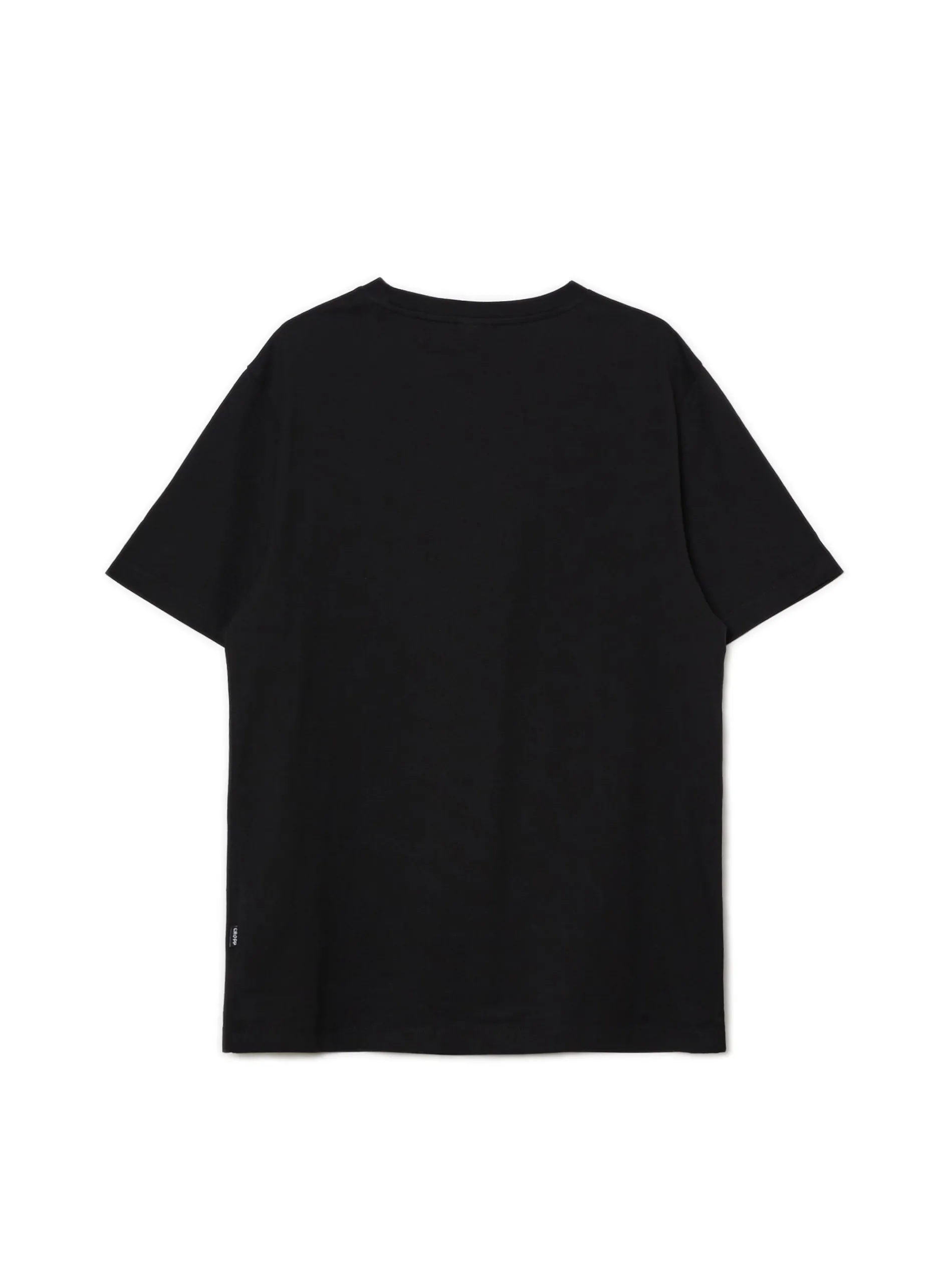 Czarna męska koszulka o kroju regular, uszyta z bawełny. Z przodu nadruk tekstowy CROPP. 100% bawełny regularny krój uniwersalny basicowy styl krótkie, swobodne rękawy Wzrost modela: 184 cm