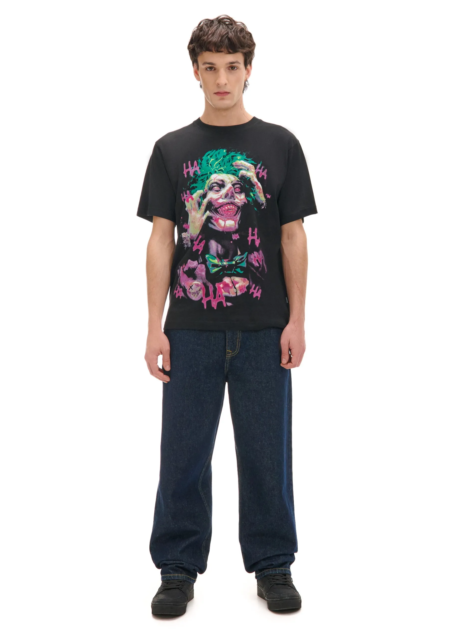 Męski T-shirt dla fanów serii Jokera i innych produkcji DC. Uszyty z bawełnianej, miękkiej w dotyku dzianiny o regularnym kroju. Na przodzie licencjonowana grafika z wizerunkiem Jokera. 100% bawełny regularny krój okrągły dekolt krótkie, swobodne rękawy nadruk z motywem z Batmana BATMAN and all related characters and elements © & TM DC. WB SHIELD: © & TM WBEI. (s24)