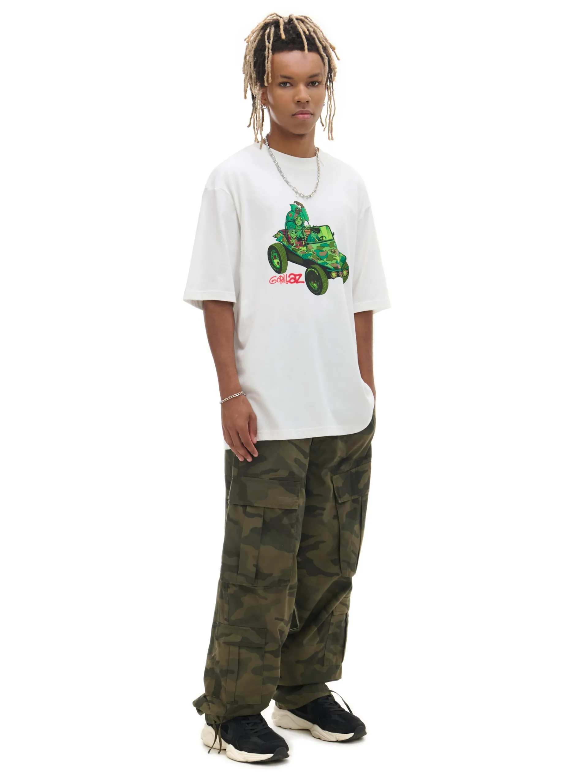Męski T-shirt o kroju comfort, uszyty w 100% z bawełny. Z przodu nadruk zespołu Gorillaz. © 2024 Gorillaz. All Rights Reserved