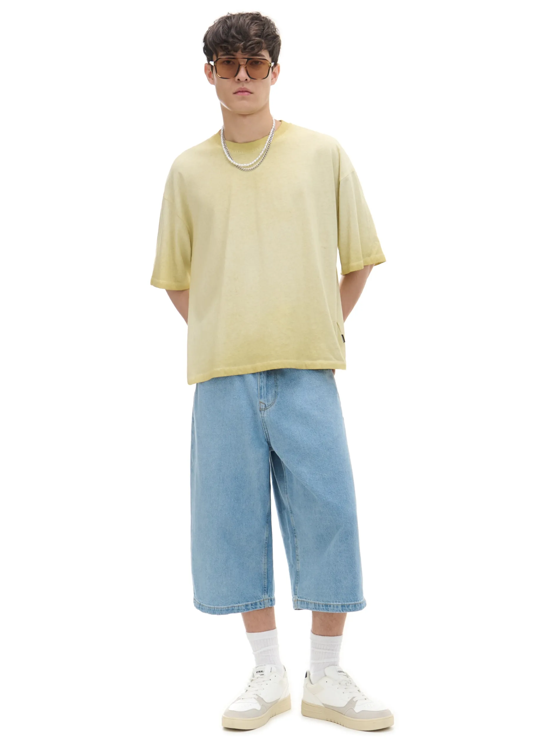Ta męska koszulka w letnim kolorze sprawdzi się podczas spontanicznych wypadów. Trust us! uszyta w 100% z bawełny krótkie rękawy krótki i luźny krój efekt sprania all over Model prezentuje produkt w rozmiarze M. Wzrost modela: 185 cm