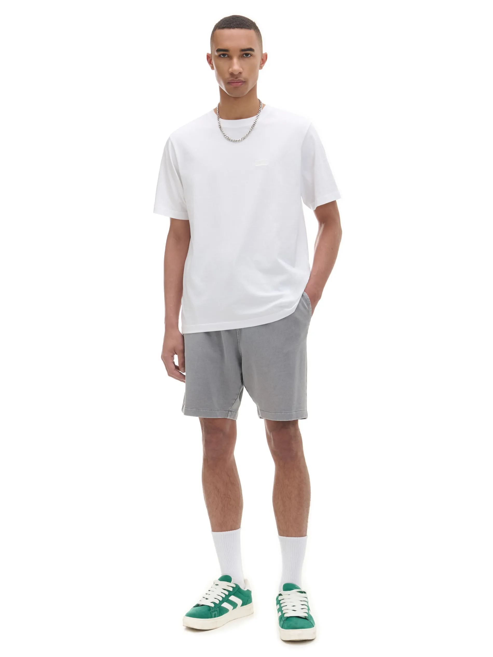 Męska koszulka w kolorze białym, uszyta w 100% z bawełny. regularny krój krótkie rękawy uniwersalny basicowy styl naszywka z napisem Cropp Wzrost modela: 185 cm
