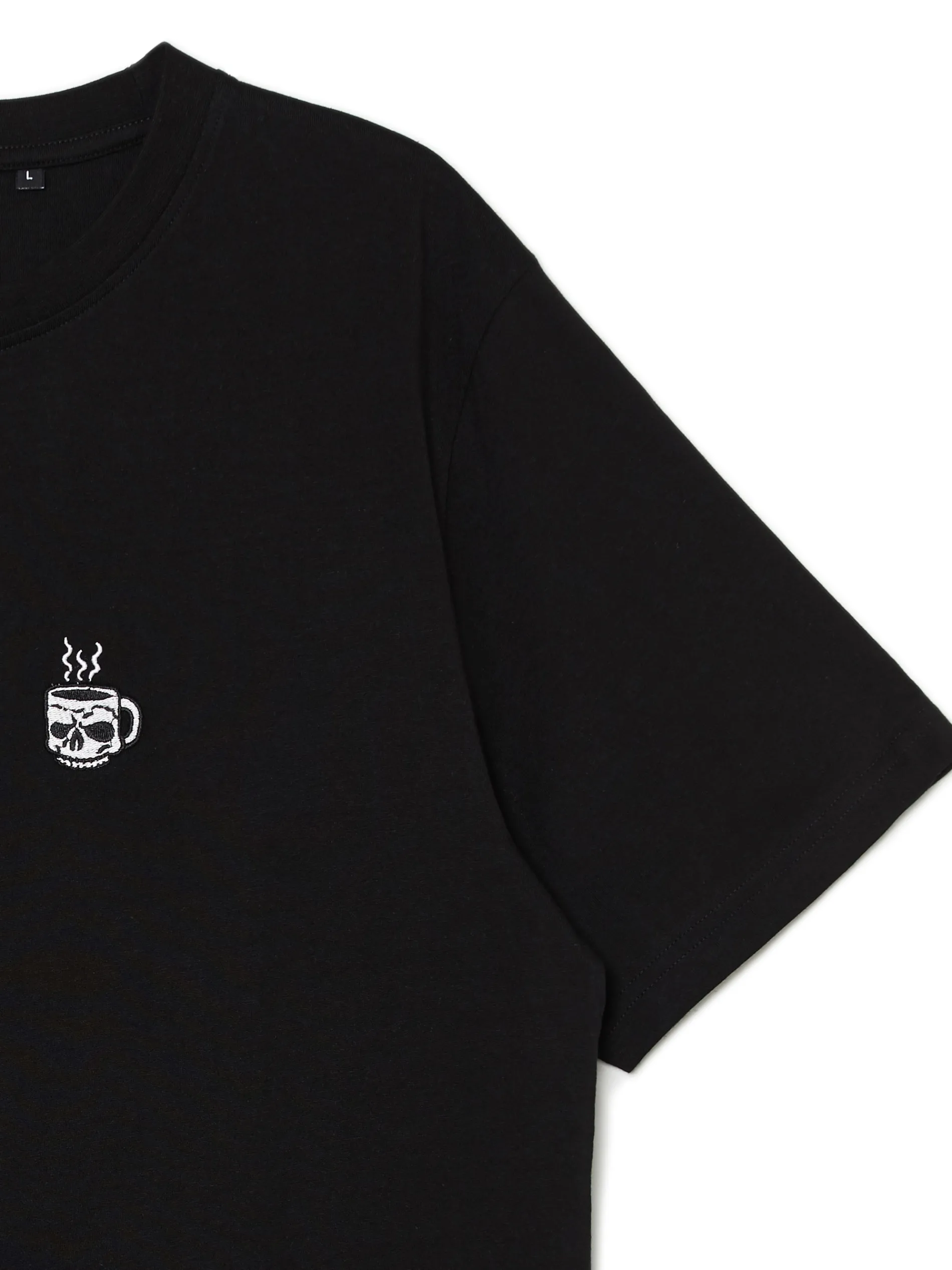 Czarny T-shirt męski o regularnym kroju, uszyty z bawełny.Krótkie rękawy. Z przodu haft.