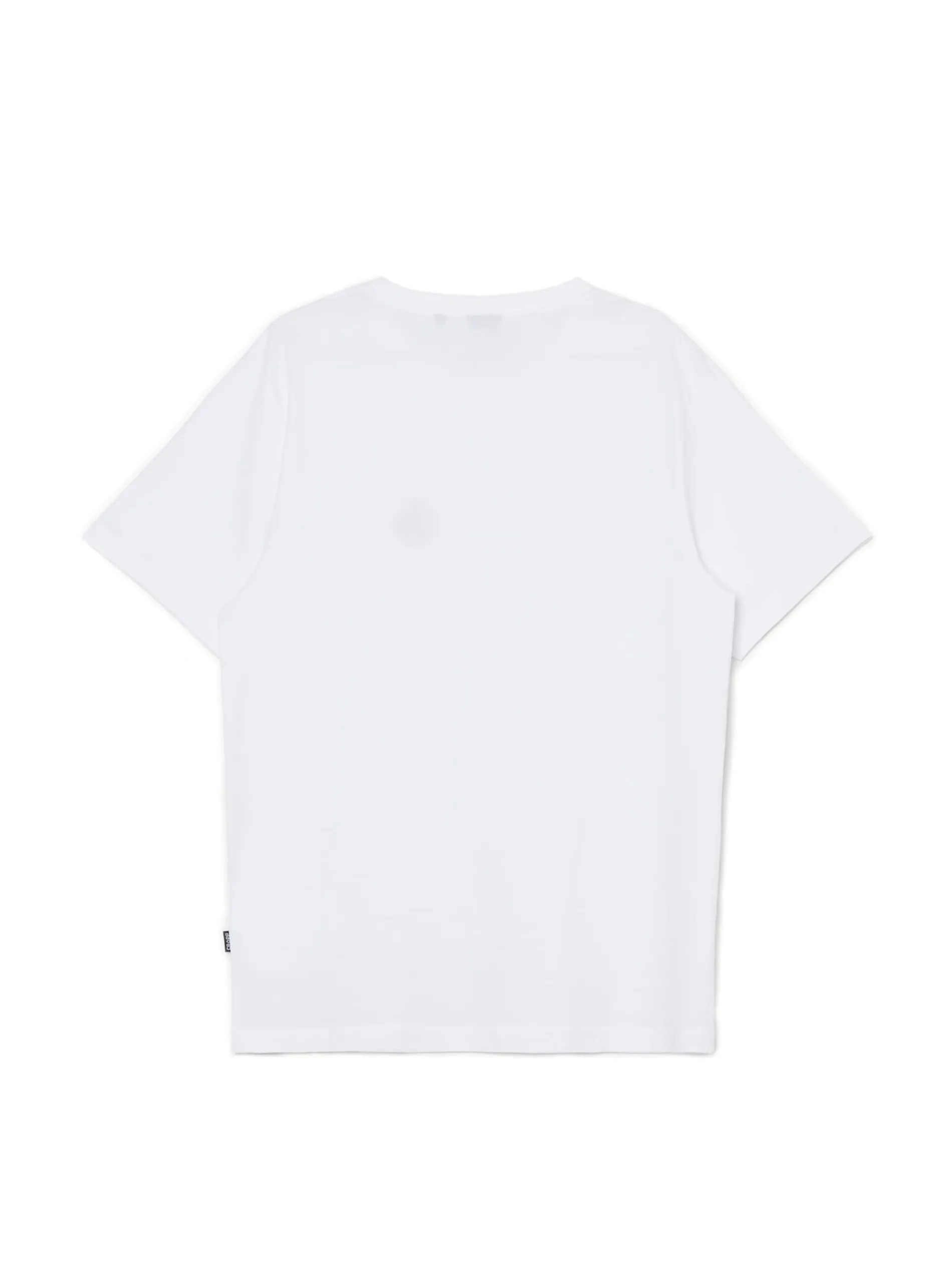 Biała koszulka męska o regularnym kroju, uszyta z bawełnianej dzianiny. Z przodu niewielk haft.