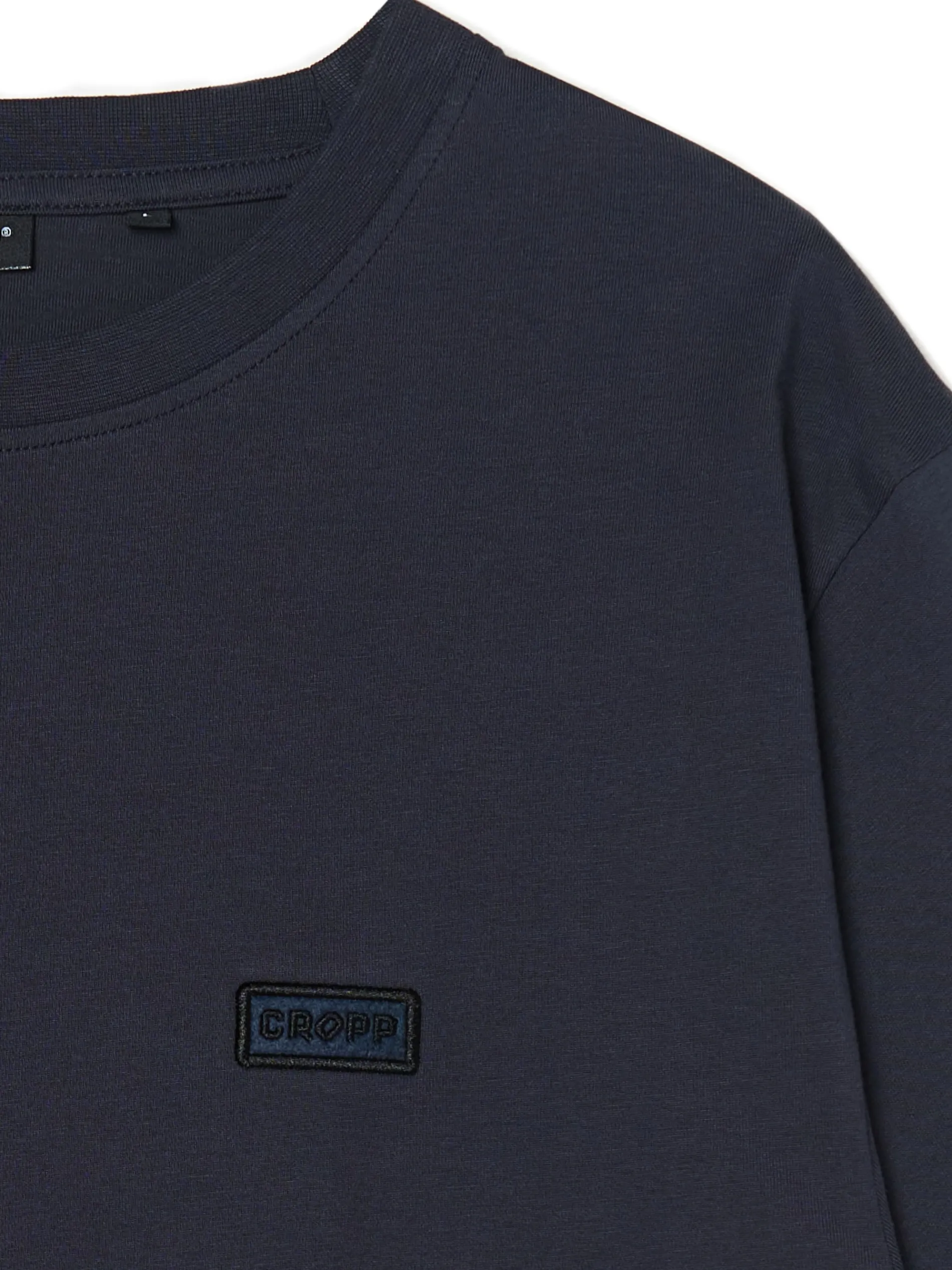 Męska koszulka w kolorze szarym, uszyta w 100% z bawełny. regularny krój krótkie rękawy uniwersalny basicowy styl naszywka z napisem Cropp