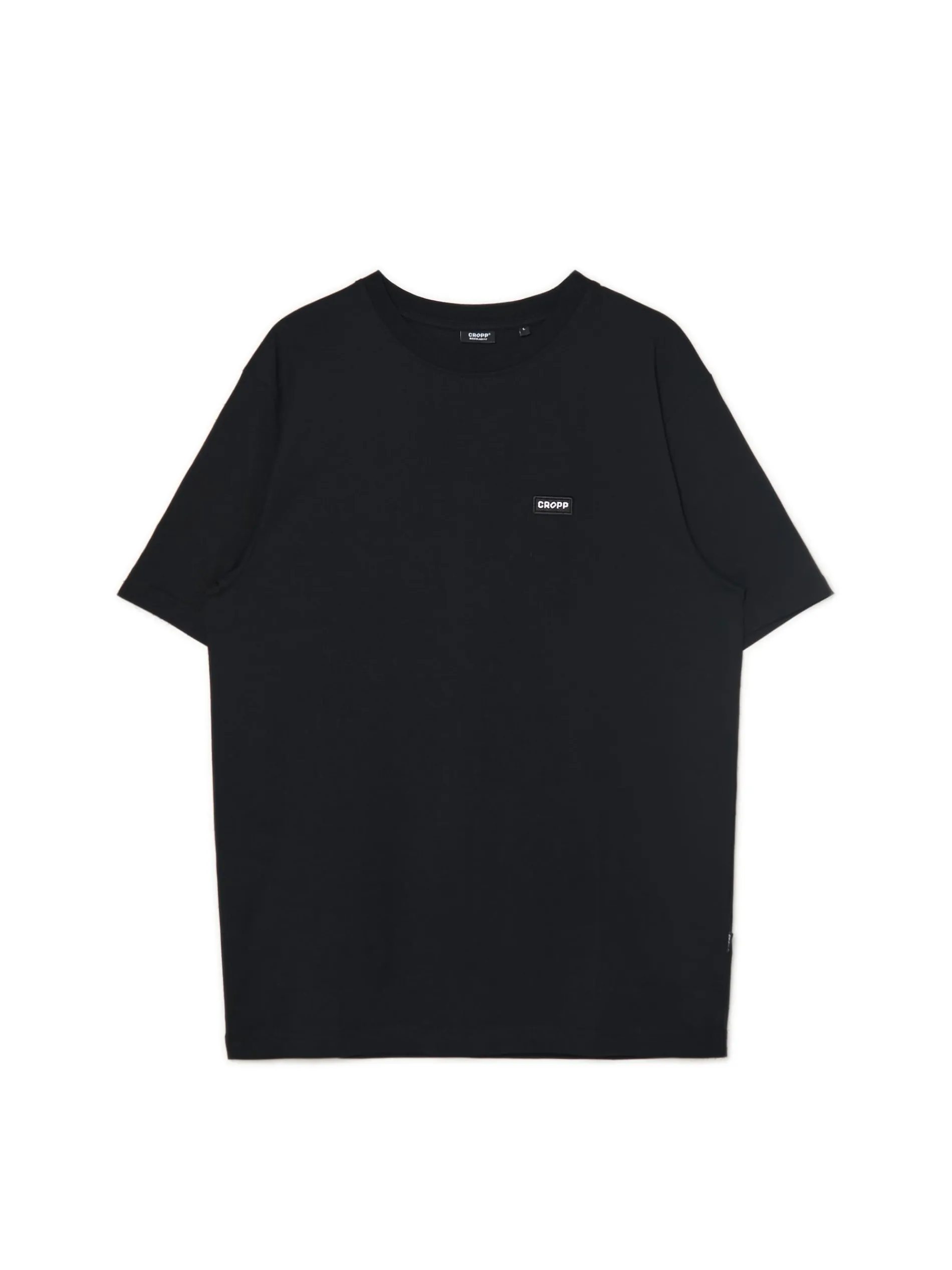 Męska koszulka w kolorze czarnym, uszyta w 100% z bawełny. regularny krój krótkie rękawy uniwersalny basicowy styl naszywka z napisem Cropp Wzrost modela: 185 cm