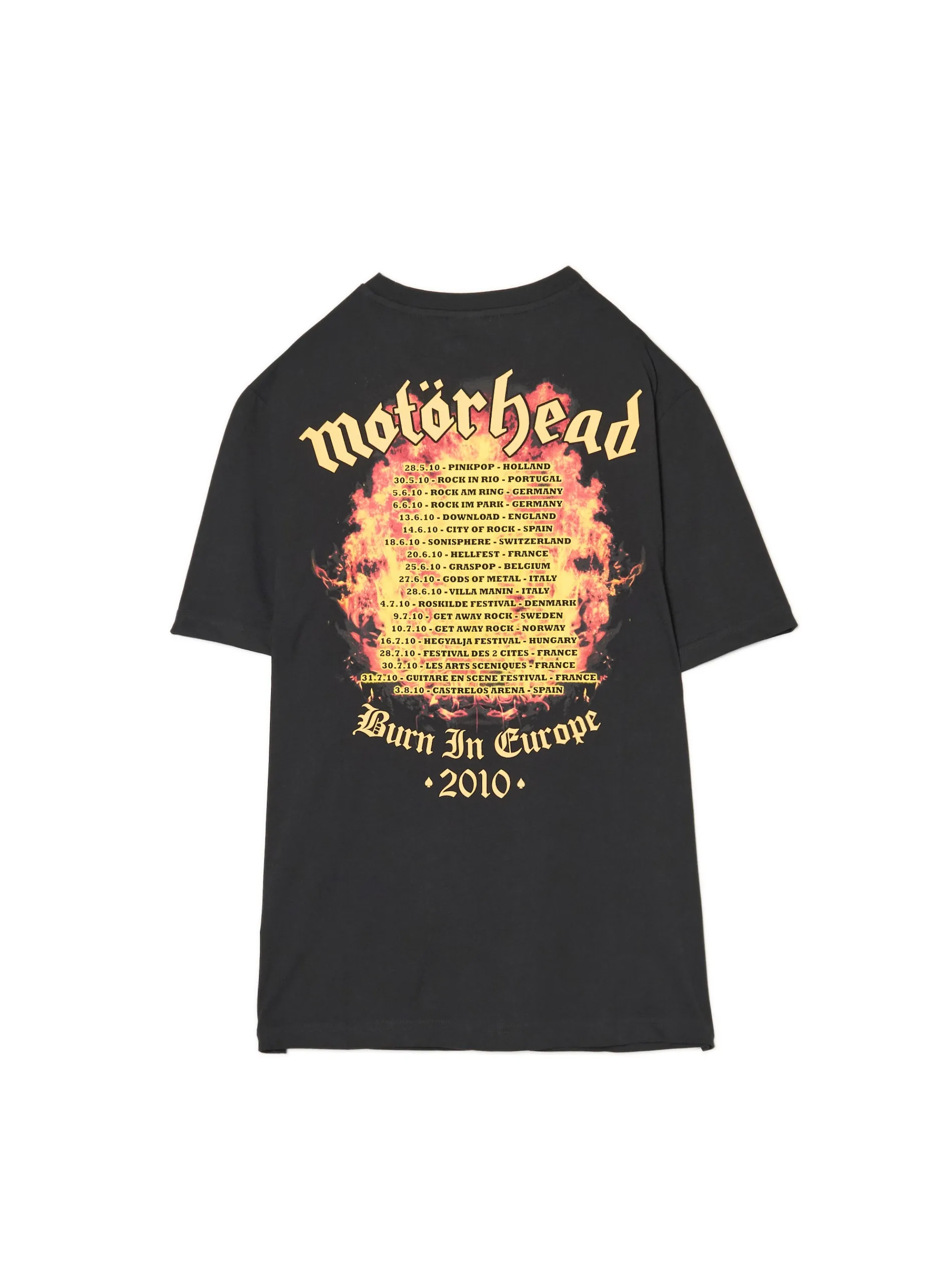 Męska koszulka z krótkim rękawem uszyta z bawełnianej dzianiny w kolorze czarnym. Nadruk po obu stronach z motywem brytyjskiego zespołu Motörhead. Na plecach dokładna rozpiska ich trasy koncertowej po Europie z 2010 roku. 100% bawełny regularny krój okrągły dekolt z lamówką krótkie, swobodne rękawy nadruk z muzycznym motywem Ten produkt należy do kolekcji UNISEX – zalecamy wybranie mniejszego rozmiaru niż zazwyczaj, jeśli chcesz uniknąć efektu oversize. © 2024 Motörhead. Under license to Global Merchandising Services Ltd. All rights reserved.