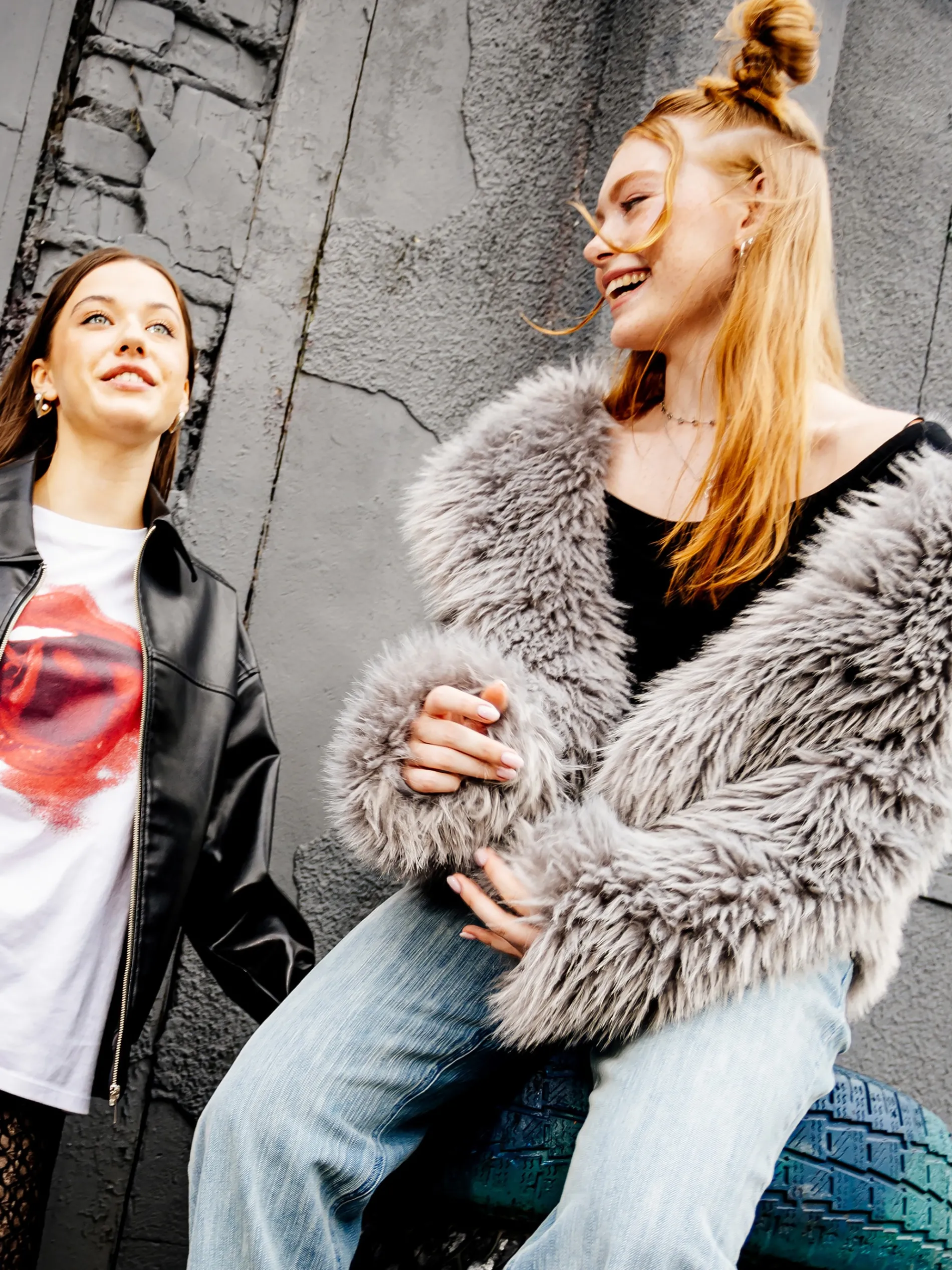Cropp Kożuszki, Futerka|Kurtki, Płaszcze*Szara kurtka z imitacji futra