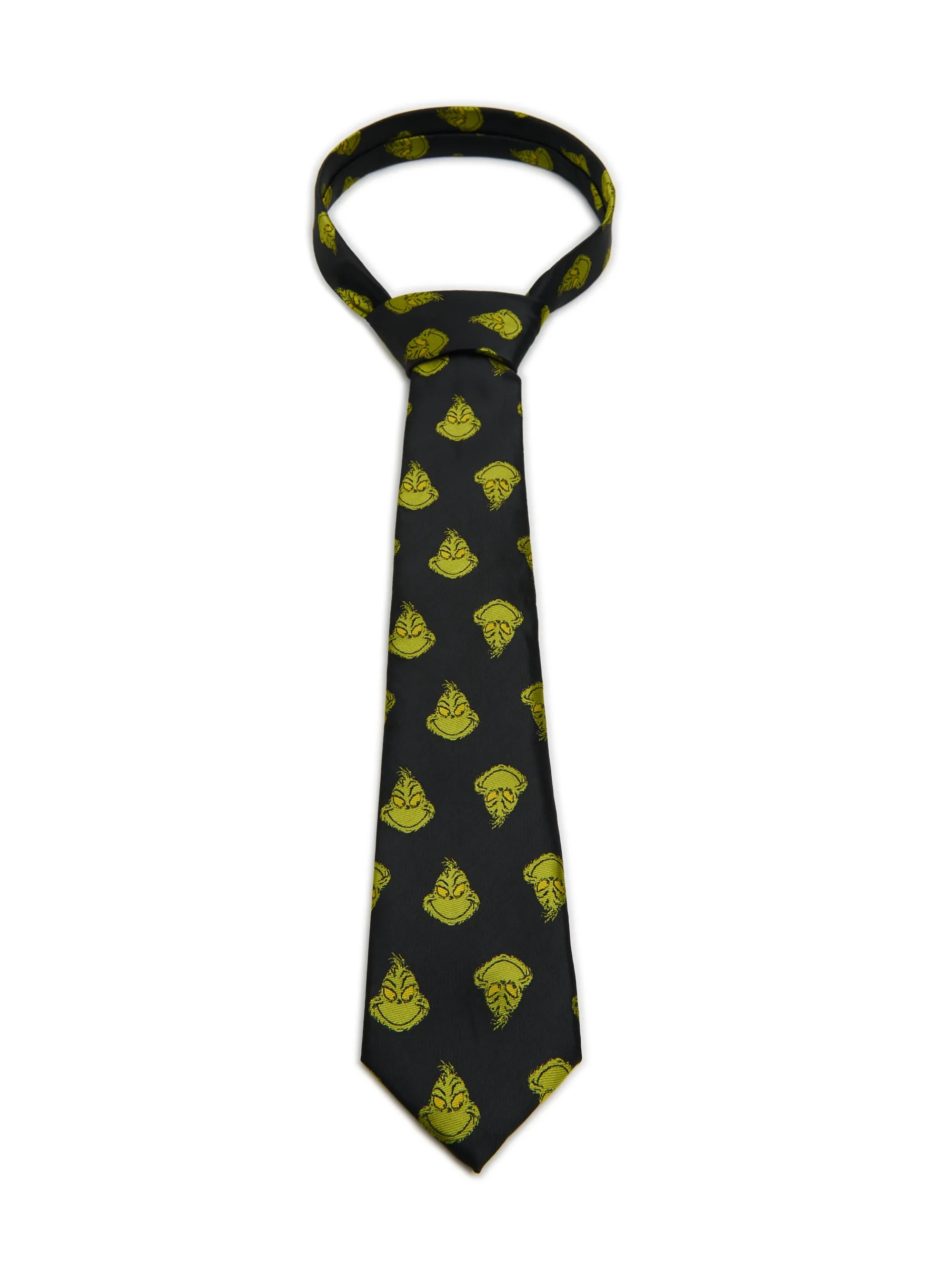 Męski krawat w klasycznym, czarnym kolorze z nadrukami all over twarzy Grincha. Jeśli szukałeś odpowiedniego dodatku do stylizacji świątecznych, to łap ten item! Idealny dodatek do koszul z nadrukiem Grincha: 252AT-55X i 264AT-59X . TM & © 2024 Dr. Seuss Enterprises, L.P. All Rights Reserved