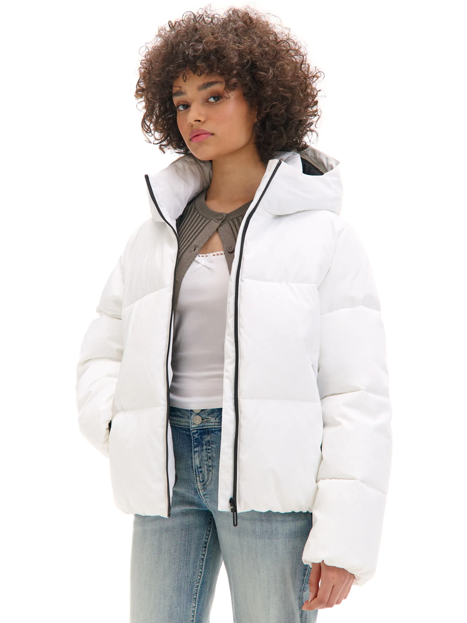 Cropp Kurtki, Płaszcze*Biała pikowana kurtka z kapturem