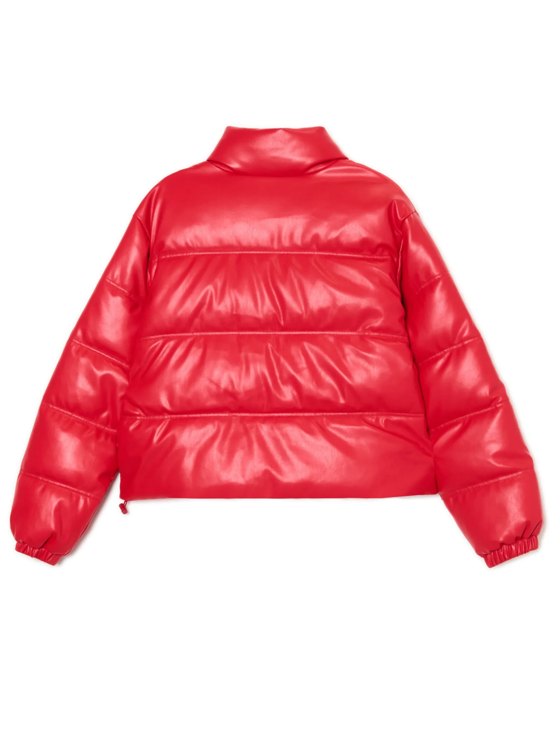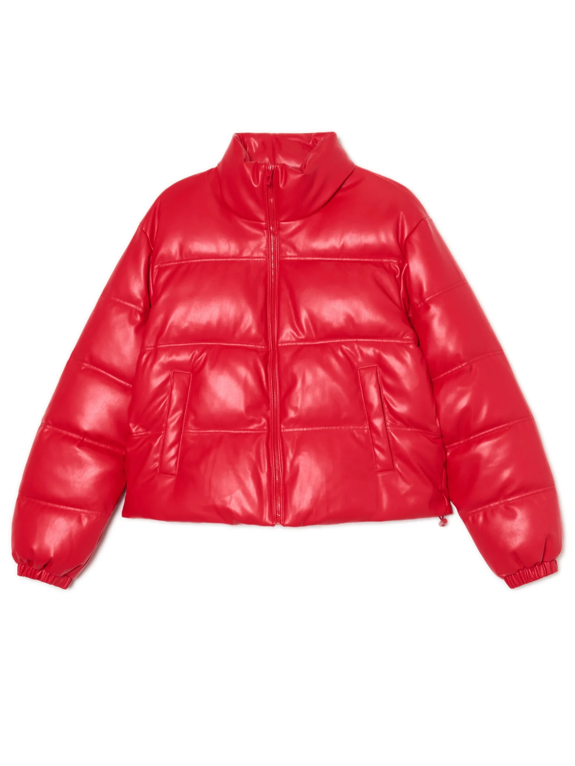 Cropp Kurtki, Płaszcze*Czerwona kurtka puffer z efektem skóry