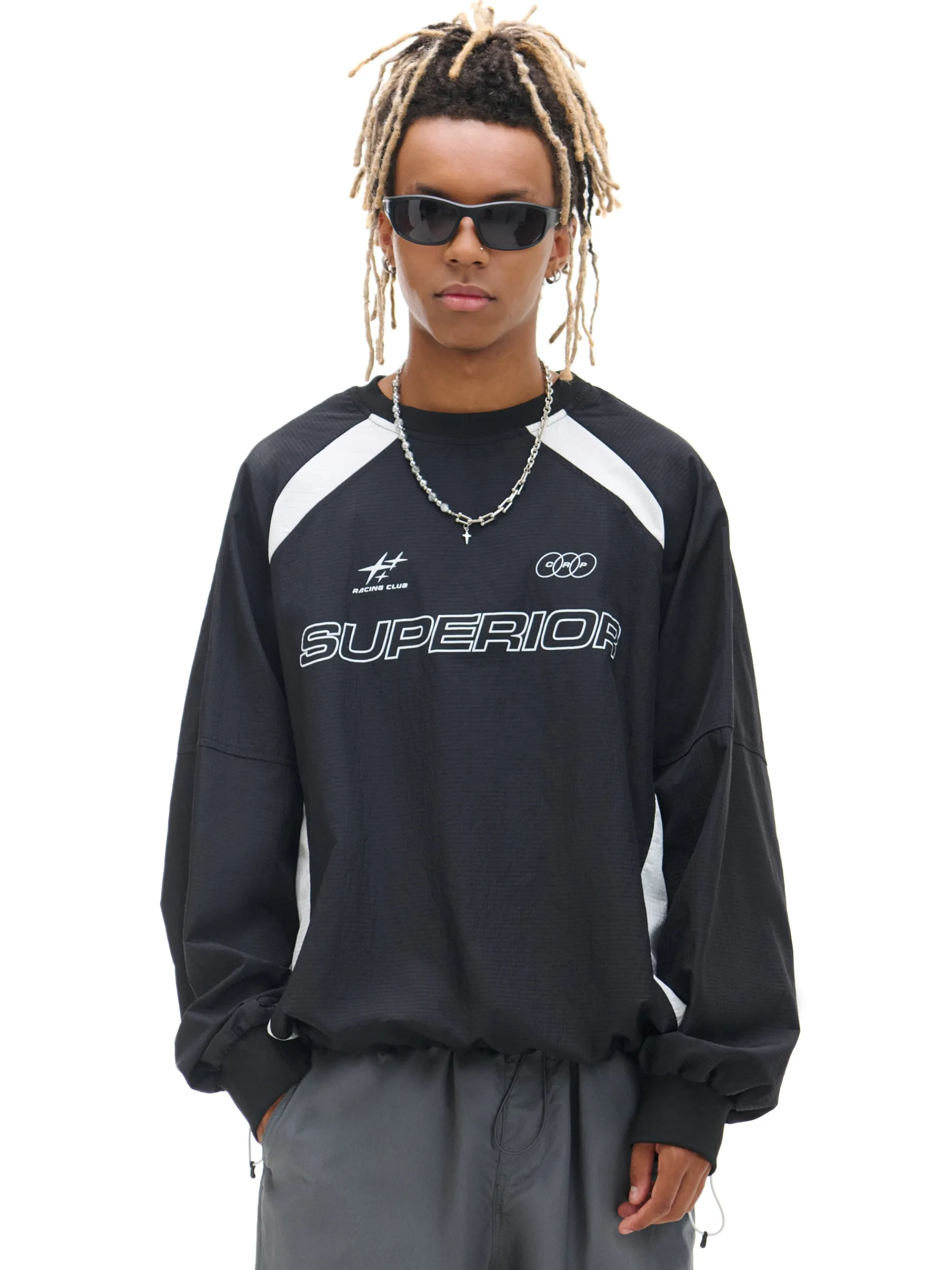 Męska kurtka w fasonie bluzy bez kaptura, uszyta z trwałej tkaniny ripstop. Dół regulowany elastyczną gumką ze stopperami. Wygodny item i do tego świetnie się prezentuje! lekki materiał regularny krój półokrągły dekolt wykończony ściągaczem dół i rękawy wykończone prążkowanym ściągaczem ściągacz tunelowy ze stoperami na dole kontrastowe nadruki PROTECTION LEVEL 1rn rnKurtka uszyta z tkaniny, której właściwości zapewnią Ci ochronę przed wiatrem. Możesz ją nosić jako lekkie okrycie wierzchnie i łączyć z cieplejszymi ubraniami.