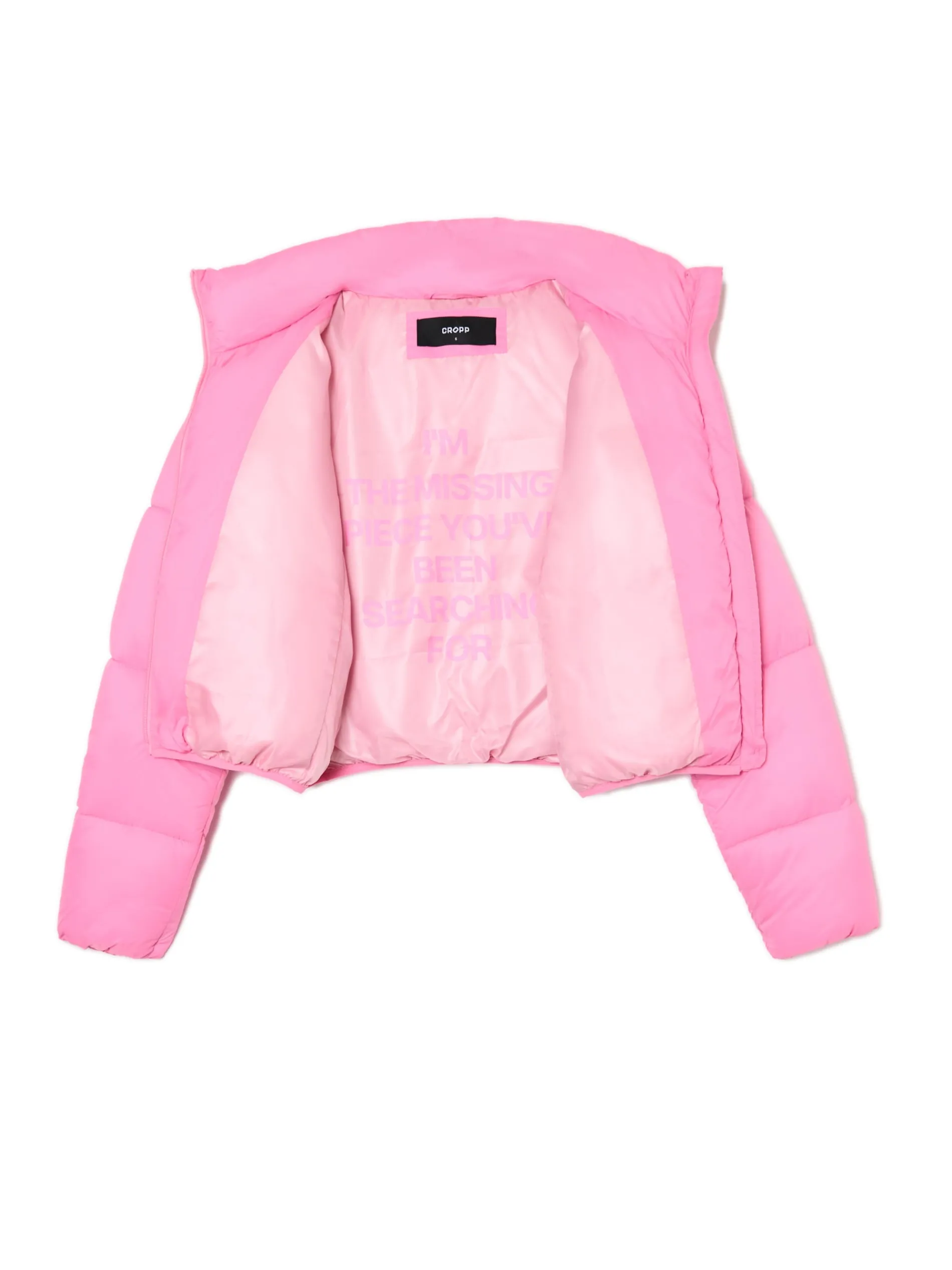 Pikowana damska kurtka typu puffer, uszyta z tkaniny w kolorze różowym. Wewnątrz ocieplenie z recyklingowanego puchu syntetycznego. Ten outerwear ogrzeje Cię w sezonie zimowym! basicowa kurtka typu puffer zapinana na zamek na całej długości wewnątrz wykończenie na podszewce ocieplenie wysoki kołnierz szerokie rękawy zakończone gumką kieszenie boczne z zamkami zapięcia z wygodnymi pullerami