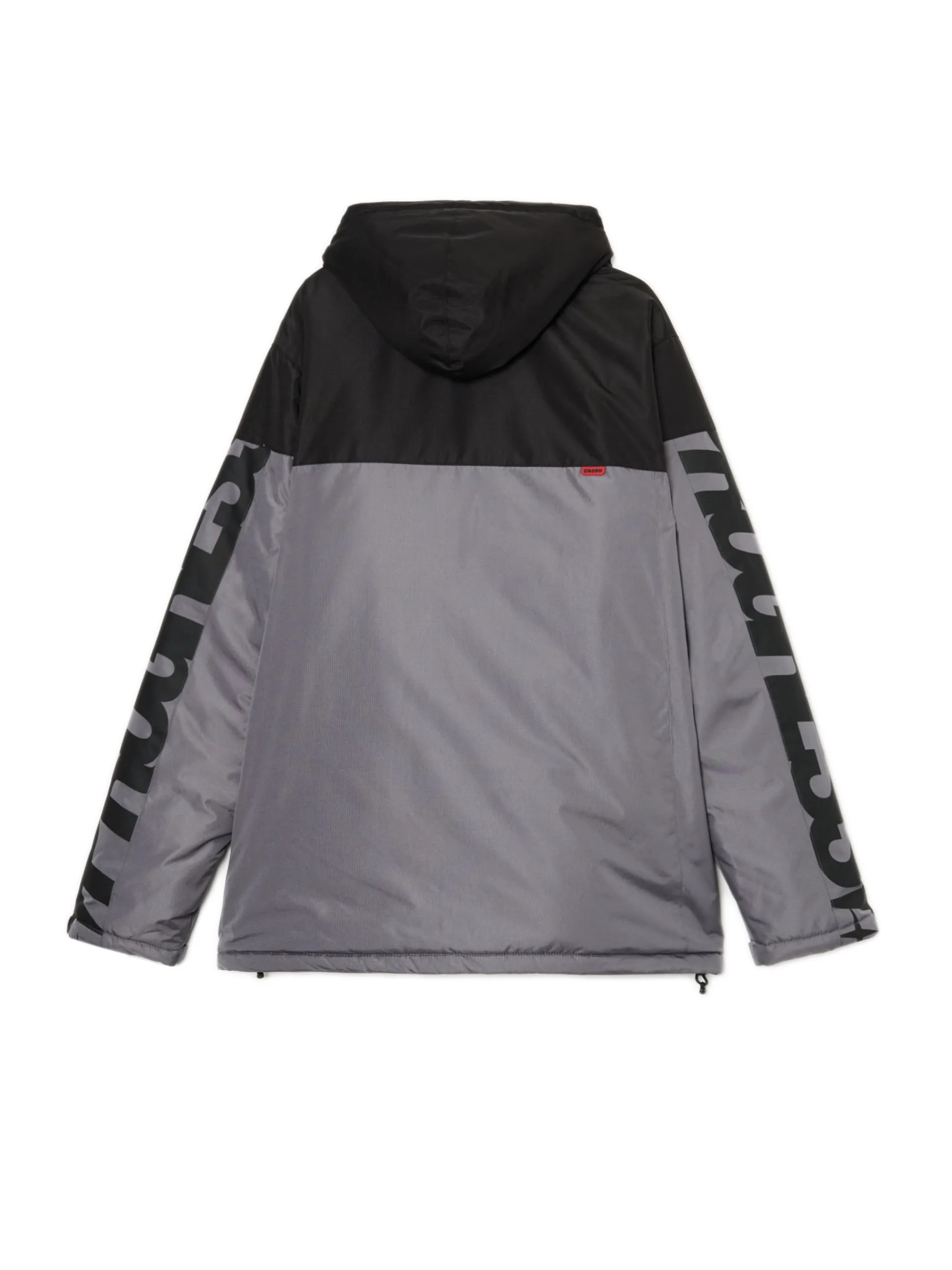 Dwukolorowa męska kurtka z kapturem uszyta z trwałej tkaniny rip-stop o drobnej kratce. Wewnątrz miękka, polarowa wyściółka, która ogrzeje Cię w trakcie mrozów. Dodatkowo praktyczne kieszenie na Twoje itemki. Wejdź w zimę z naszymi outerwearami! regularny krój miękka polarowa podszewka zapinana na zamek na całej długości szeroki kaptur z regulacją obwodu boczne kieszenie z zamkami wewnętrzna kieszeń zapinana na rzep regulacja dołu za pomocą gumek ze stoperami ozdobne pullery tekstowe nadruki z przodu i na rękawach naszywka z przodu naszywka Cropp PROTECTION LEVEL 4rn Kurtka uszyta z tkaniny z grubym wypełnieniem, której właściwości zapewnią Ci ochronę przed bardzo niskimi temperaturami. Idealna na sezon zimowy i mroźne dni.