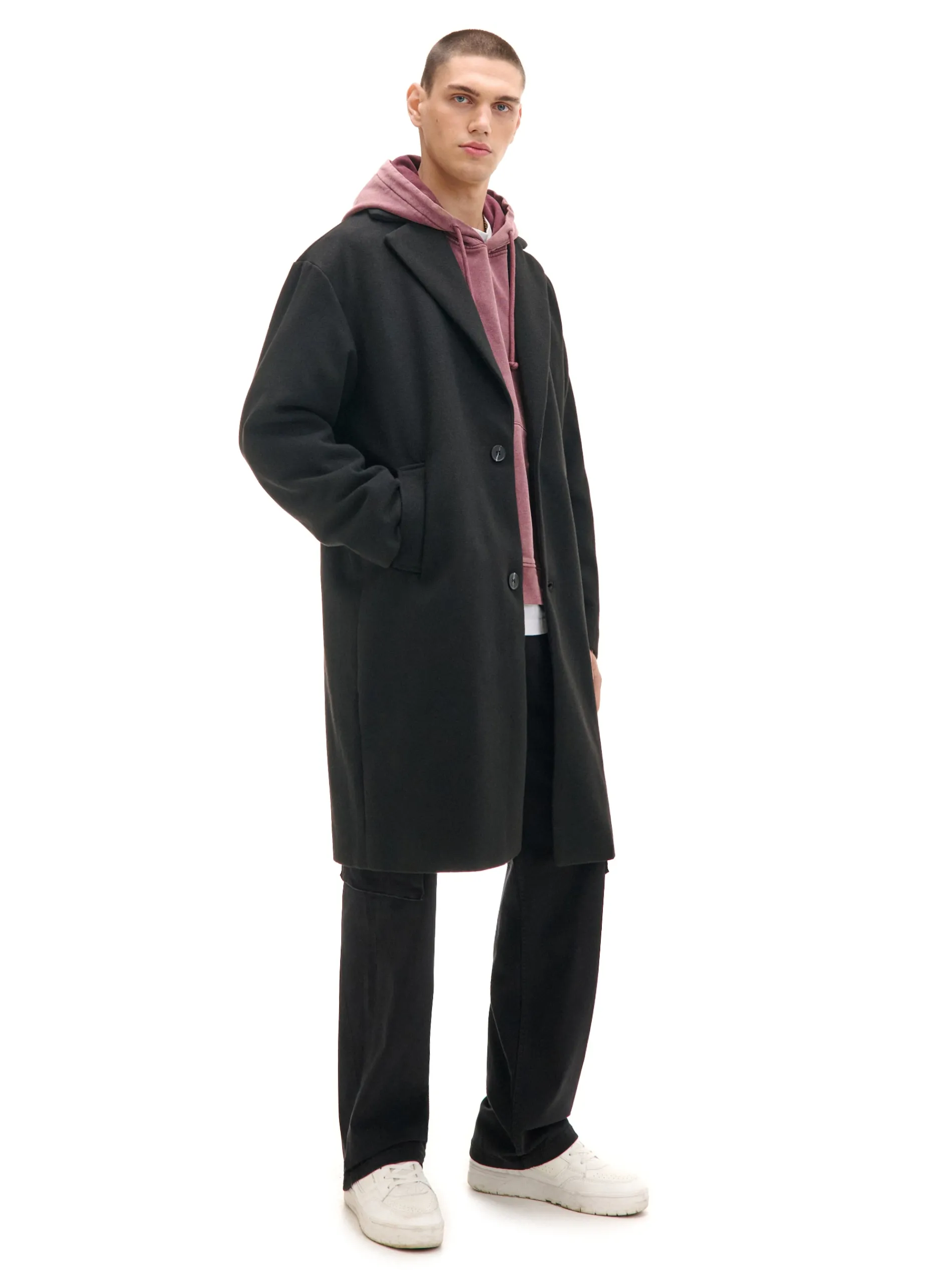 Męski płaszcz typu dyplomatka uszyty z trwałej tkaniny z podszewką wewnątrz i delikatnym wypełnieniem, które zapewnia ciepło. Na całej powierzchni gładki materiał w czarnym kolorze. Łap ten casual na sezon przejściowy! regularny krój wewnątrz lekkie ocieplenie i podszewka zapięcie na dwa guziki wykładany kołnierz długie, proste rękawy otwarte kieszenie boczne PROTECTION LEVEL 3 Płaszcz uszyty z tkaniny z większym ociepleniem, której właściwości zapewnią Ci nie tylko ochronę przed wiatrem i deszczem, ale też niskimi temperaturami.