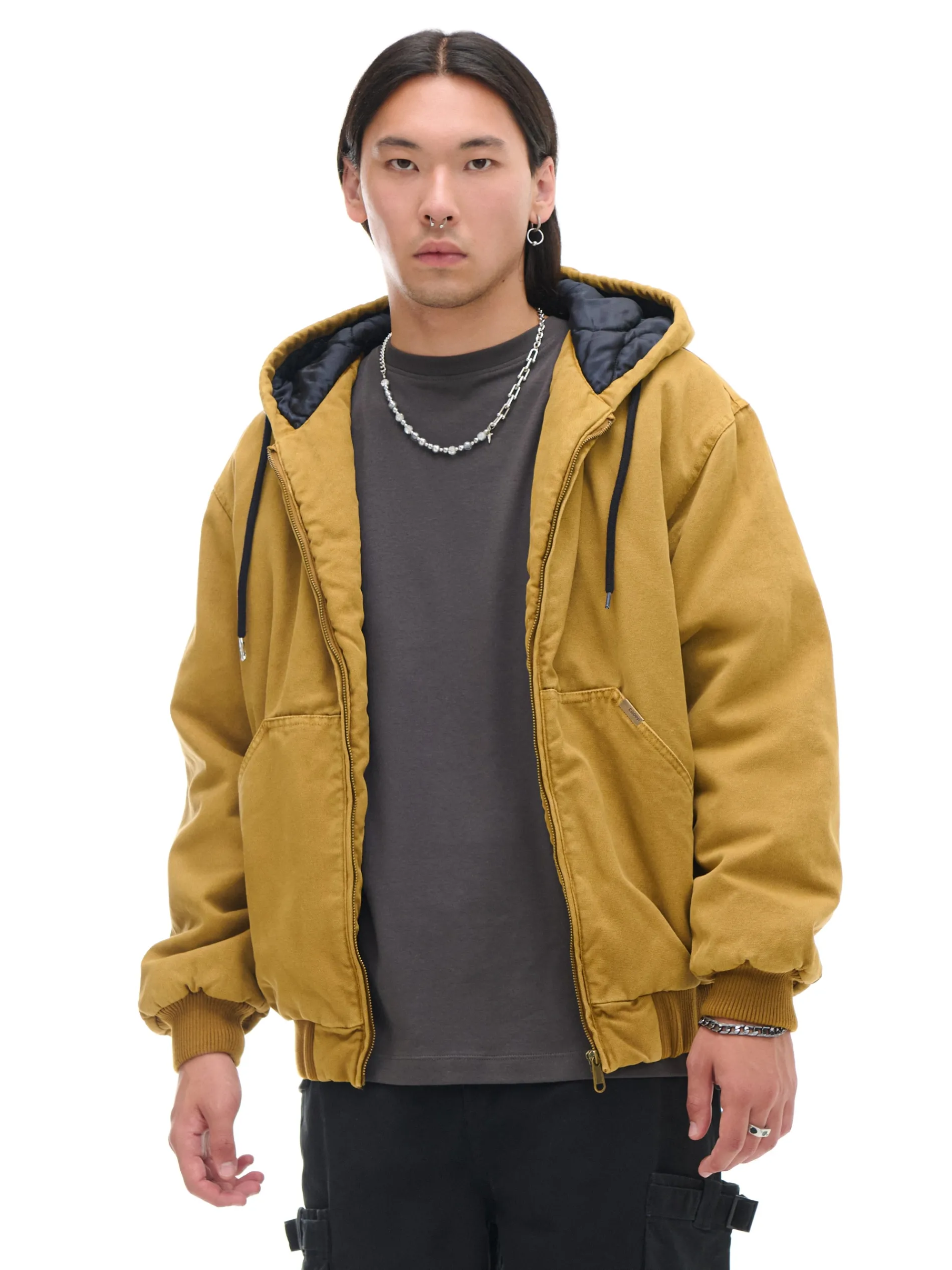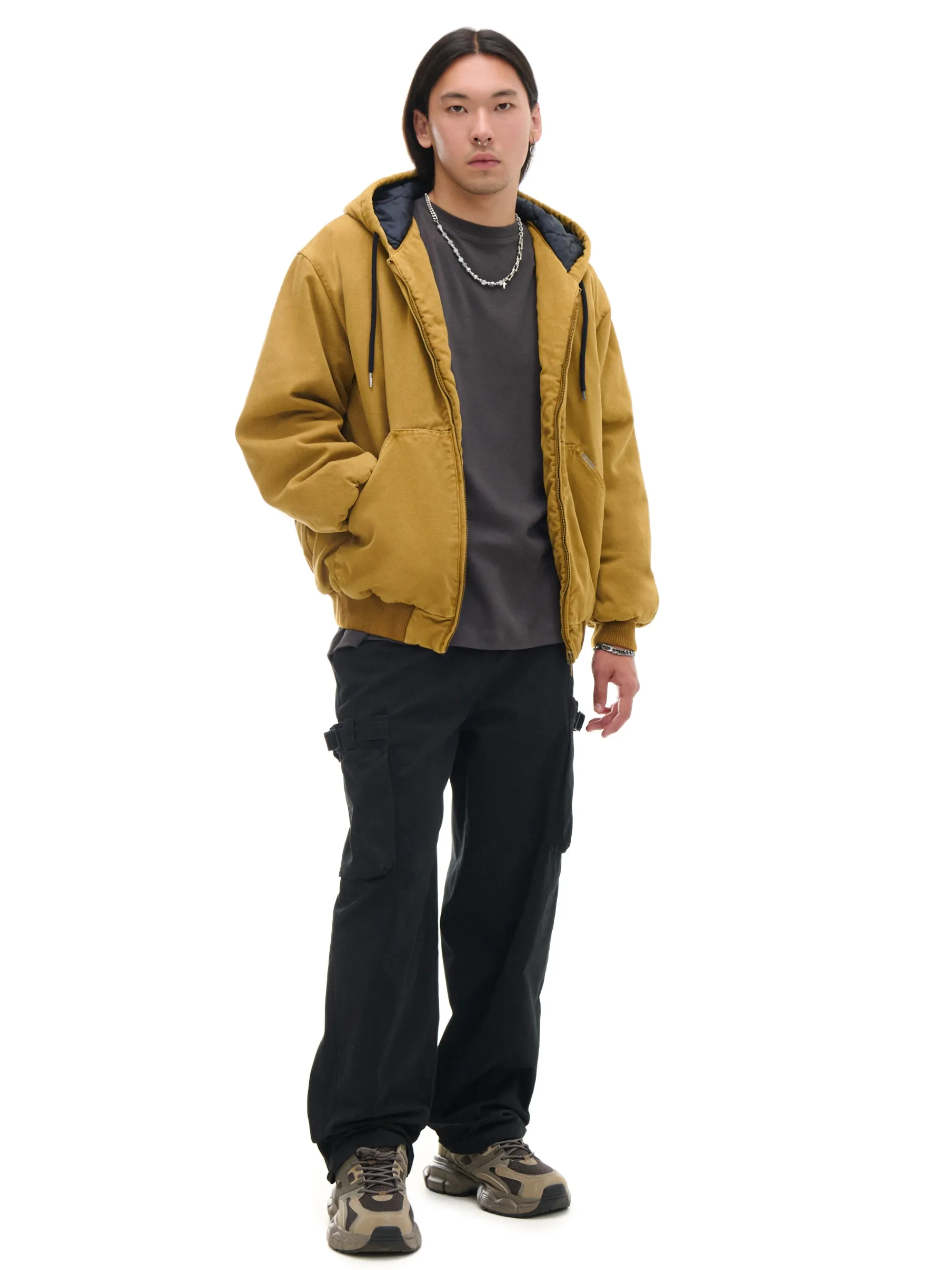 Męska kurtka typu bomber o bluzowym kroju, uszyta z bawełnianej tkaniny z efektem sprania na całości. Ciepłe wypełnienie i pikowane wnętrze to idealne rozwiązanie na sezon przejściowy. 100% bawełny swobodny, luźny krój wewnątrz pikowana podszewka lekkie ocieplenie zapięcie na metalowy zamek obszerny kaptur z troczkami długie rękawy wykończone elastycznym ściągaczem dół wykończony delikatnym, prążkowanym ściągaczem dwie kieszenie po bokach wewnętrzna kieszeń na rzep PROTECTION LEVEL 3rn Kurtka uszyta z tkaniny z większym ociepleniem, której właściwości zapewnią Ci nie tylko ochronę przed wiatrem i deszczem, ale też niskimi temperaturami.