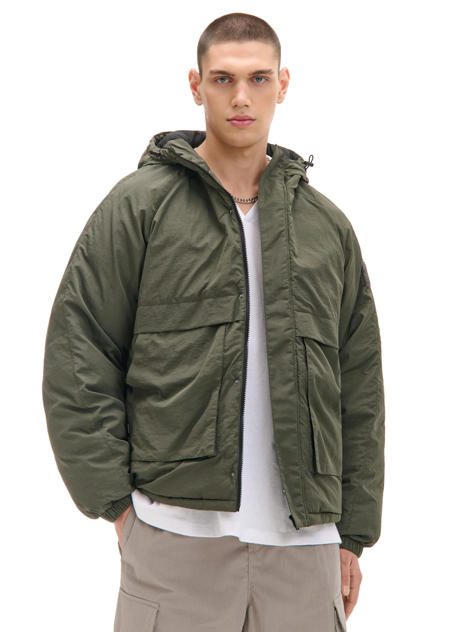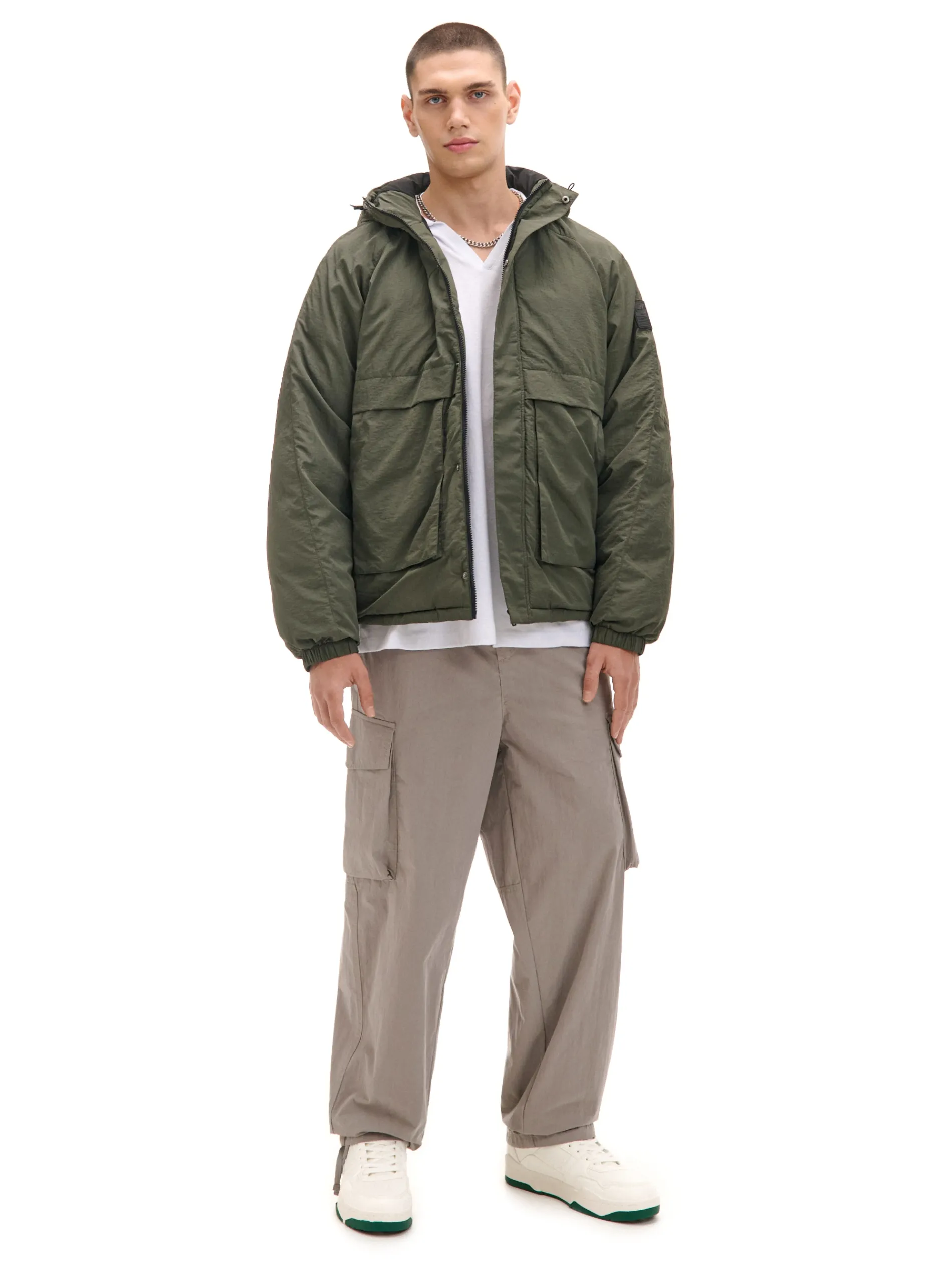 Kurtka z kapturem o swobodnym fasonie, wykonana z kreszowanej tkaniny z delikatnym ociepleniem. Raglanowa kontrukcja zapewnia swobodę ruchów, a kieszenie z zatrzaskami – komfort przechowywania swoich rzeczy. Świetny casual na sezon przejściowy. uszyta z gładkiej tkaniny prosty krój wewnątrz pikowana podszewka lekkie ocieplenie kurtka zapinana na zamek i zatrzaski praktyczny kaptur ze stójką, regulowany gumką ze stoperami swobodne, raglanowe rękawy dwie duże, funkcyjne kieszenie z zapięciem na napy wewnątrz kieszeń zapinana na rzep ściągacz tunelowy ze stoperami na dole PROTECTION LEVEL 3rn Kurtka uszyta z tkaniny z większym ociepleniem, której właściwości zapewnią Ci nie tylko ochronę przed wiatrem i deszczem, ale też niskimi temperaturami.
