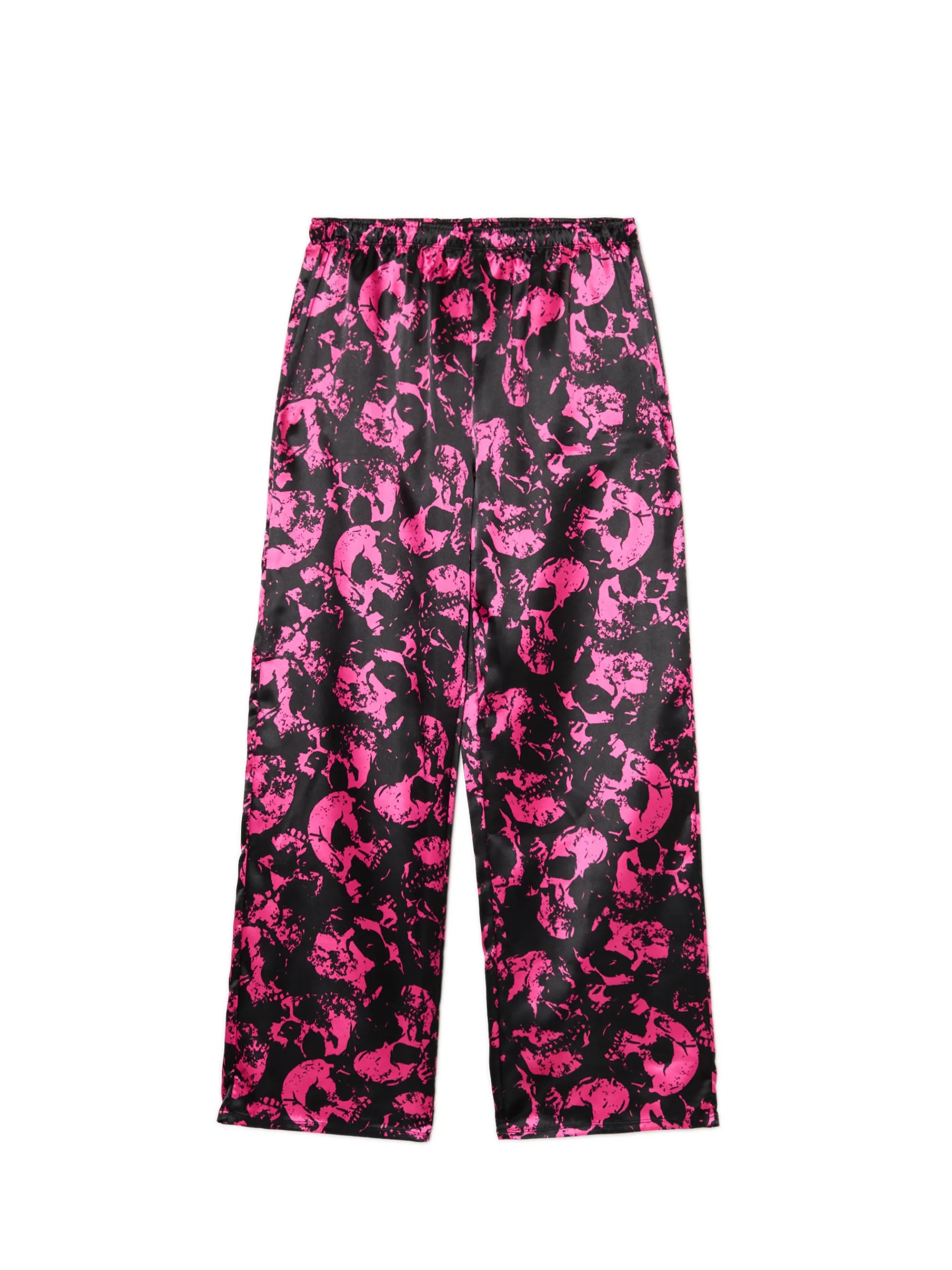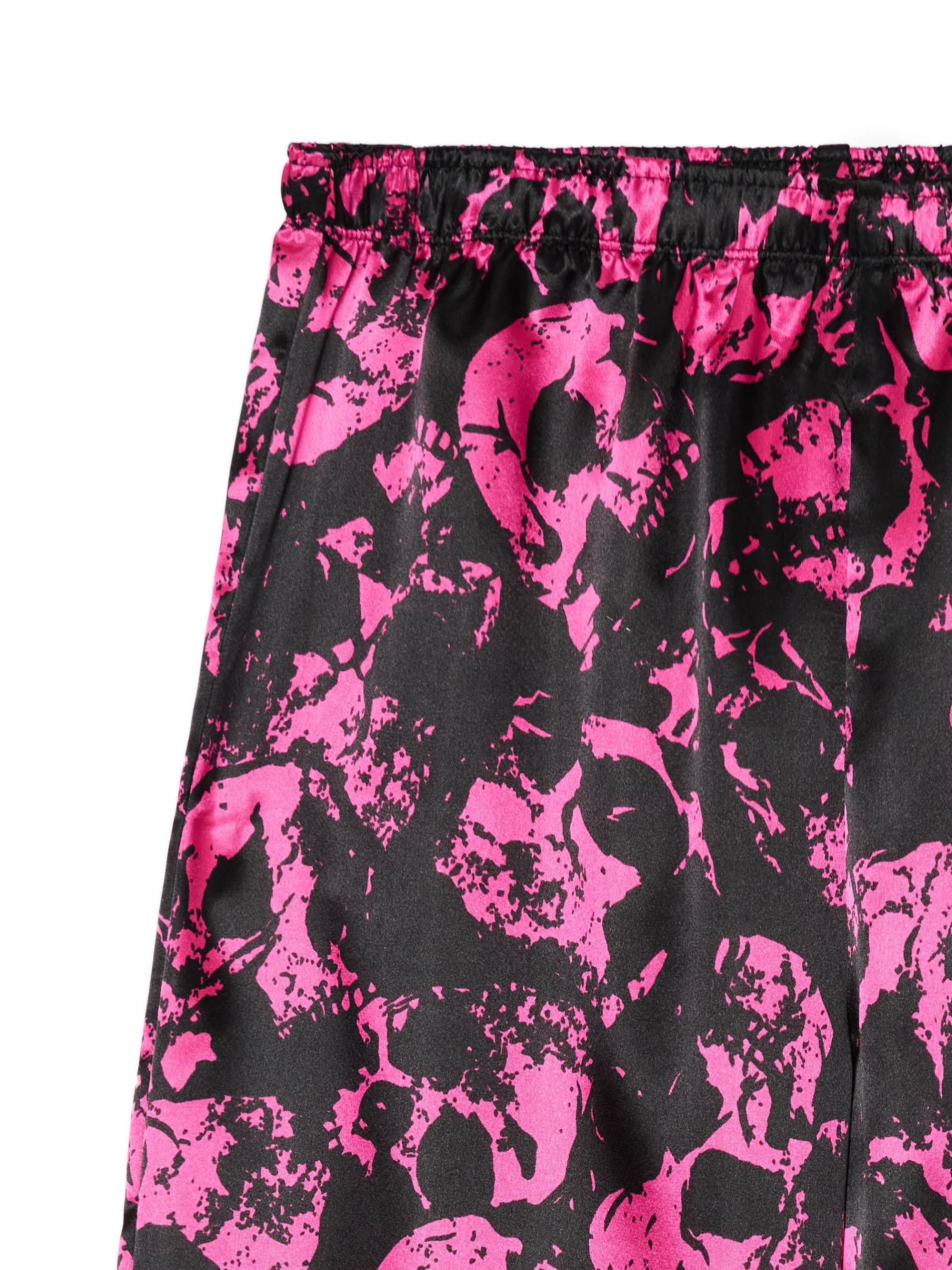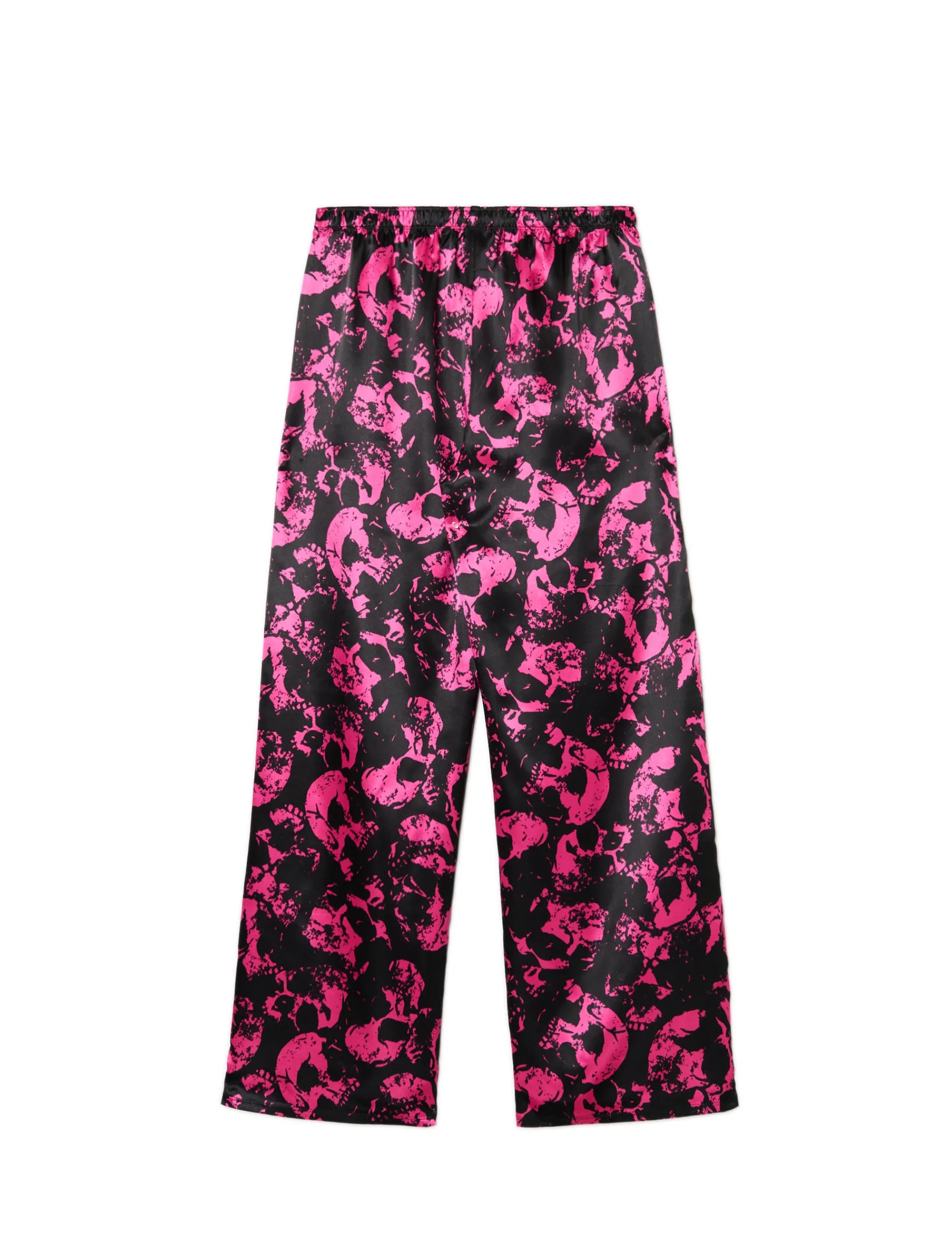 Dwuczęściowy damski zestaw do spania złożony z dopasowanego topu na ramiączkach i spodni z szerokimi nogawkami. Herbata, koc i ten set, czyli must have wieczornego chillowania na kanapie. dzianina z dodatkiem elastycznych włókien koszulka typu crop o dopasowanym kroju na ramiączkach spodnie o swobodnym kroju elastyczna guma w pasie nadruk z motywem czaszki