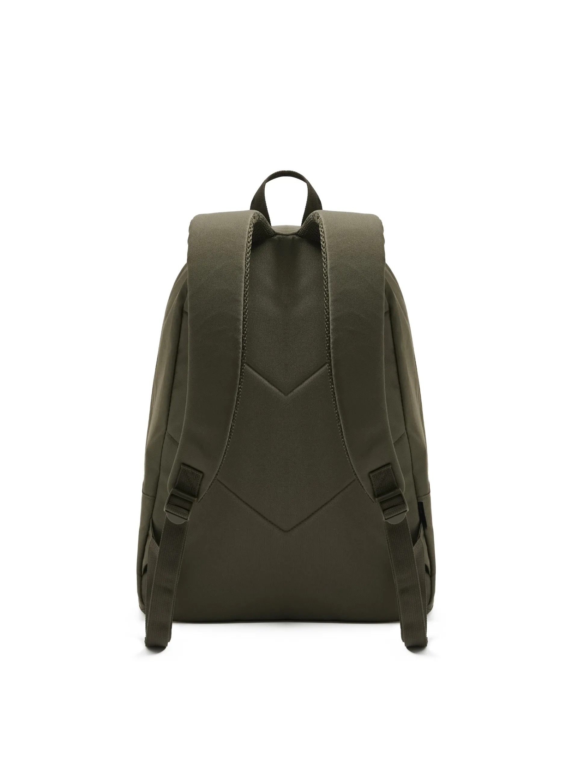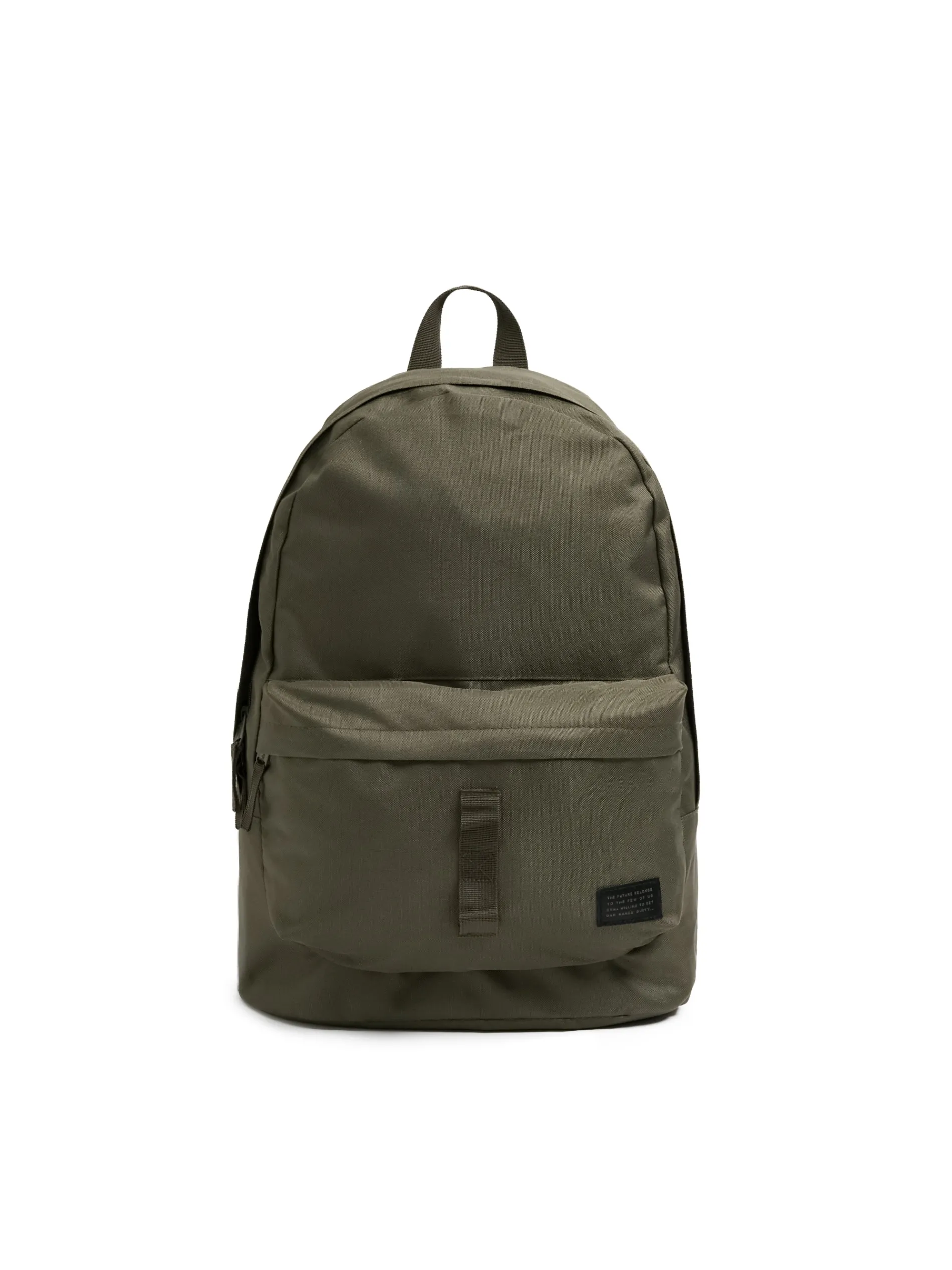 Męski plecak typu basic, uszyty z łączonych materiałów w kolorze oliwkowym. Idealny do pracy, szkoły, czy spontaniczny wypad za miasto. regulowane, szerokie szelki miękki materiał przy paskach główna komora z zapięciem na zamek wewnątrz otwarta kieszeń dodatkowa kieszeń zewnętrzna z zapięciem na zamek poręczny uchwyt u góry naszywka z przodu Wymiary plecaka: 48cm x 35cm x 15cm